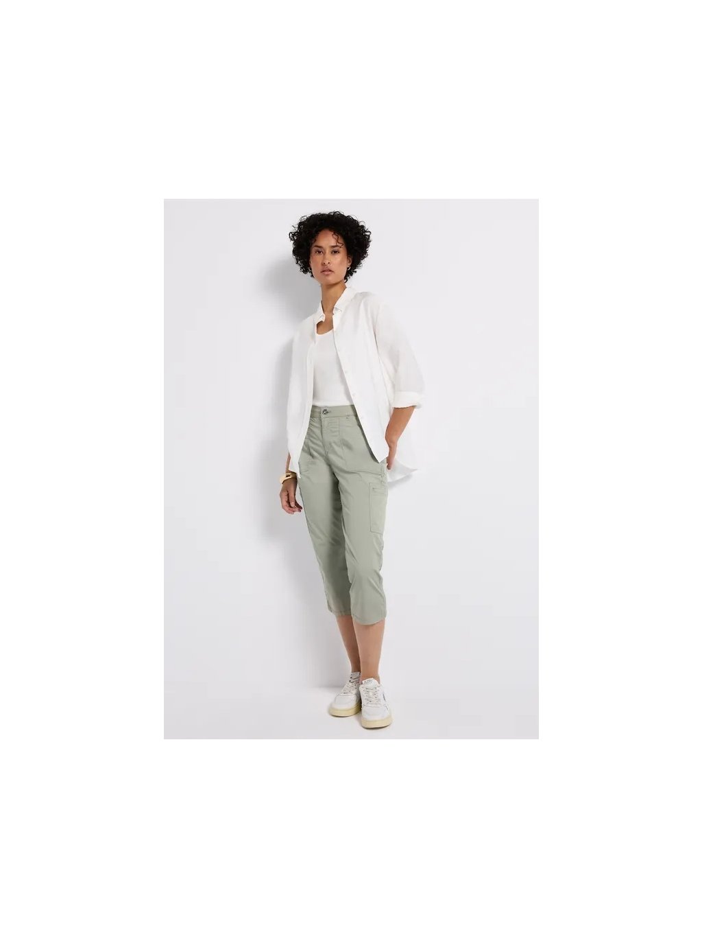 Tyto dámské saténové kalhoty od Street One v tříčtvrteční délce kombinují ležérní střih s třpytivým povrchem. Střední pas a úzké nohavice jim dodávají moderní siluetu, zatímco boční a nakládané kapsy zvyšují funkčnost. Směs bavlny a streče zajišťuje pohodlné nošení.