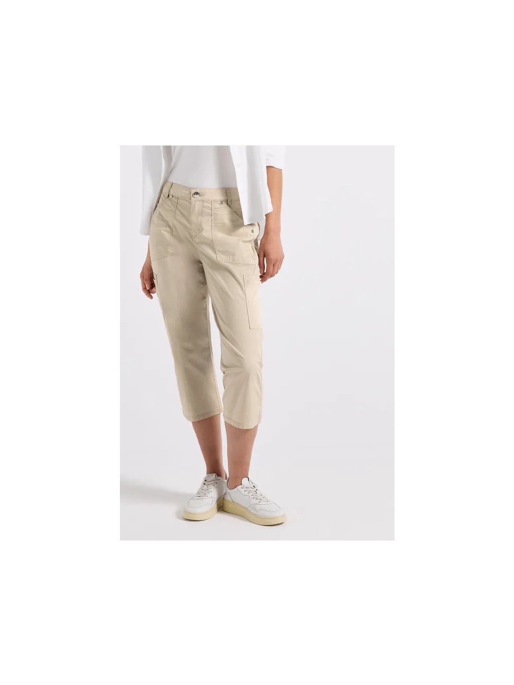 Tyto dámské saténové kalhoty od Street One v tříčtvrteční délce kombinují ležérní střih s třpytivým povrchem. Střední pas a úzké nohavice jim dodávají moderní siluetu, zatímco boční a nakládané kapsy zvyšují funkčnost. Směs bavlny a streče zajišťuje pohodlné nošení.