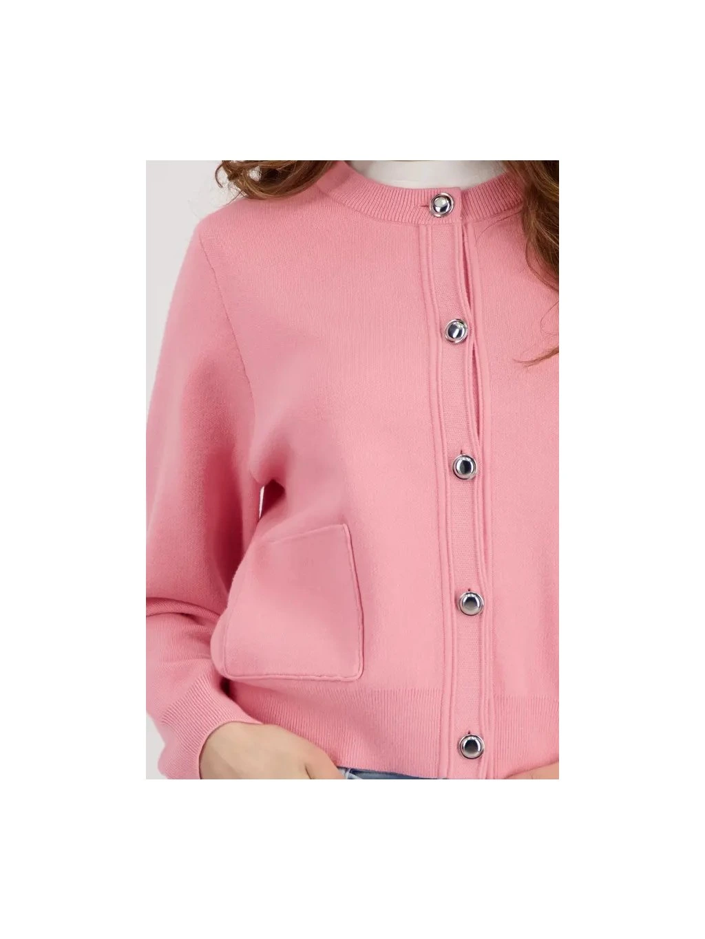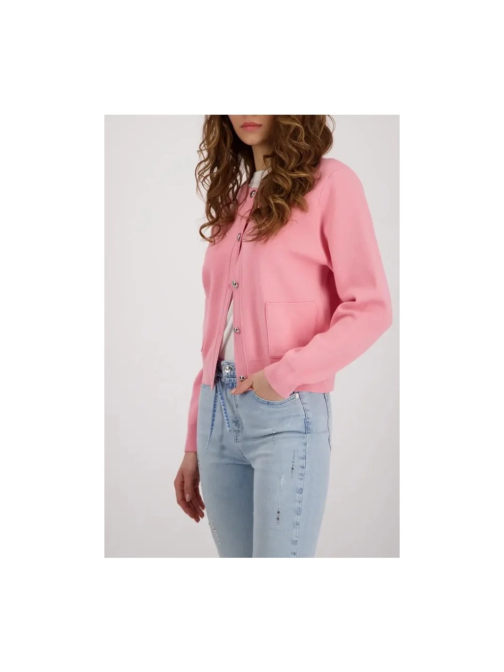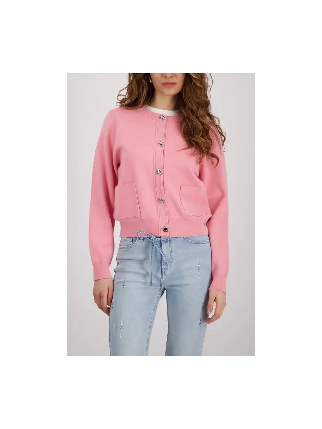 Elegantní kardigan z volné viskózy s kulatým výstřihem, dlouhými rukávy a okouzlujícími ozdobnými knoflíky – stylový doplněk. |