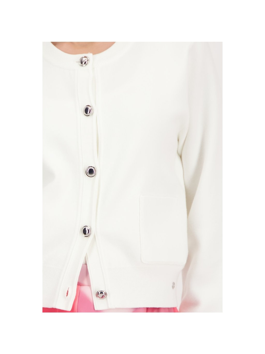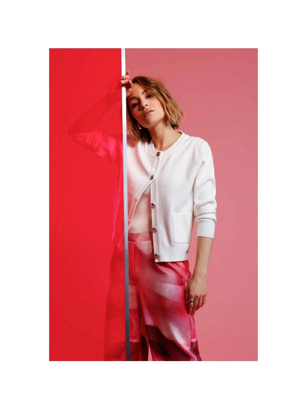 Elegantní kardigan z volné viskózy s kulatým výstřihem, dlouhými rukávy a okouzlujícími ozdobnými knoflíky – stylový doplněk.