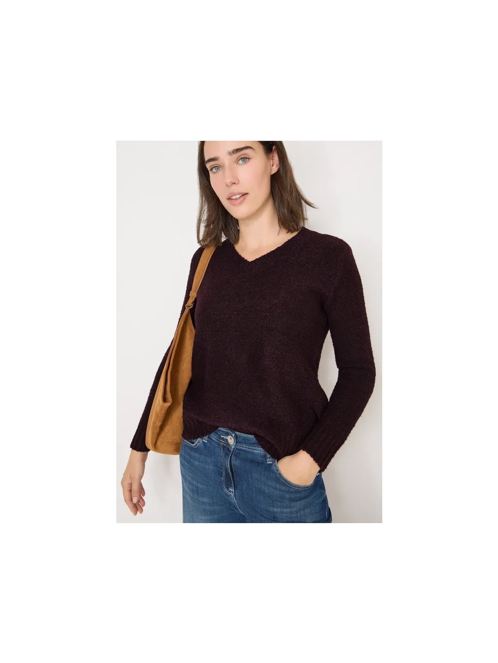 Tento dámský svetr z buklé od značky CECIL kombinuje měkkou texturu s klasickým designem. Výstřih do V a žebrované manžety zdůrazňují ženský styl, zatímco buklé tkanina zajišťuje extra pohodlí. Stylový společník pro chladnější dny.