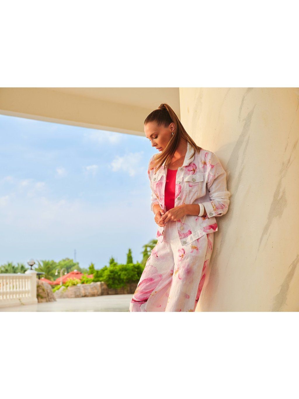 Letní lněná bunda Dolcezza má riflový střih, který zvýrazňuje design rozkvetlých magnólií. Bundičku budete snadno kombinovat nejen k šatům, ale také k letním kalhotám a džínům. Tento kousek dodá vašim outfitům sofistikovanost a ženský akcent.