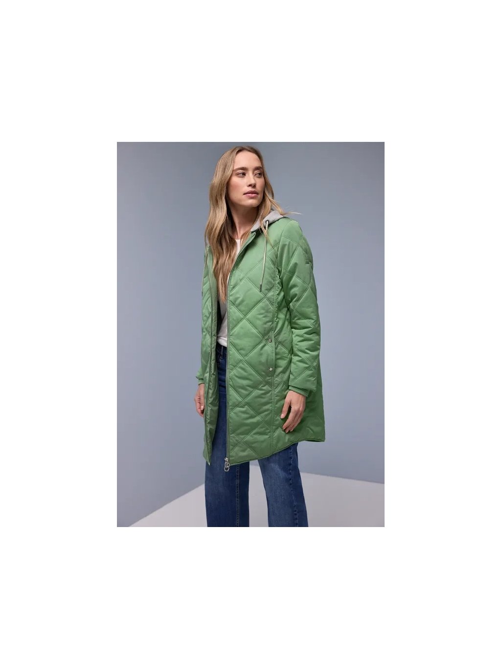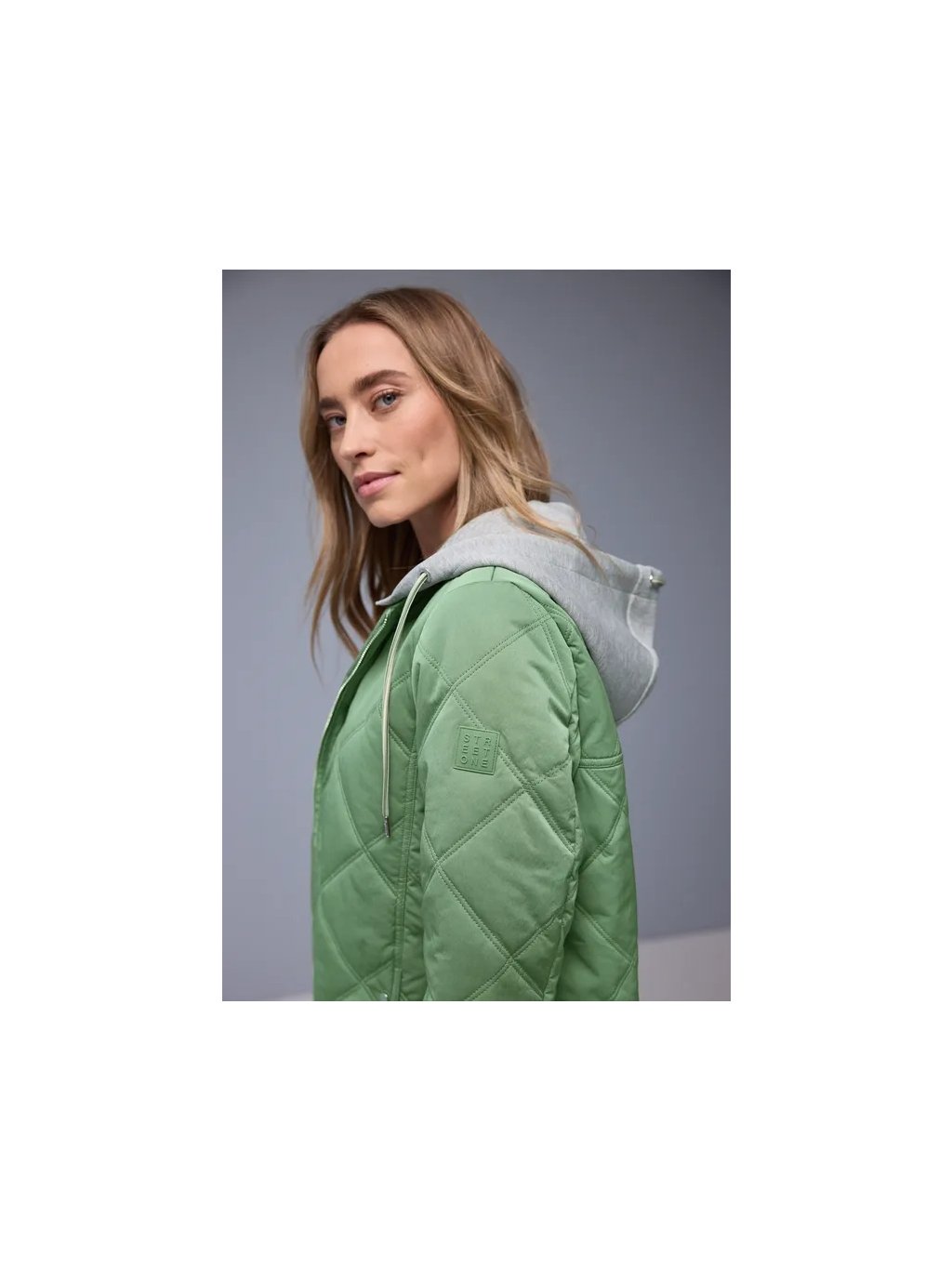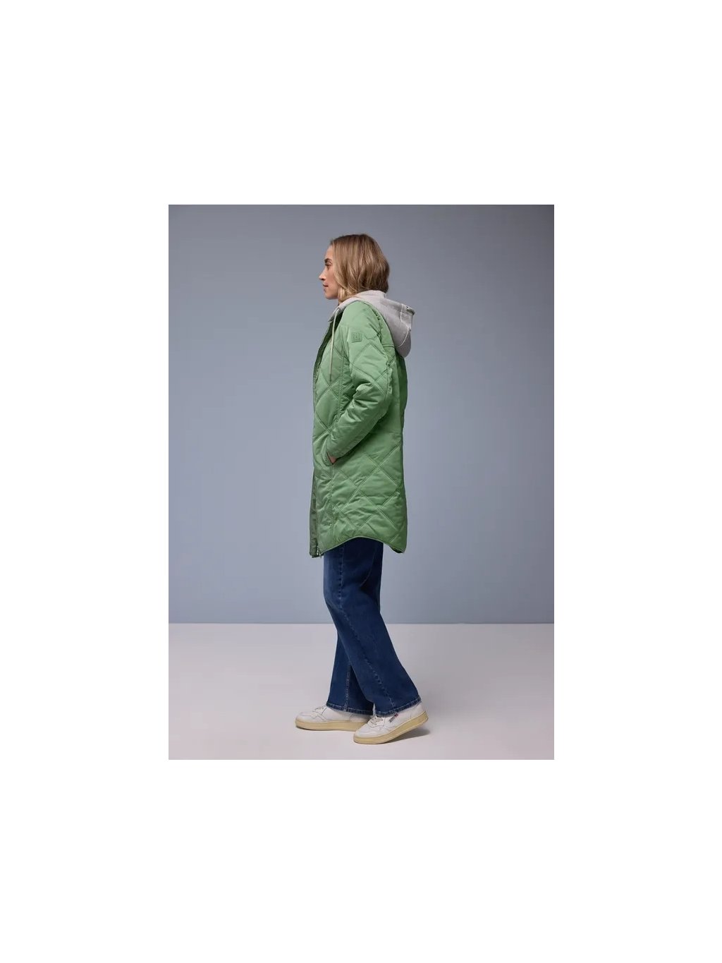 Tato dlouhá prošívaná bunda od Street One pro ženy zaujme svou příjemně hřejivou kvalitou, odnímatelnou žerzejovou kapucí se stahovací šňůrkou a obousměrným zipem – ideální pro chladné dny s ležérním vzhledem. Dlouhé rukávy s všitými manžetami a bočními kapsami dodávají bundě funkční prvky, zatímco diamantový prošívaný vzor přidává módní detaily. Vyberte si tuto bundu, pokud chcete spojit teplo, pohodlí a moderní styl.