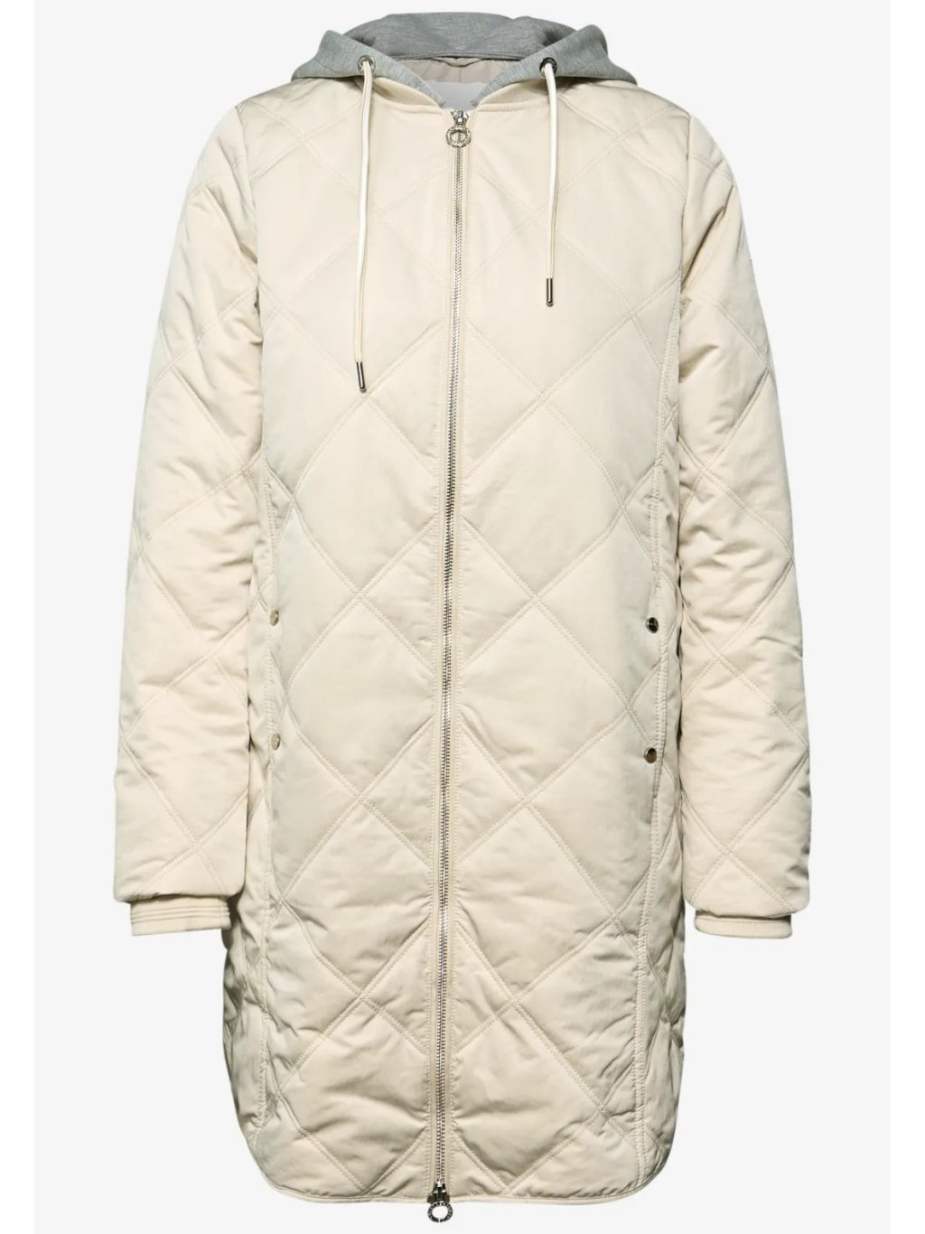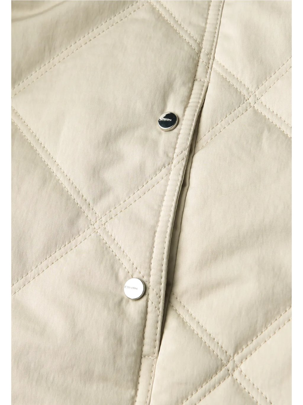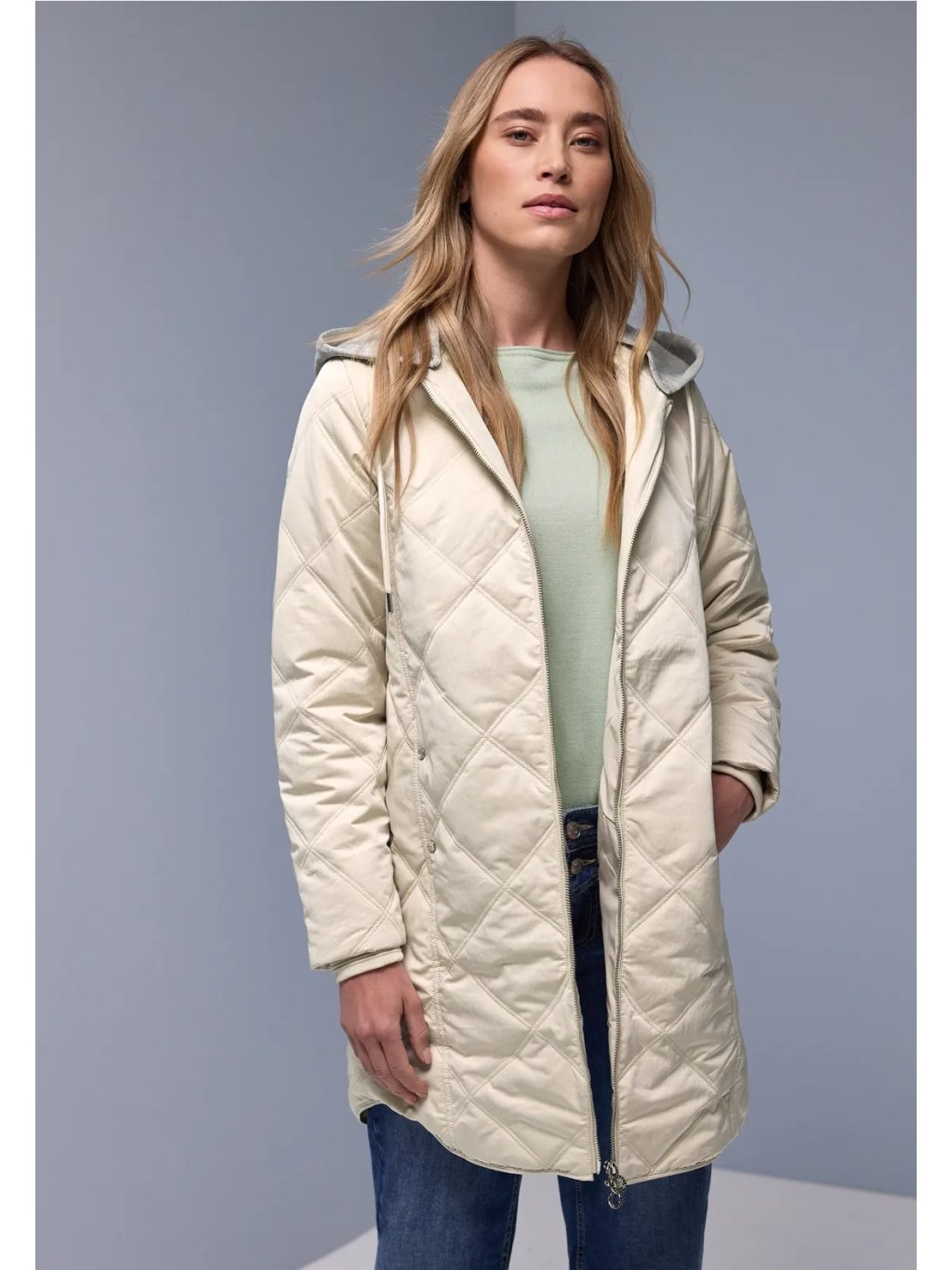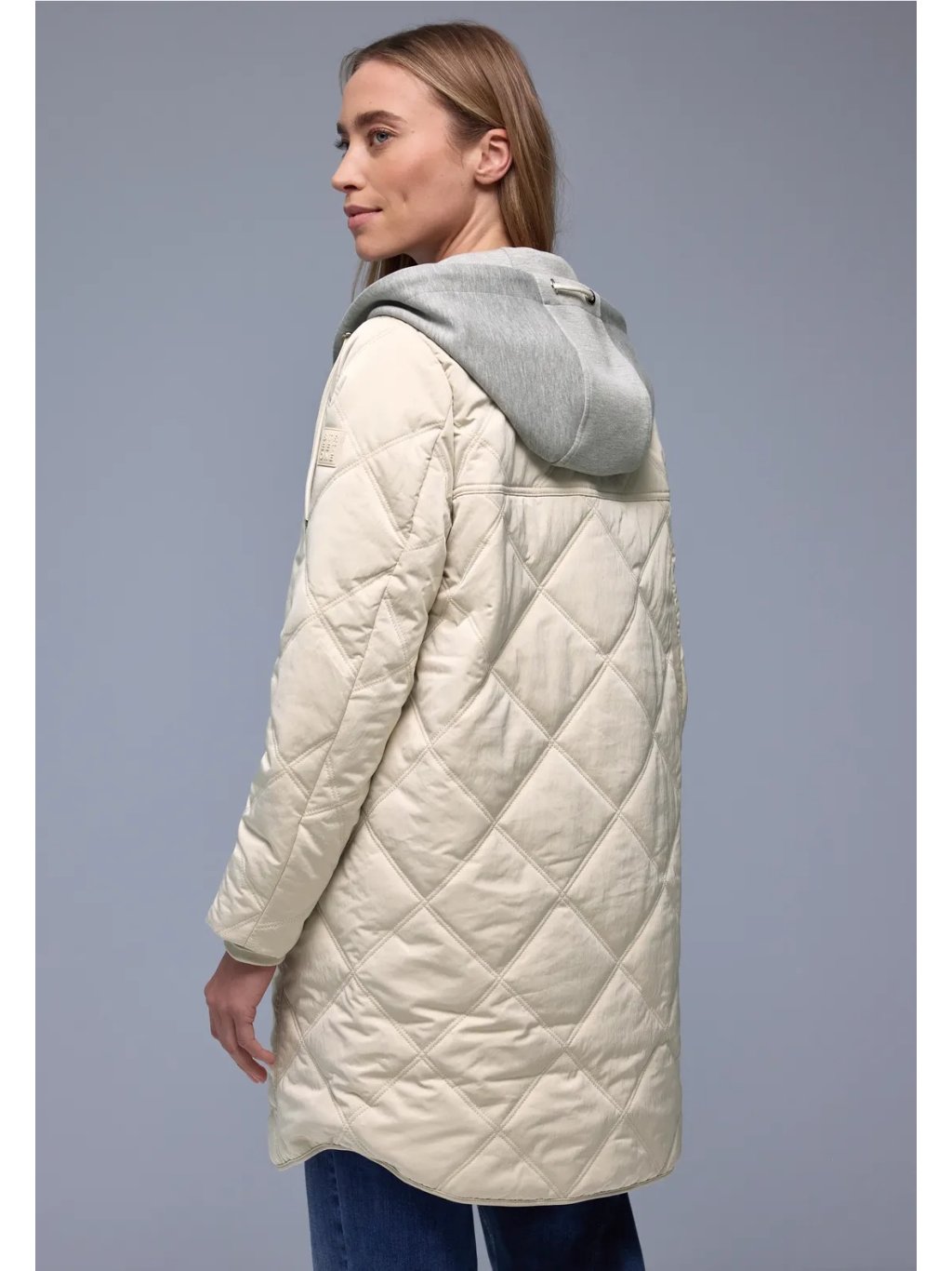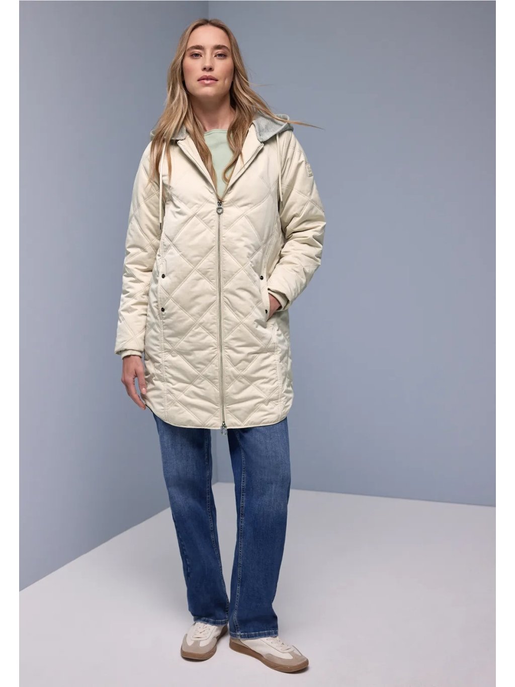 Tato dlouhá prošívaná bunda od Street One pro ženy zaujme svou příjemně hřejivou kvalitou, odnímatelnou žerzejovou kapucí se stahovací šňůrkou a obousměrným zipem – ideální pro chladné dny s ležérním vzhledem. Dlouhé rukávy s všitými manžetami a bočními kapsami dodávají bundě funkční prvky, zatímco diamantový prošívaný vzor přidává módní detaily. Vyberte si tuto bundu, pokud chcete spojit teplo, pohodlí a moderní styl.