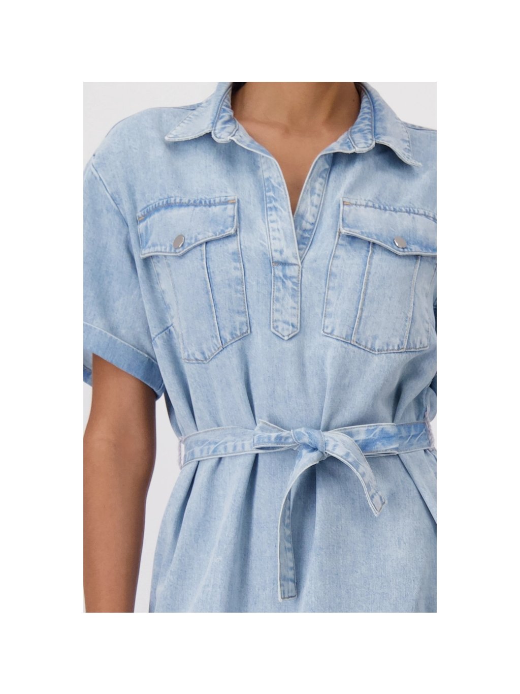 Tyto krásné džínové šaty jsou vyrobeny ze 100% lyocellu a mají pas s páskem, praktické boční kapsy a délku po kolena.