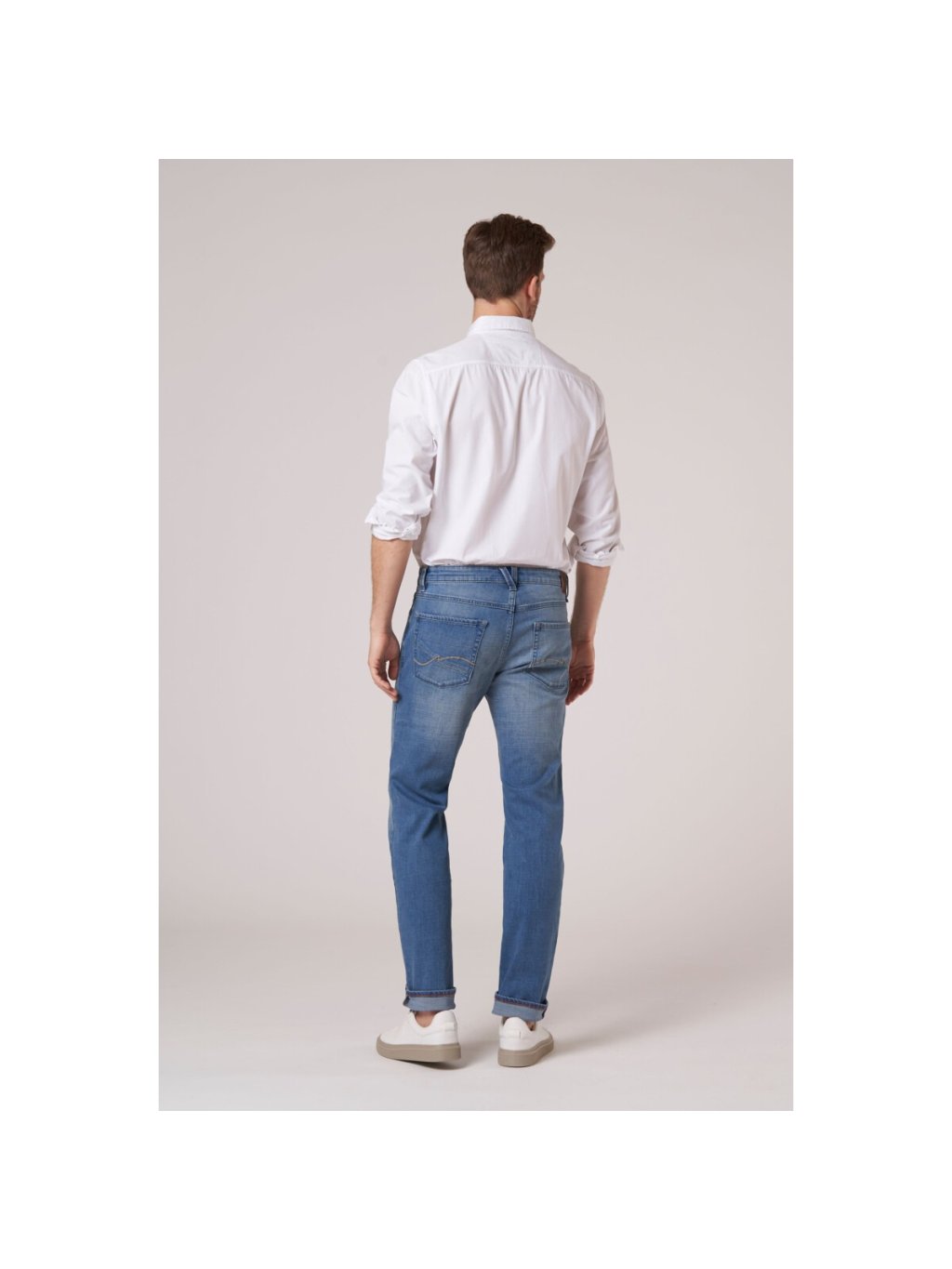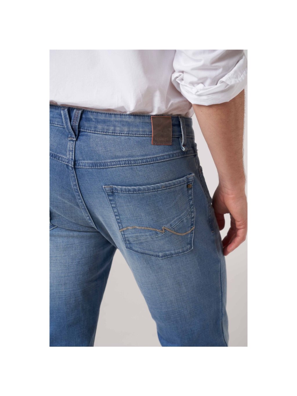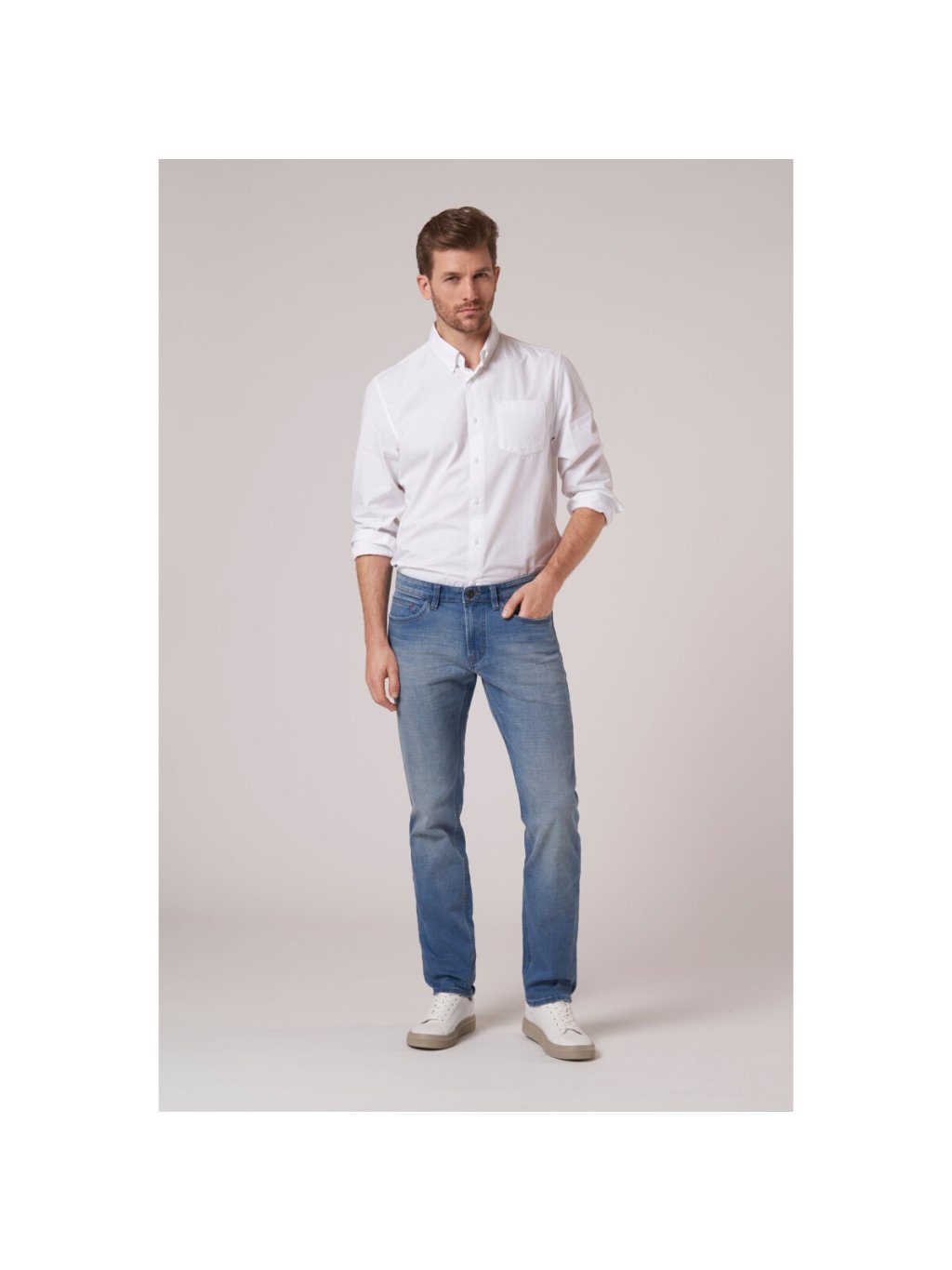 Džíny Harris Cross Denim ze sportovní kolekce denimu s 5 kapsami se vyznačují křížovým efektem a použitým praním. Tyto džíny jsou pro každou příležitost a každý styl. Jsou vyrobeny ze 72 % bavlny, 25 % polyesteru, 2 % viskózy a 1 % elastanu. Model Harris s šířkou nohavic 36 cm nabízí pohodlné nošení díky strečovému efektu. Model Harris má štíhlý střih a nízký pas. Jak vidíte na obrázku, tyto džíny mají koženou nášivku Hattric a kvalitní zip.