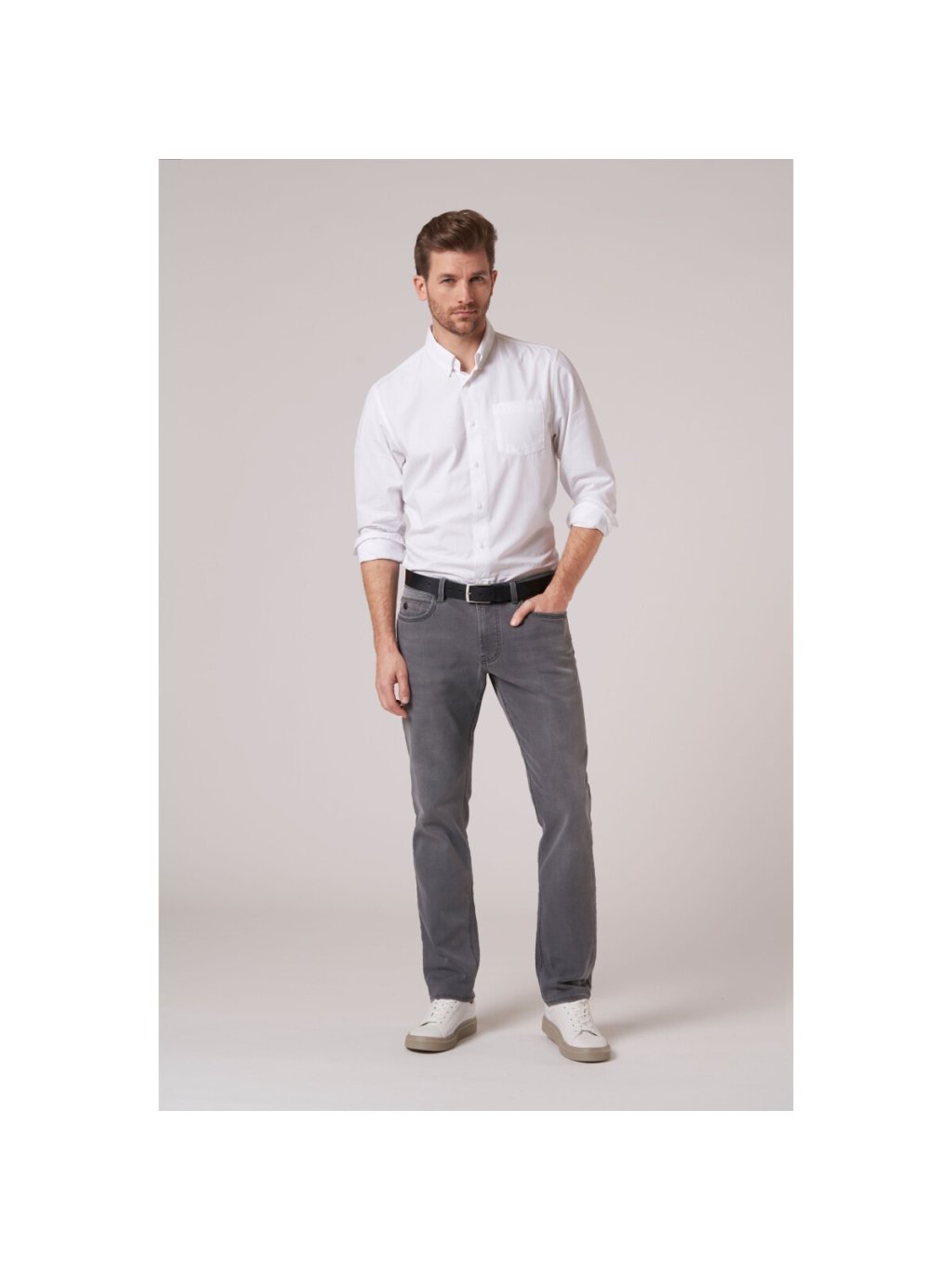 Džíny Harris Cross Denim ze sportovní kolekce denimu s 5 kapsami se vyznačují křížovým efektem a použitým praním. Tyto džíny jsou pro každou příležitost a každý styl. Jsou vyrobeny ze 72 % bavlny, 25 % polyesteru, 2 % viskózy a 1 % elastanu. Model Harris s šířkou nohavic 36 cm nabízí pohodlné nošení díky strečovému efektu. Model Harris má štíhlý střih a nízký pas. Jak vidíte na obrázku, tyto džíny mají koženou nášivku Hattric a kvalitní zip.