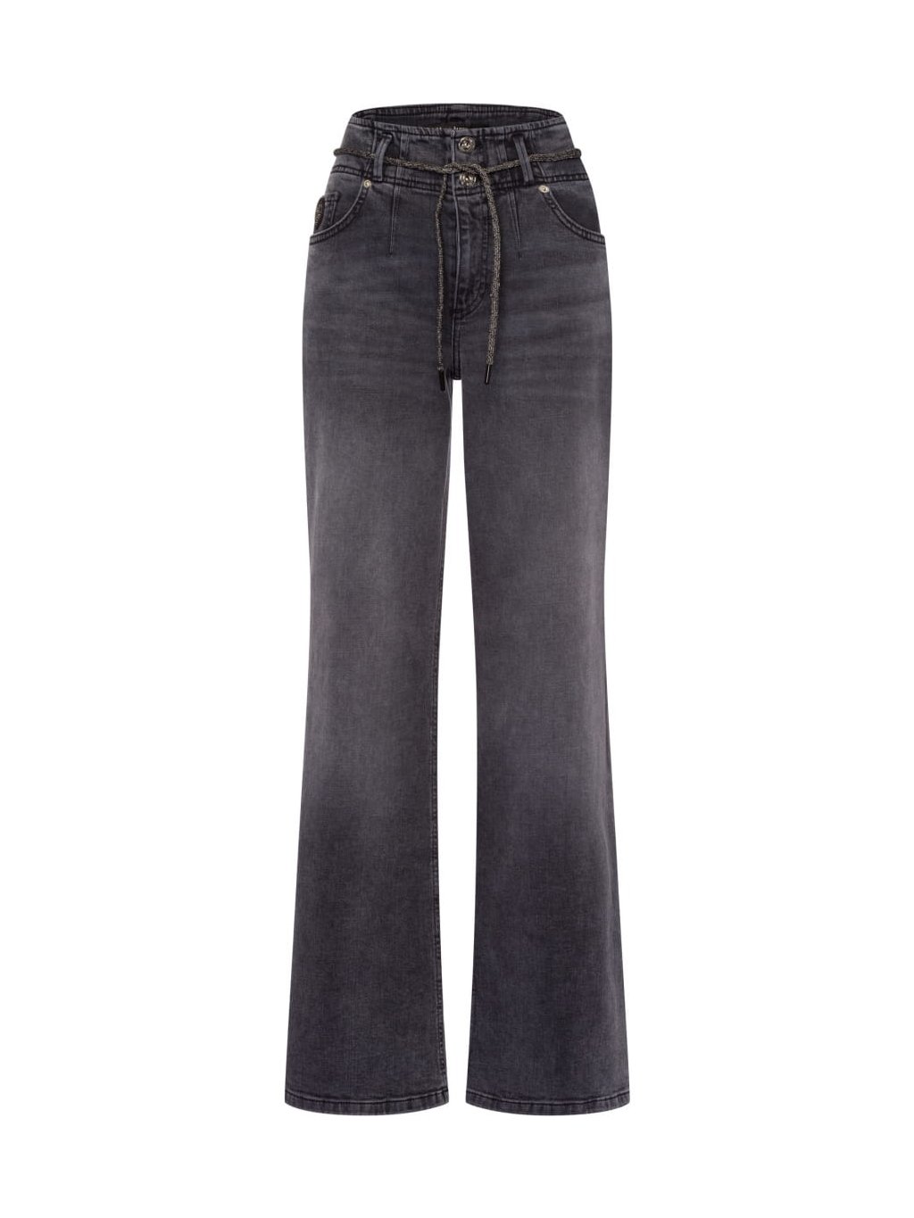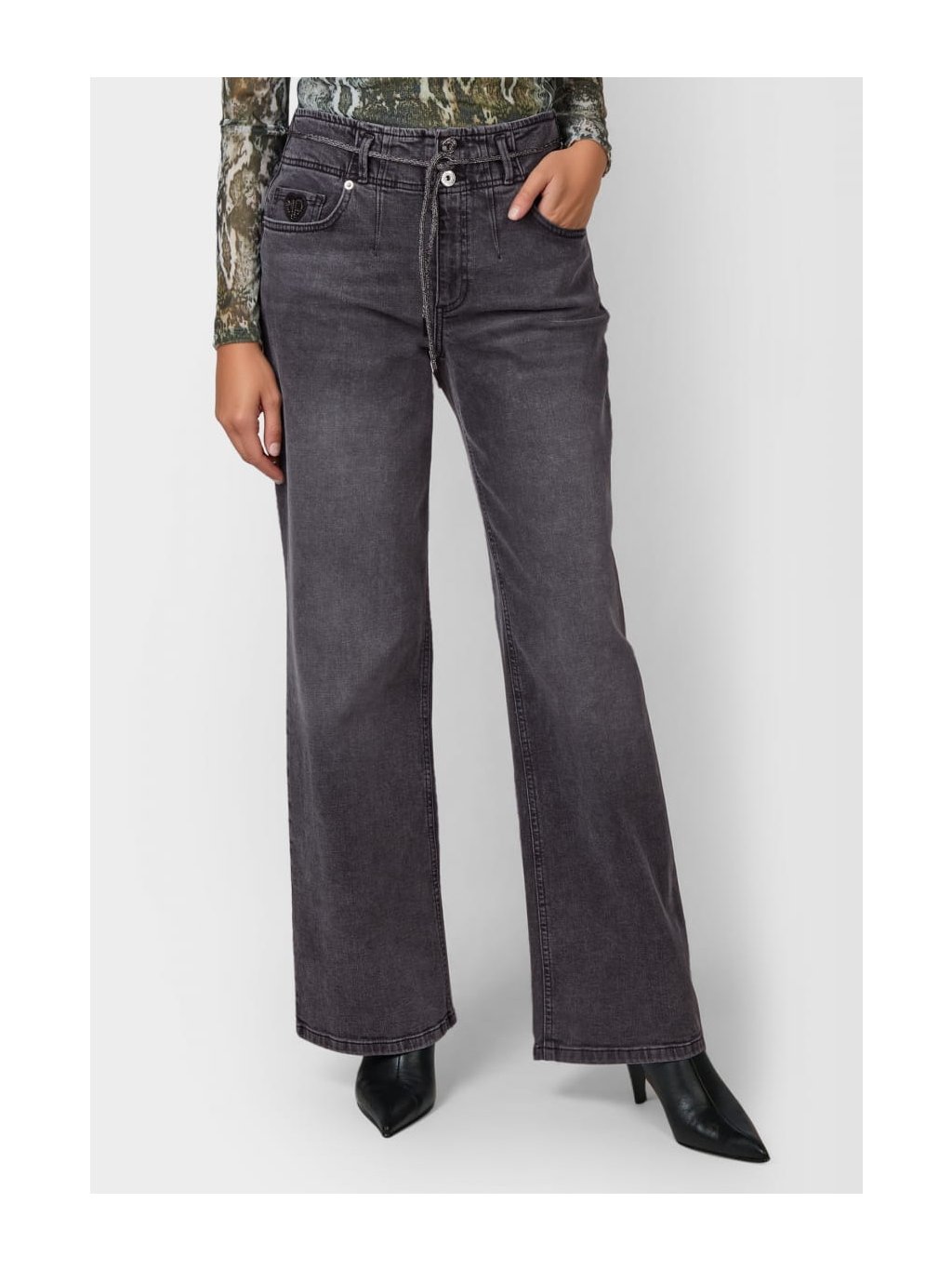 Tyto džíny s širokými nohavicemi jsou módním doplňkem díky sofistikované ozdobné stahovací šňůrce a autentickému denimovému praní. Široký střih dodává moderní nádech a vysoký pas zajišťuje pohodlné nošení. Skutečný lákadlo pro každého, kdo miluje trendy styl.