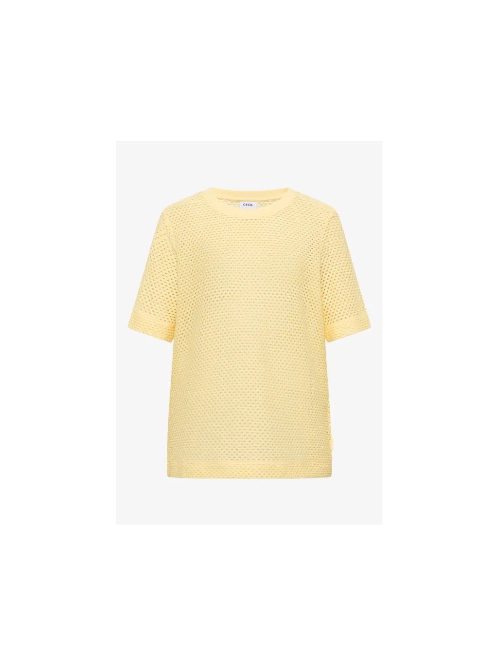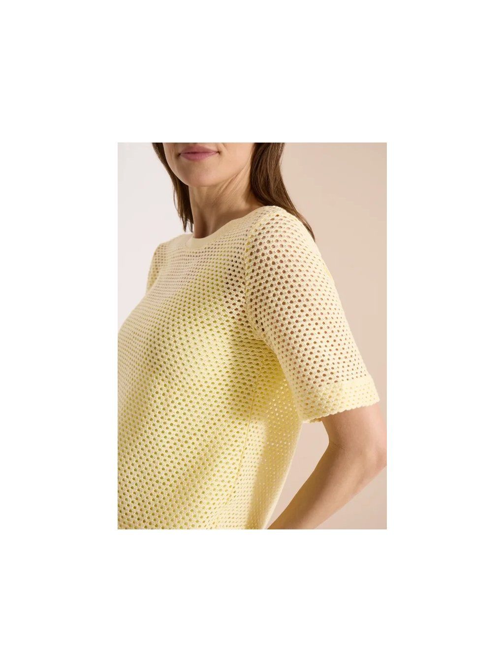 Halenka s kulatým výstřihem a s krátkými rukávy v prolamovaném designu.