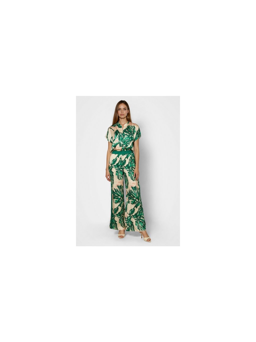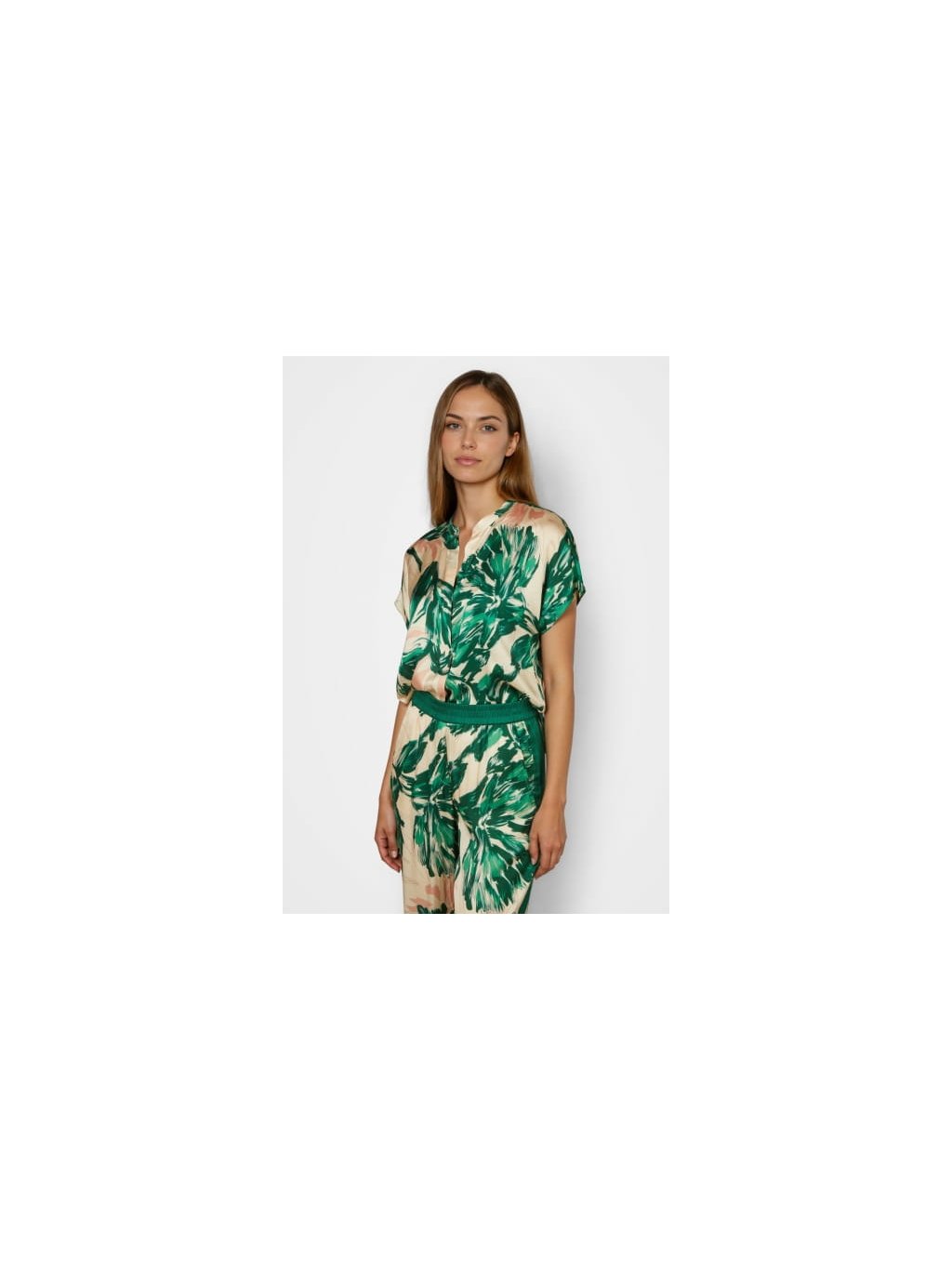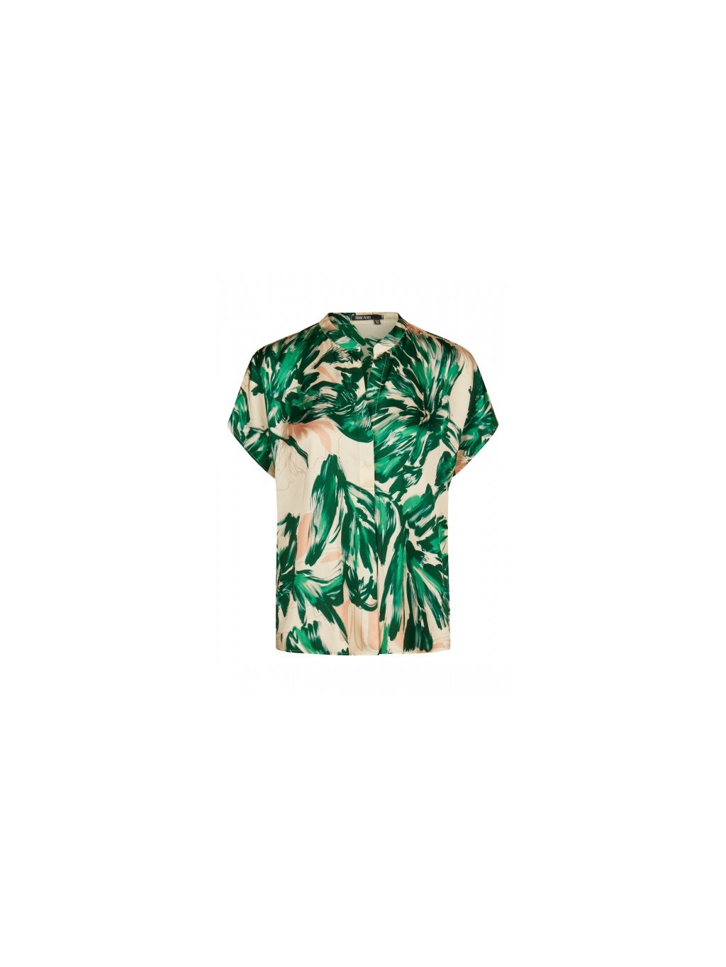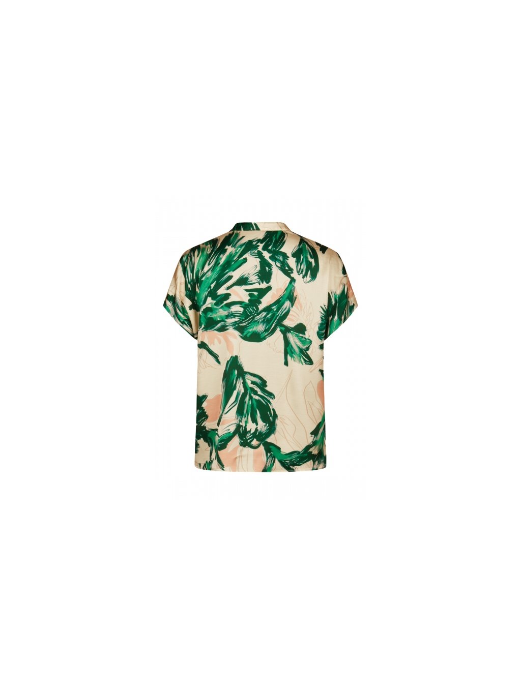 Tato halenka kombinuje barevný design s jemnými detaily. Stojáček a spadlá ramena zdůrazňují ležérní střih, zatímco prodloužená záda vytvářejí moderní siluetu. Potištěný viskózový satén dodává střihu splývavou a pohodlnou texturu. Ideální pro ležérní a zároveň moderní vzhled.