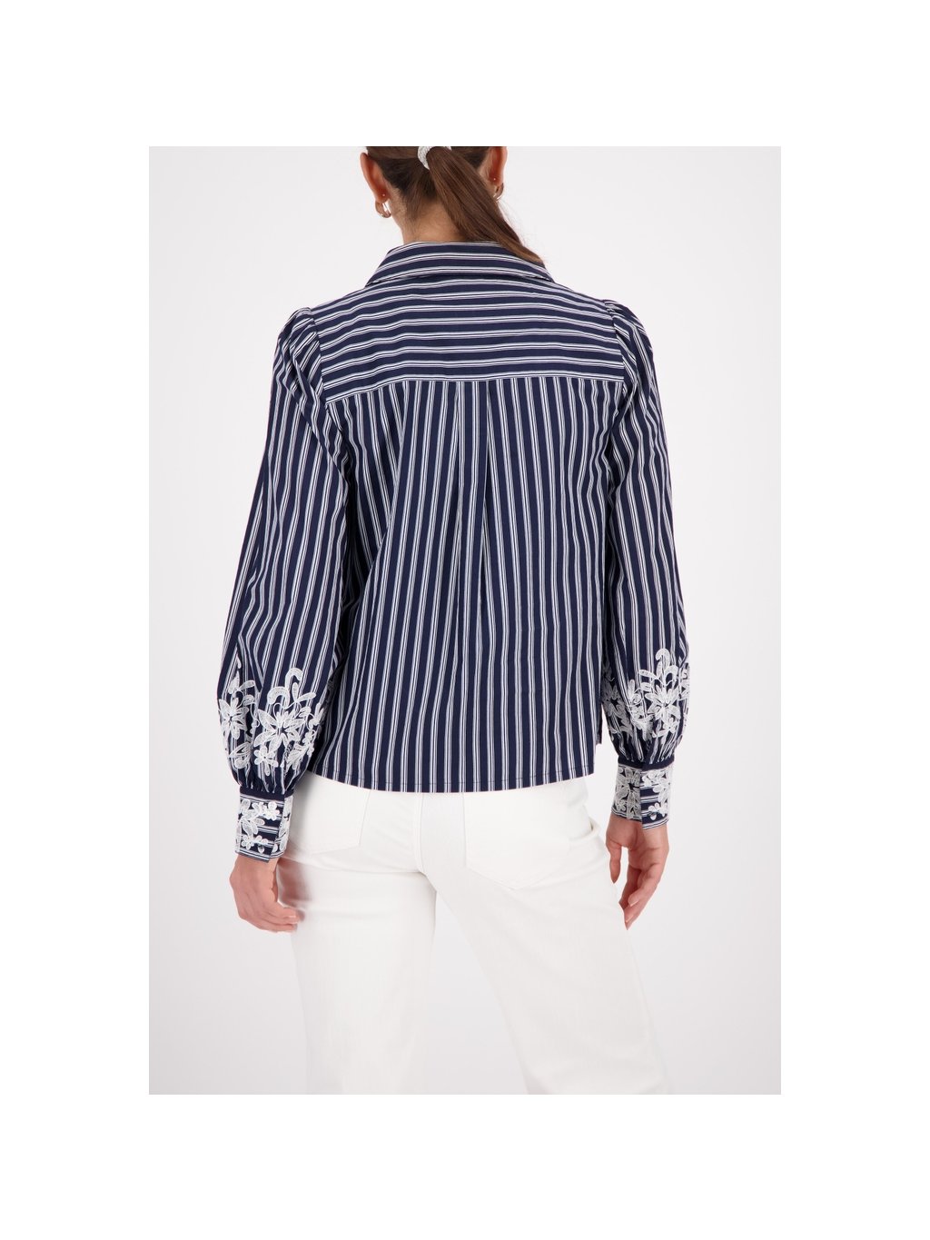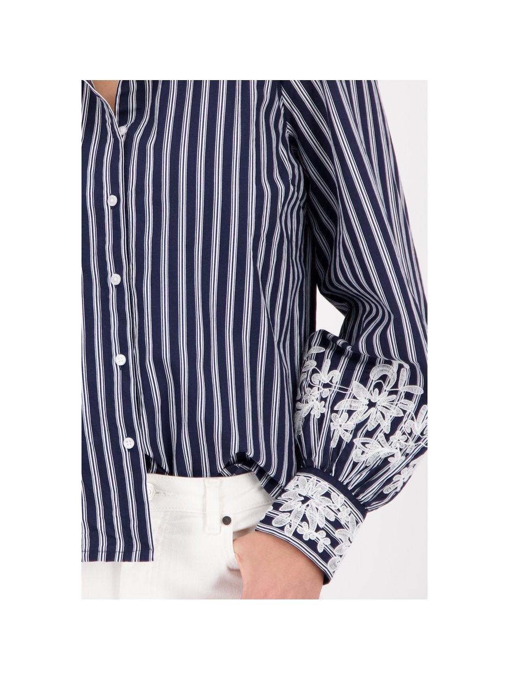 Elegantní halenka ze 100% bavlny s pruhy, krajkou a sklady – moderní klasika pro ženy, které dbají na styl.