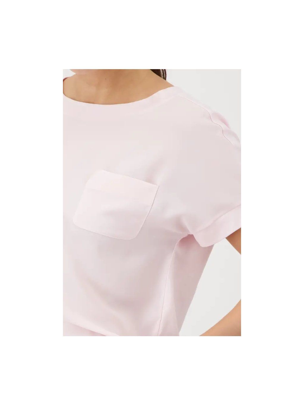 Elegantní košile ze směsového materiálu se spadlými rameny, kulatým výstřihem, krátkými rukávy a stylovou nakládanou náprsní kapsou – dokonalý kousek do jarního šatníku.