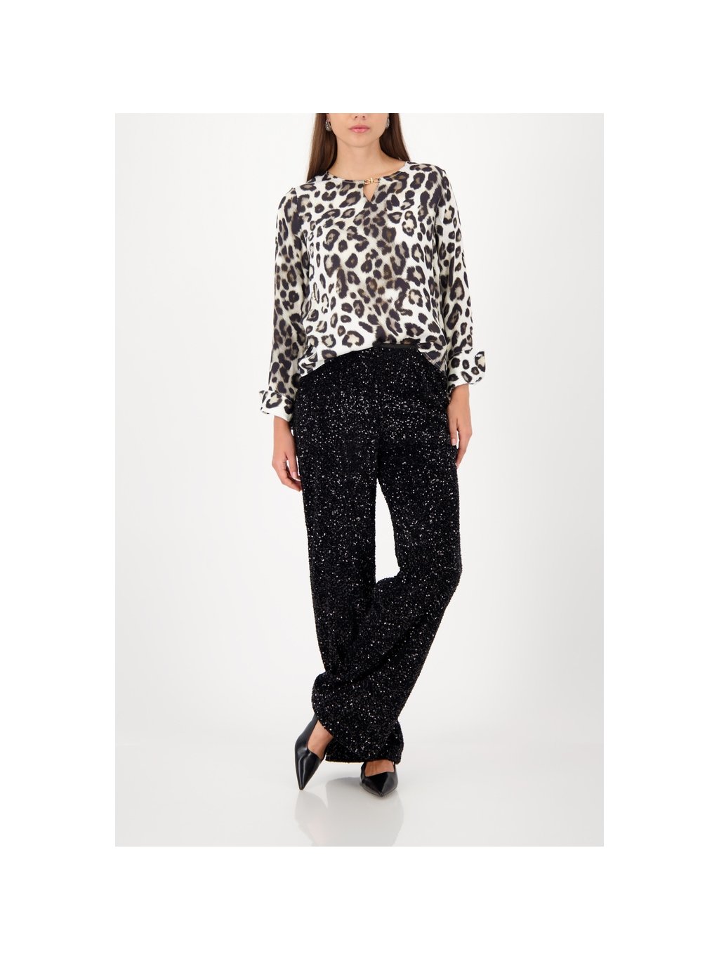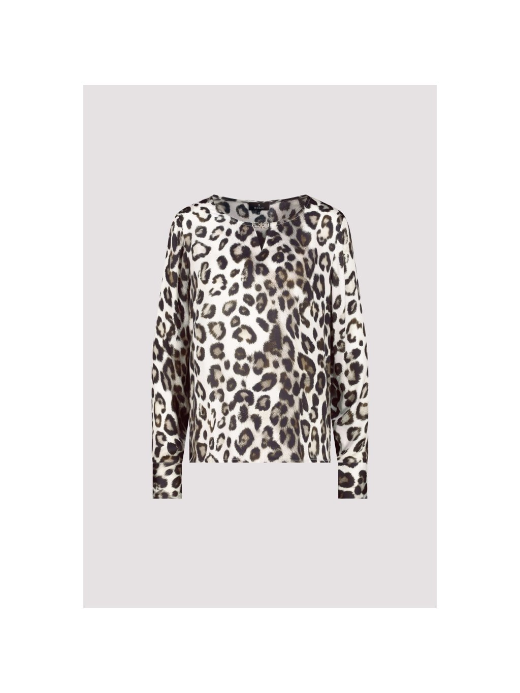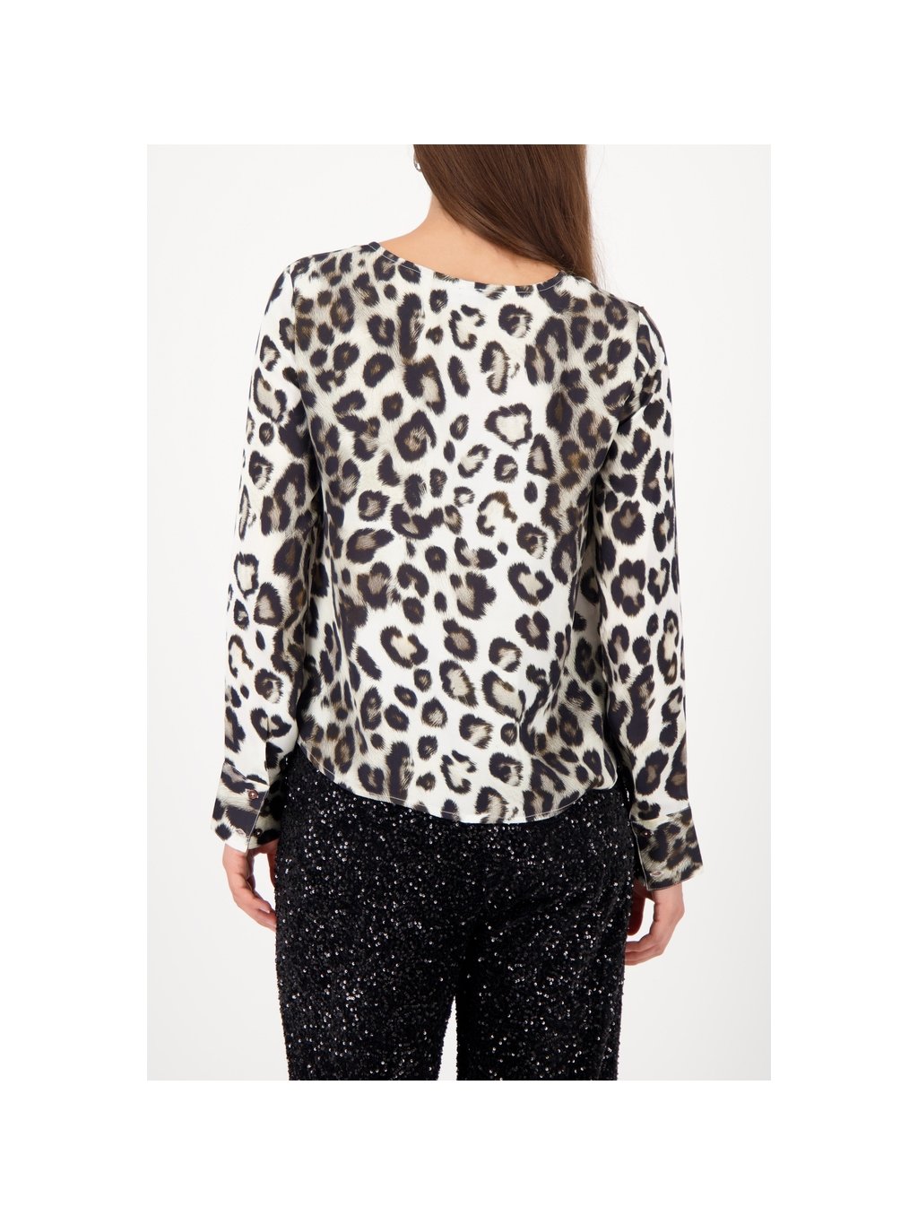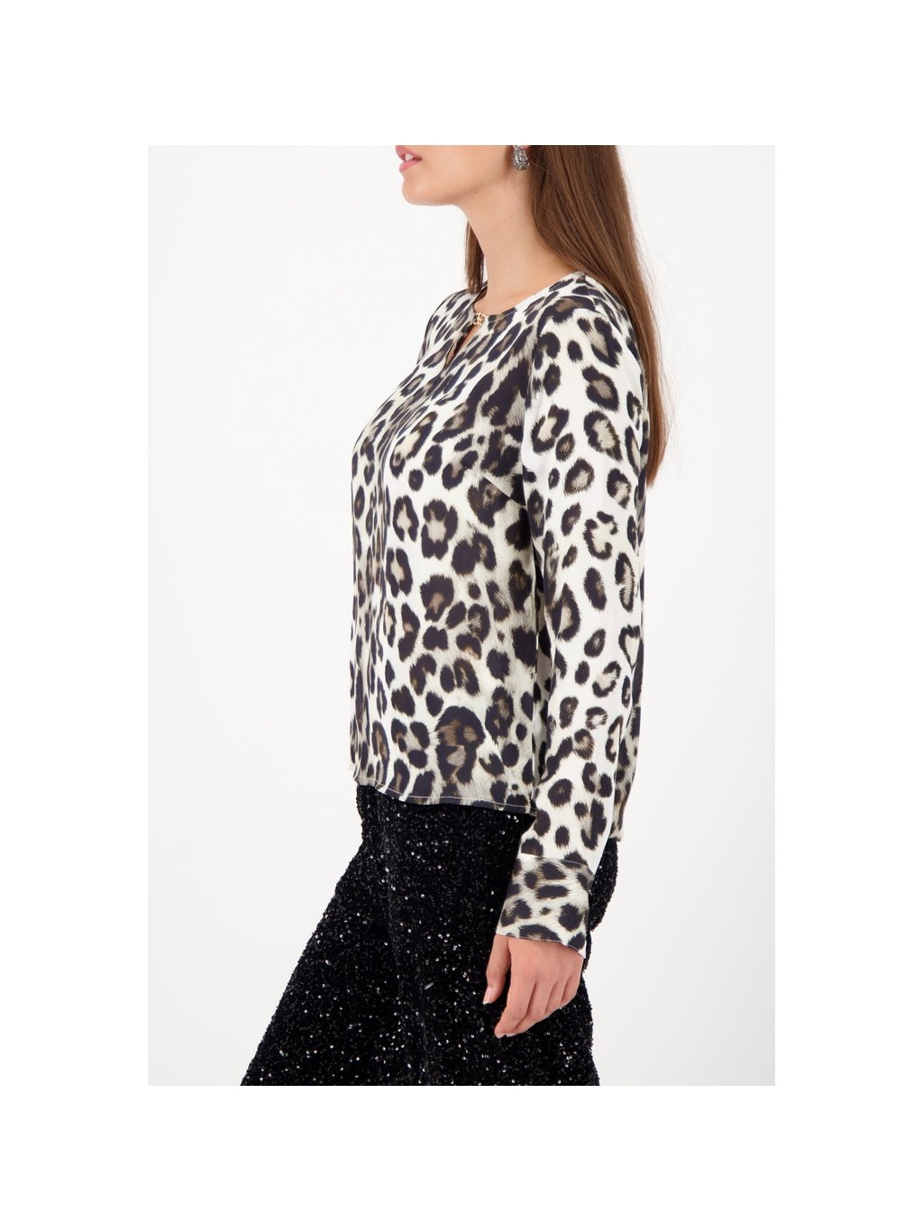 Elegantní halenka ze 100% viskózy a saténu s leopardím potiskem a jemným šperkem. Ideální pro každou příležitost.