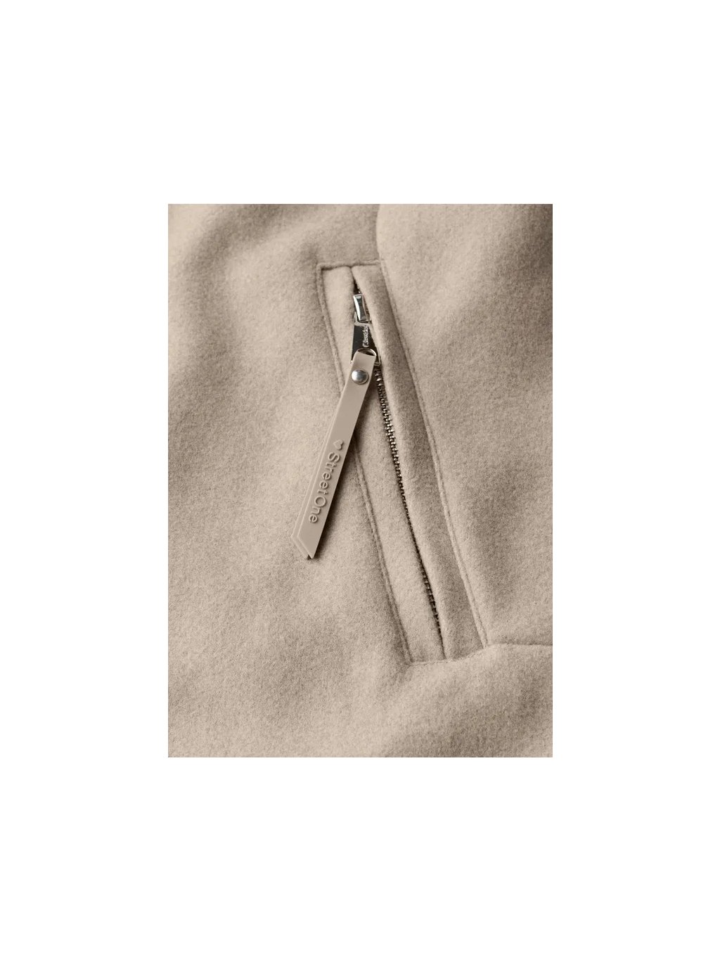 Tento dámský kabát od Street One kombinuje klasickou eleganci s moderními detaily. Pletené prvky na stojáčku dodávají kabátu stylový nádech, zatímco materiál s vlněným vzhledem mu dodává vysoce kvalitní vzhled. Boční kapsy na zip a zapínání na knoflíky po celé délce z něj činí perfektního společníka pro přechodná roční období