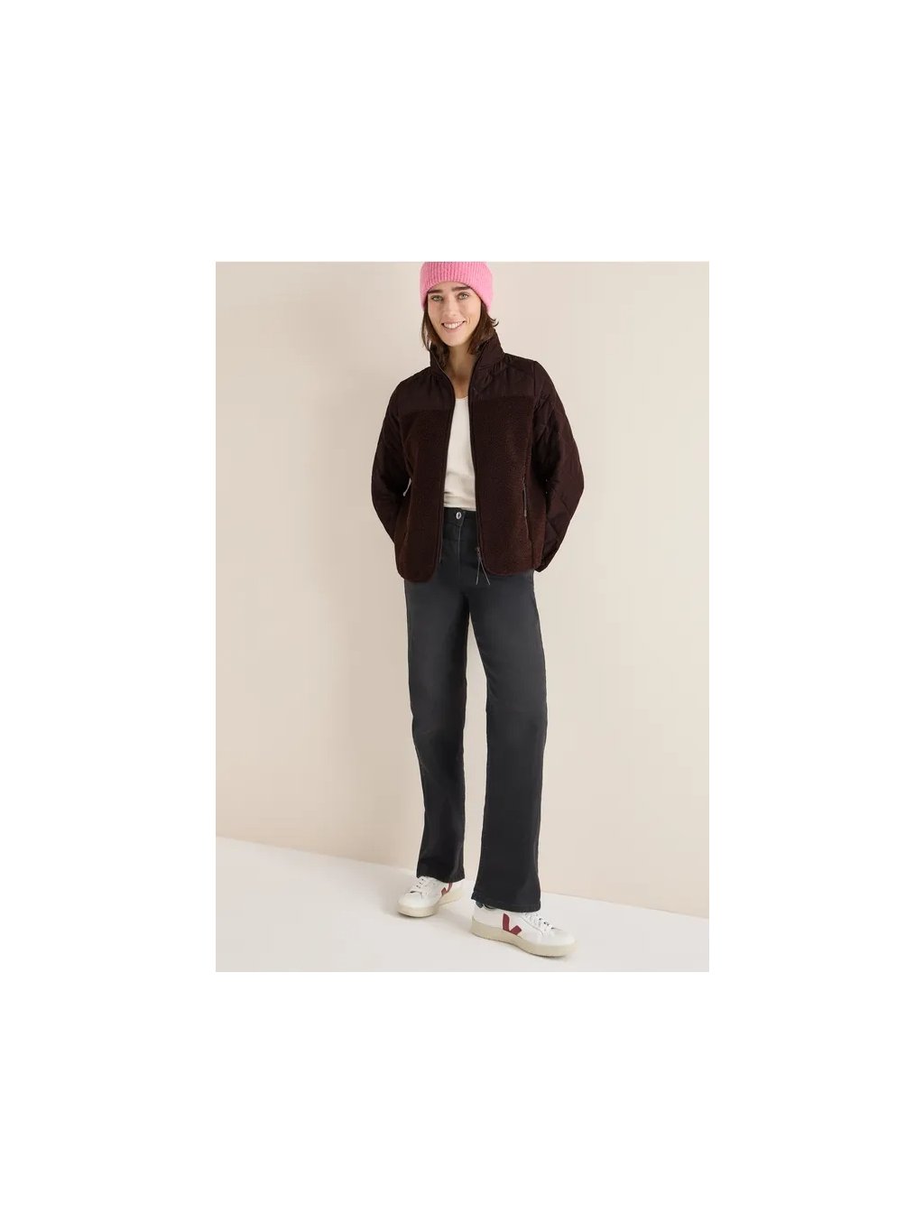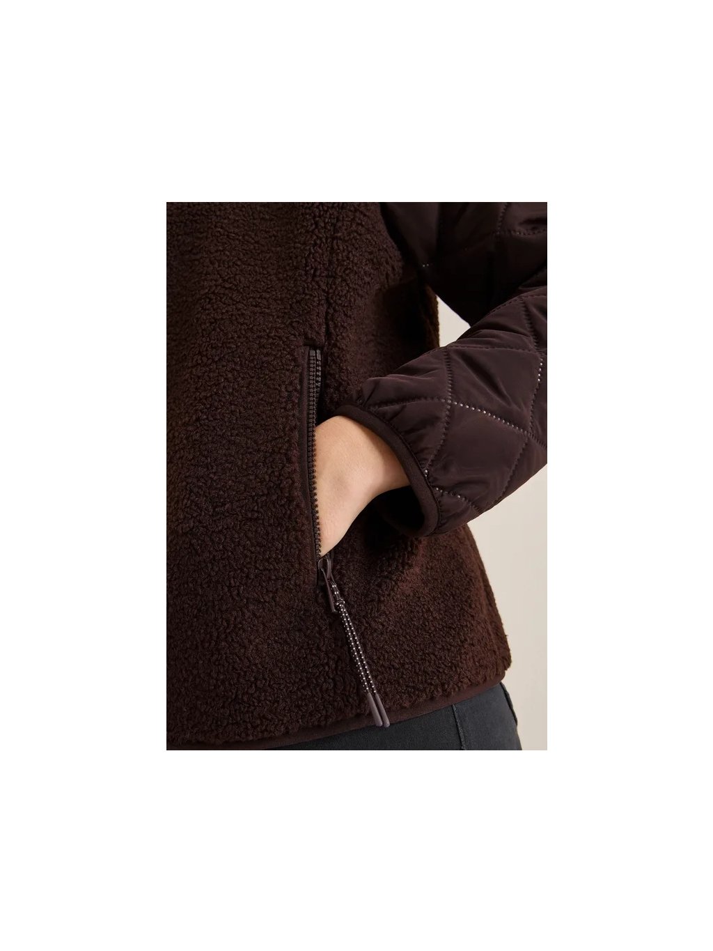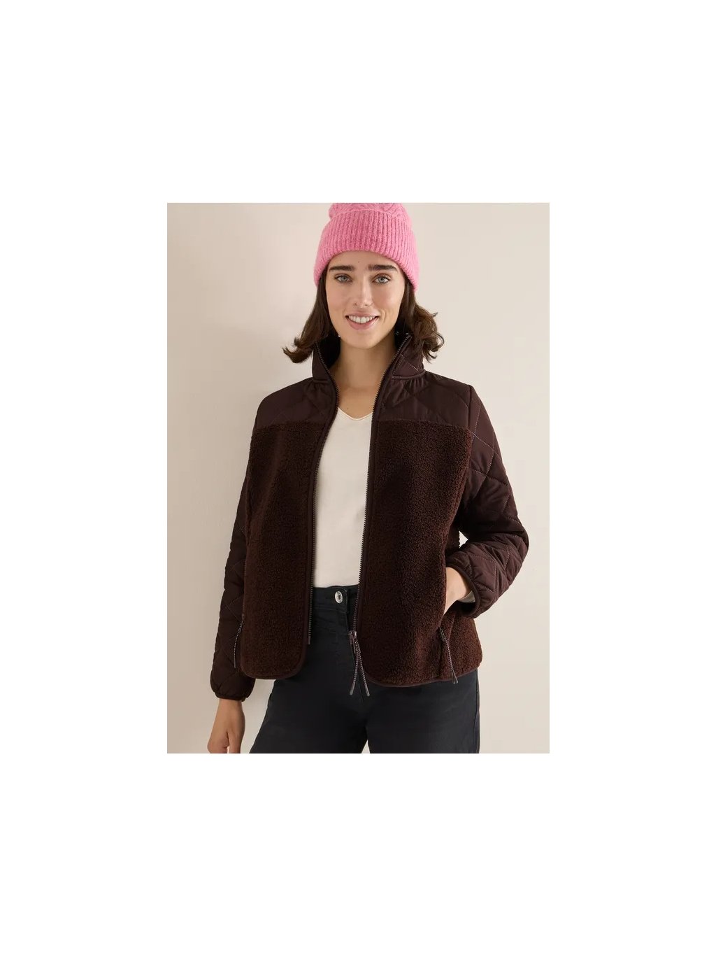 Tato dámská plyšová bunda od CECIL kombinuje útulnou plyšovou látku se sportovně prošívanými detaily ze softshellové tkaniny. Díky stojáčkui, zipům a bočním kapsám na zip nabízí příjemné pohodlí a funkčnost. Ideální pro chladné dny, stylově a pohodlně.