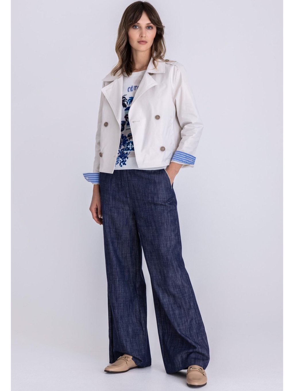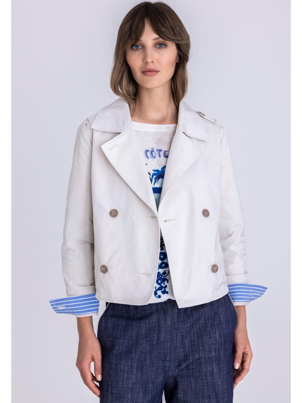 Kabátek Tuzzi má rovný střih, je z příjemného hladkého materiálu a bude se lehce kombinovat s džíny a kalhotami.
