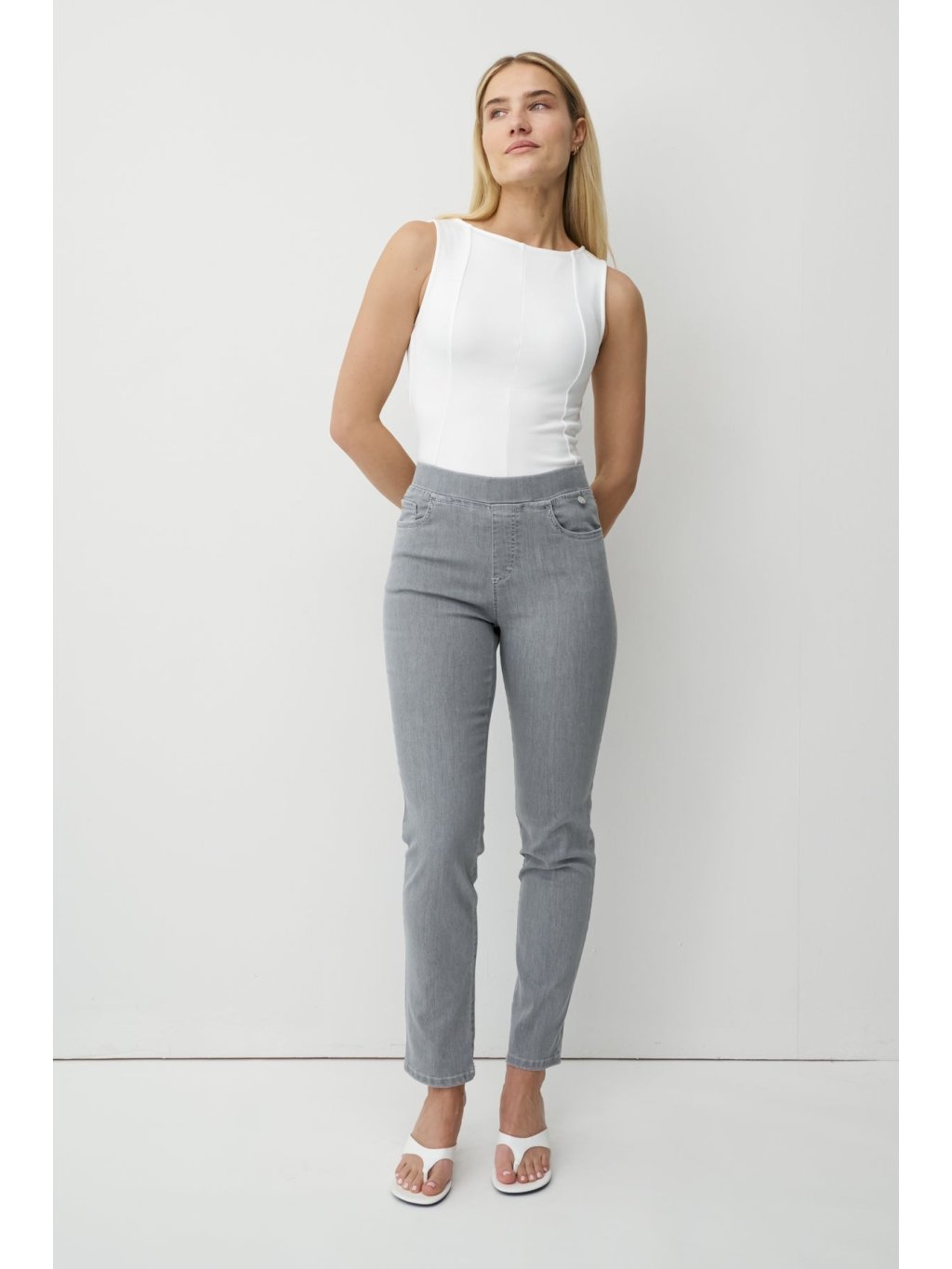 - Slim fit – Úzký střih opticky prodlužuje nohy, jemně tvaruje siluetu a lichotí každé postavě – aniž by ji stahoval.