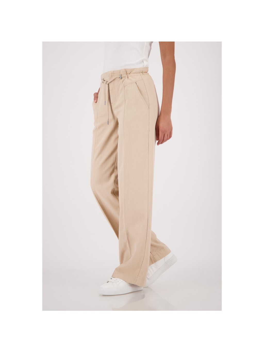 Objevte stylové kalhoty s širokými nohavicemi vyrobené z lehké směsi modalu s plisé, stahovací šňůrkou v pase a elegantními kapsami pro moderní vzhled.