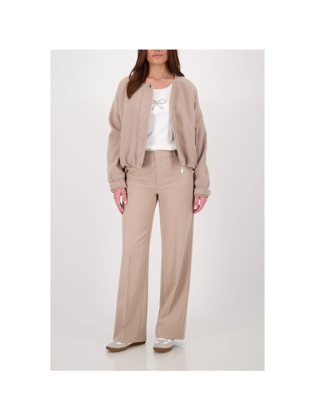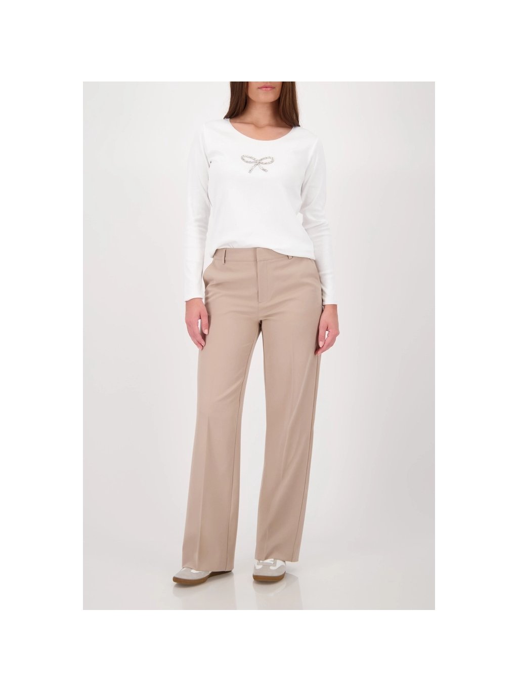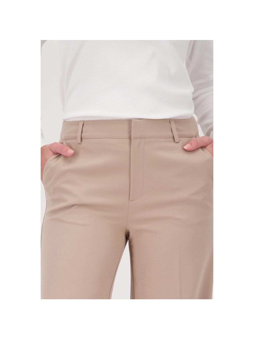 Elegantní kostýmkové kalhoty rovného střihu z strečového materiálu s nažehlovacími sklady, bočními kapsami a stylovými falešnými zadními kapsami – pro každou příležitost.