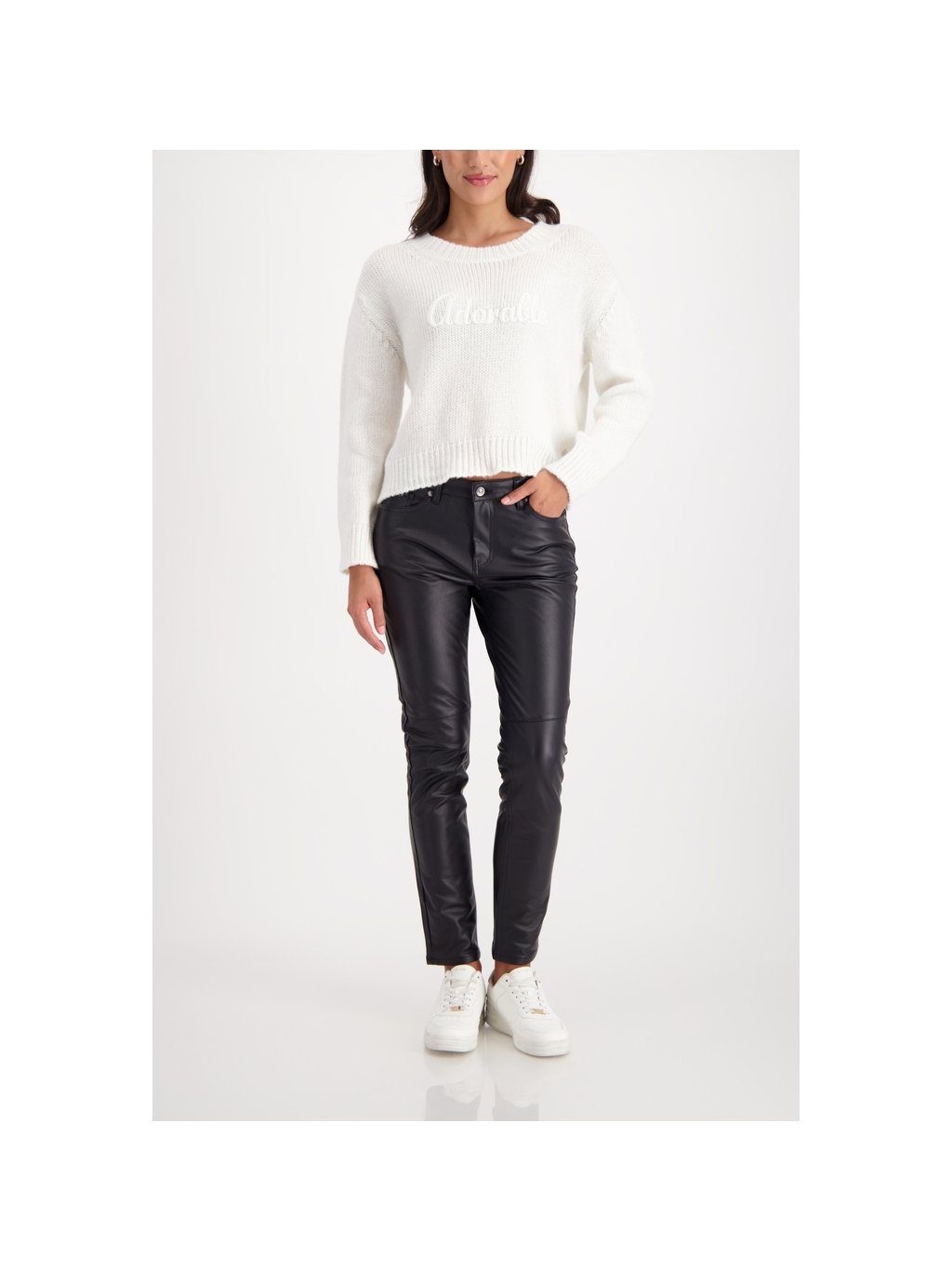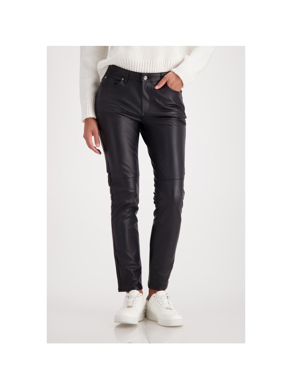 Tyto úzké džíny vyrobené z vysoce kvalitní bavlny kombinují elastické pohodlí s lesklým koženým vzhledem.