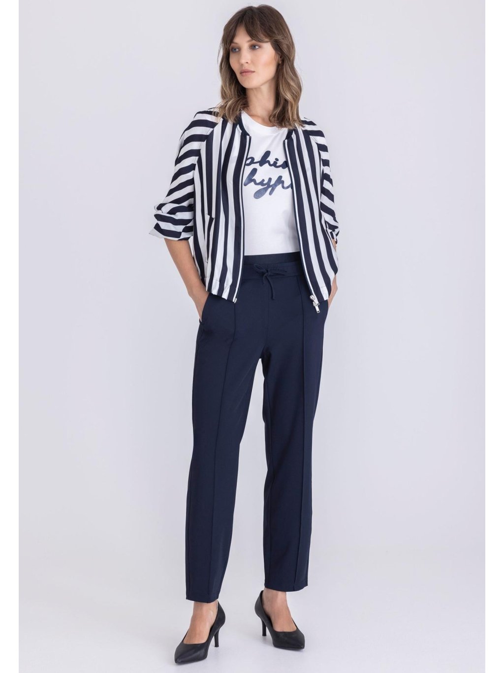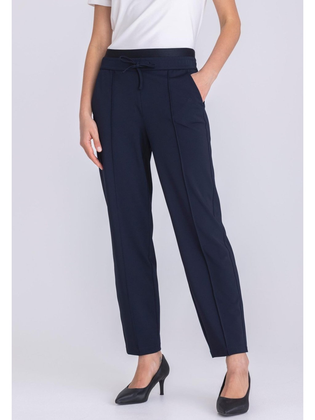Jednoduché, nadčasové kalhoty s elastickým pasem a stahovací šňůrkou, jemnými záhyby pro elegantní a ležérní vzhled spojují komfort se stylem.