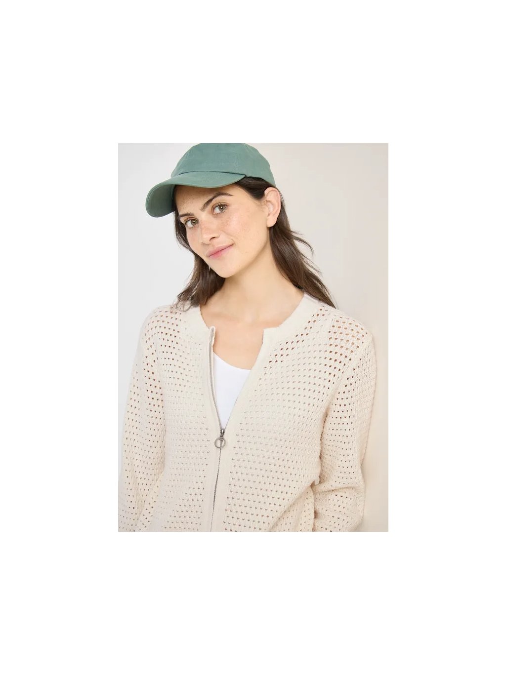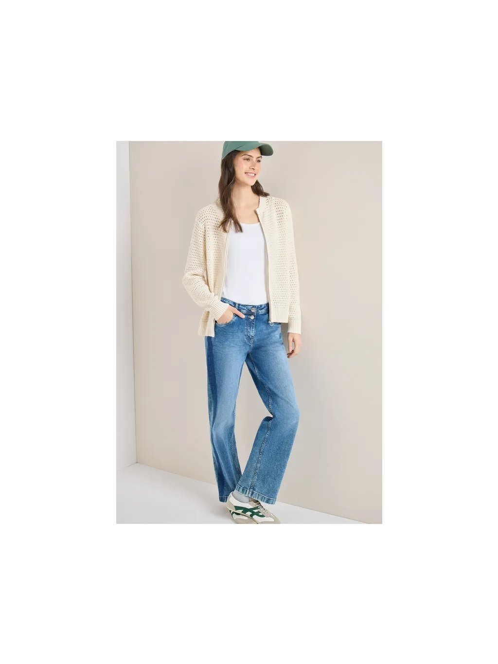 Dámský háčkovaný kardigan CECIL dodá vašemu vzhledu svěží nádech díky modernímu prolamovanému vzoru. Čistá bavlna je příjemná na dotek a zajišťuje výjimečné pohodlí. Kulatý výstřih a zip po celé délce činí tento kardigan dostatečně všestranným, aby se dal kombinovat s dalšími kousky oblečení. Ideální pro ležérní outfity za mírných dnů.