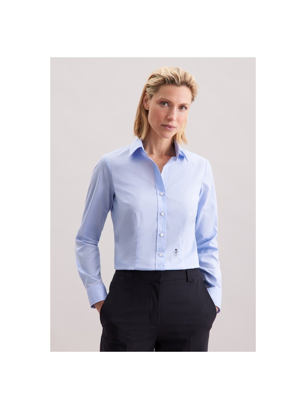 Měkká bavlněná příze charakterizuje optimální pocit z této dámské halenky Seidensticker Slim. Jednobarevný koncept se odráží v decentně přiléhavém střihu, který dokonale zdůrazňuje ženskou siluetu. Doplňujícími detaily jsou moderní košilový límec a manžety, které zůstávají vpředu otevřené. Ženský základ, který vyjadřuje nejen módní profesionalitu, ale i ženskou sílu.