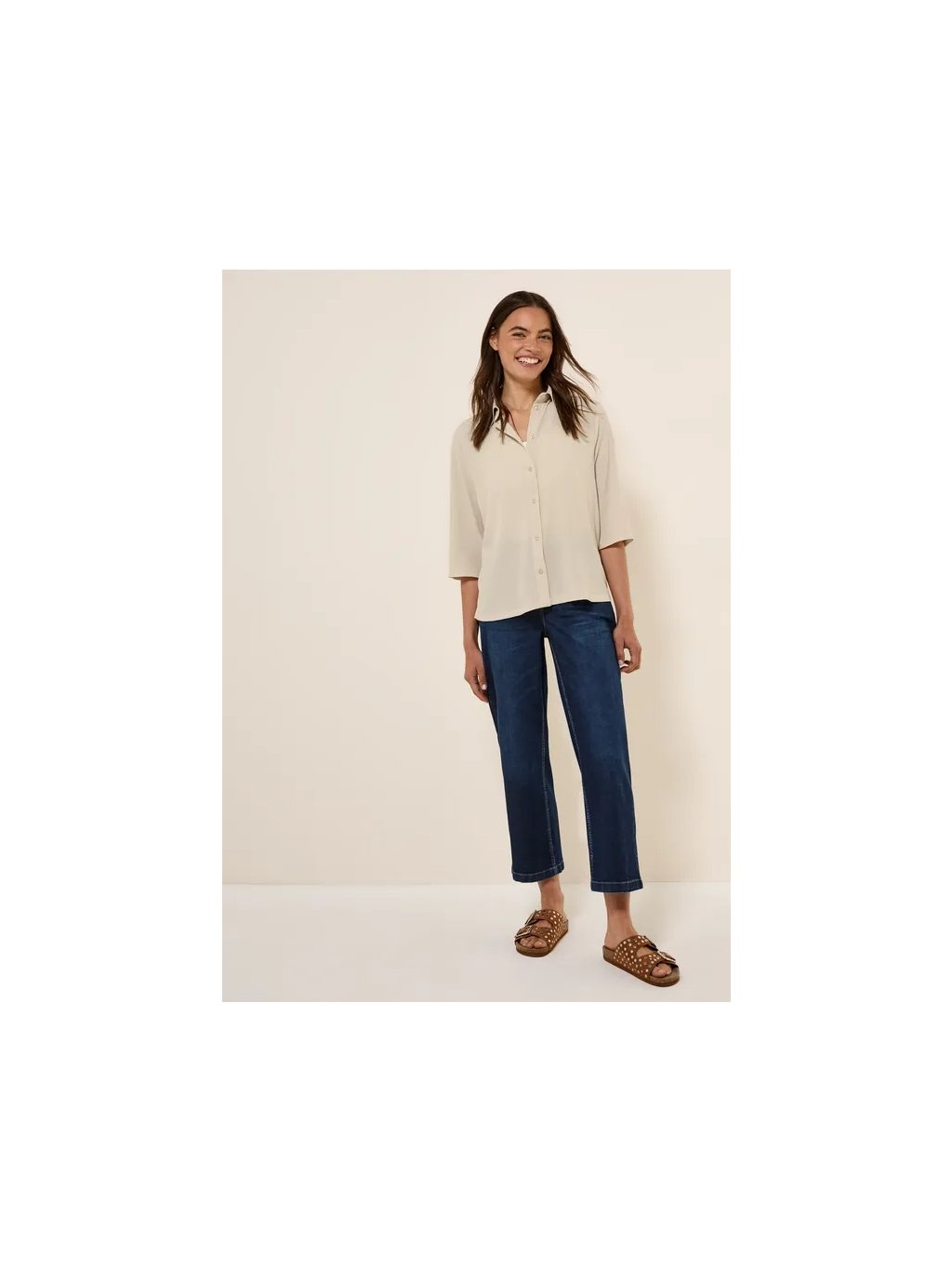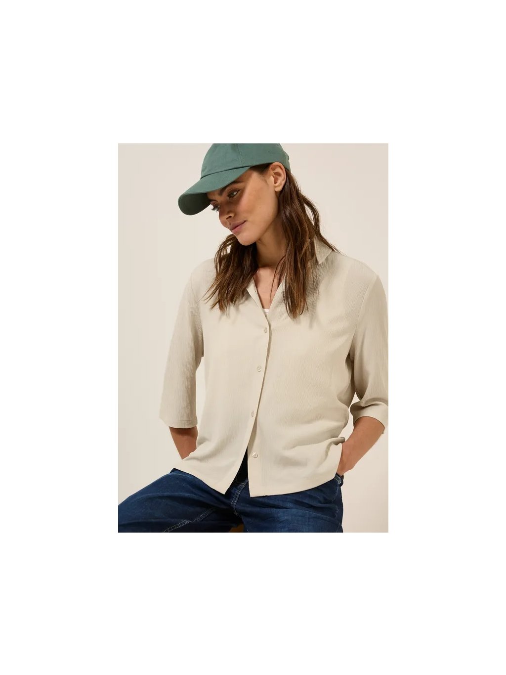 Tato letní halenka od značky CECIL pro ženy zaujme lehkou strukturou a klasickým košilovým límečkem. Poloviční rukávy a boční rozparky jí dodávají moderní nádech. Lehká směs viskózy zajišťuje pohodlné nošení.