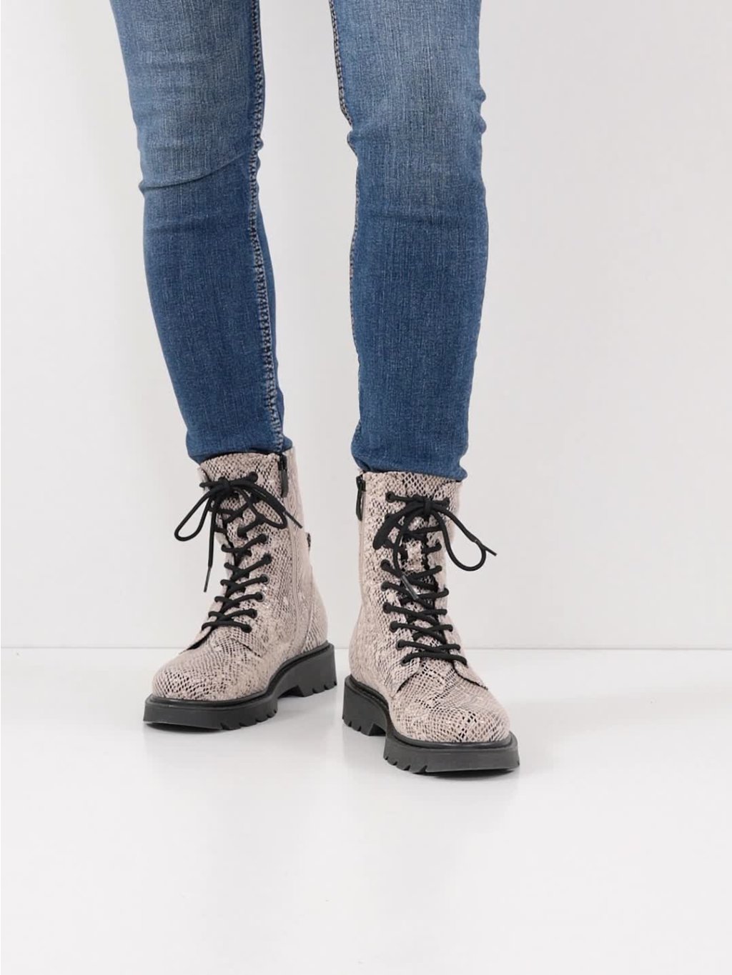 Stylové kotníčkové boty se silnými podrážkami a výrazným vzorem imitace hadí kůže. Díky 45mm podpatku tě čeká skvělý výhled na svět, zatímco měkká Touchit stélka dopřeje tvým nohám pohodlí na každém kroku. Objevuj město, přírodu i vlastní osobitost v botách, které spojují ležérní kouzlo, robustní vzhled i moderní trendy. Buď aktivní, buď svá, každý den.
