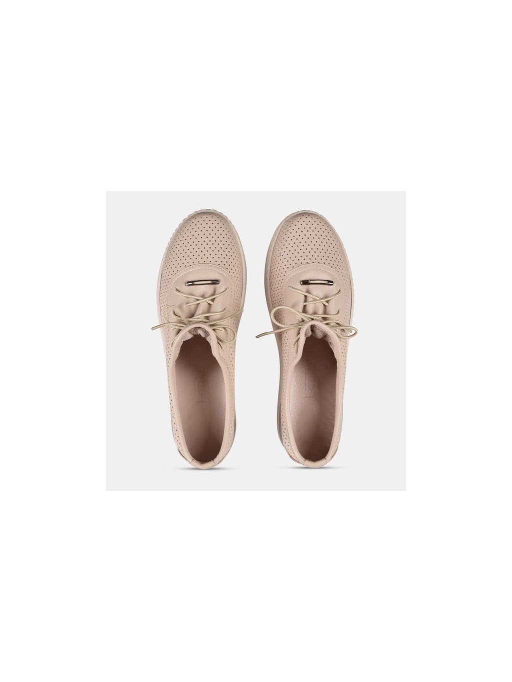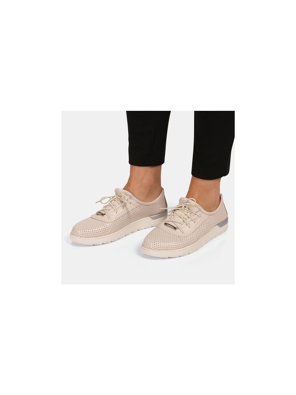 Pohodlné perforované tenisky z pravé kůže v krémové barvě a s ozdobným válečkem na tkaničkách.