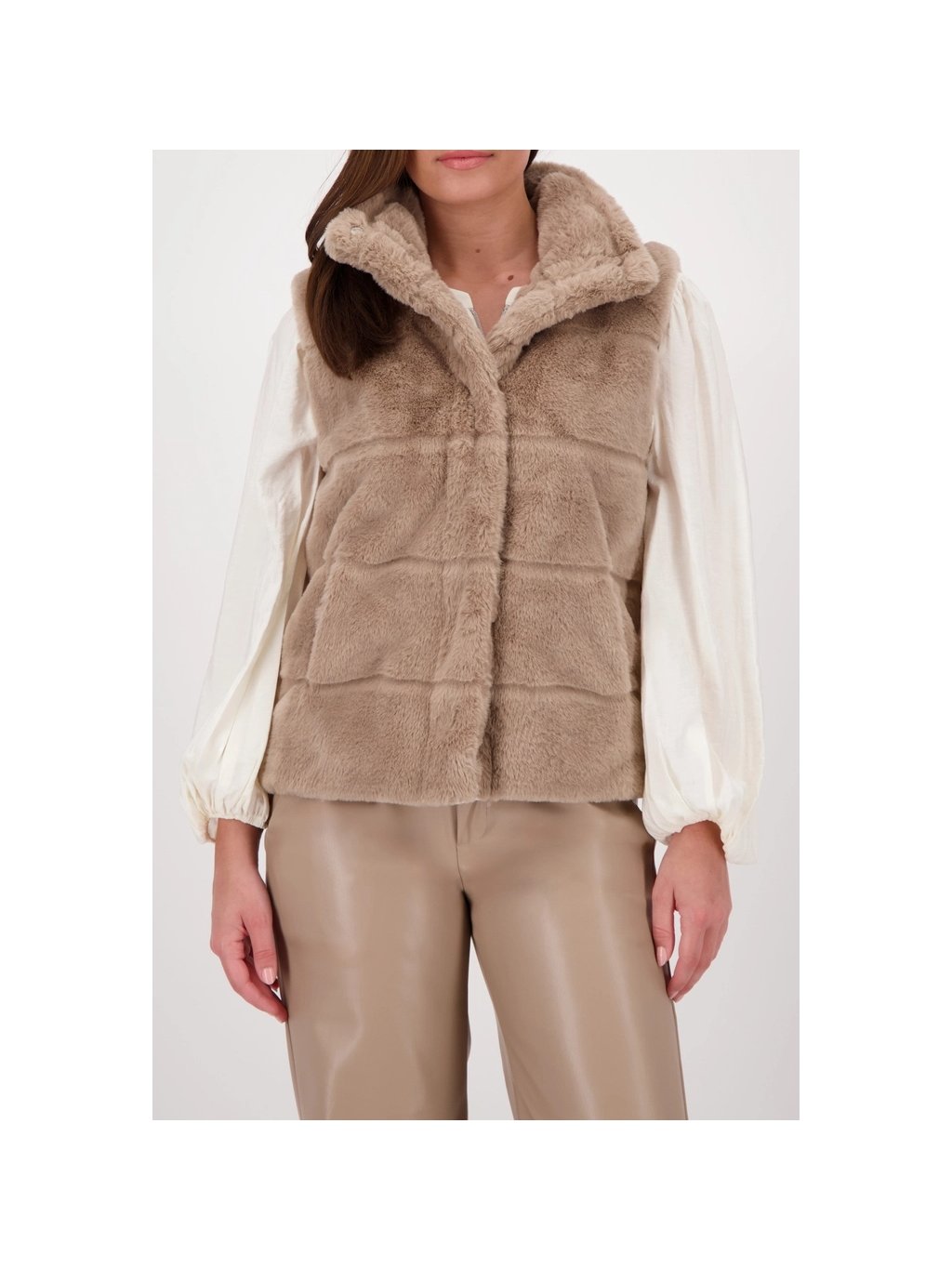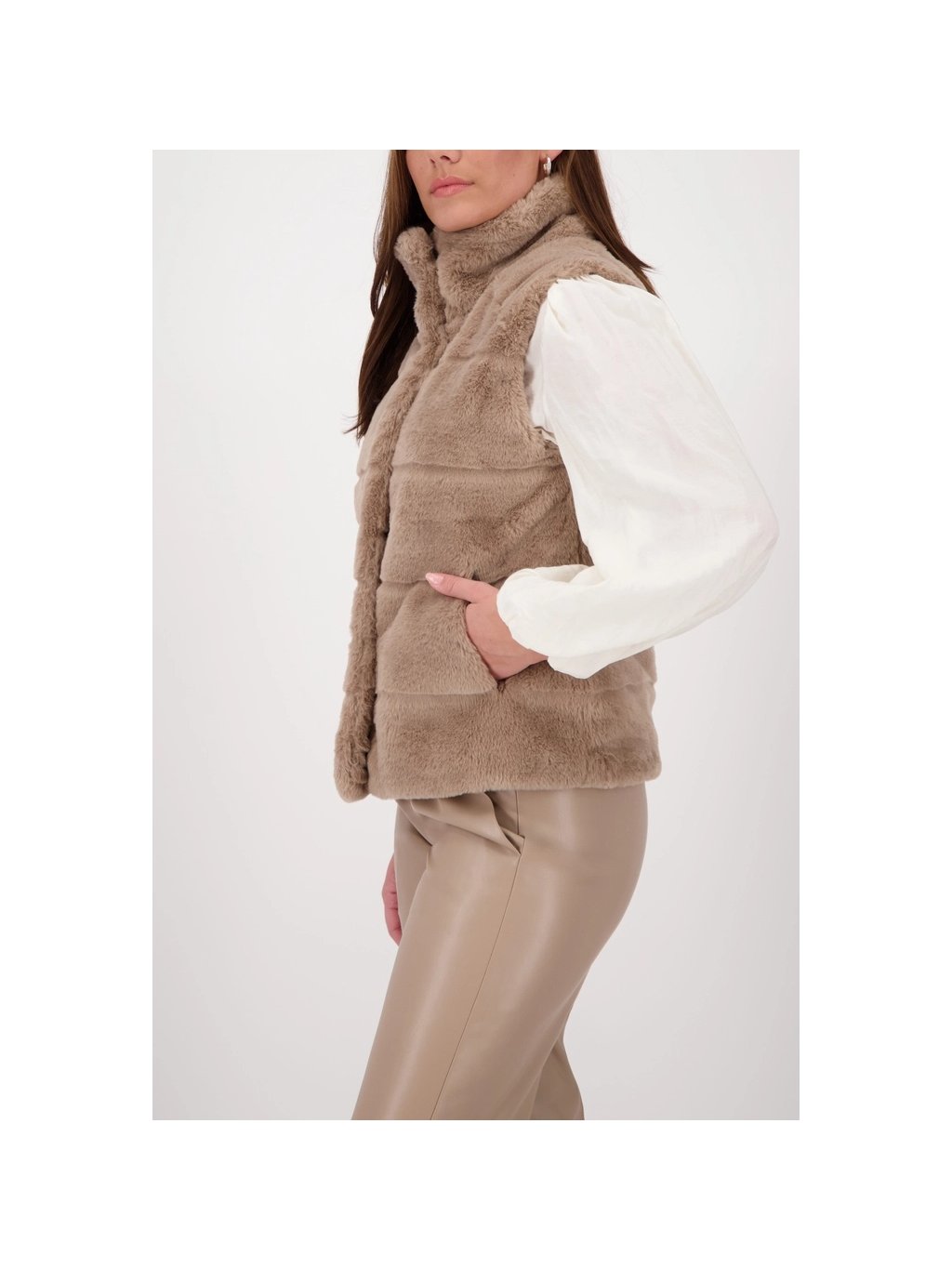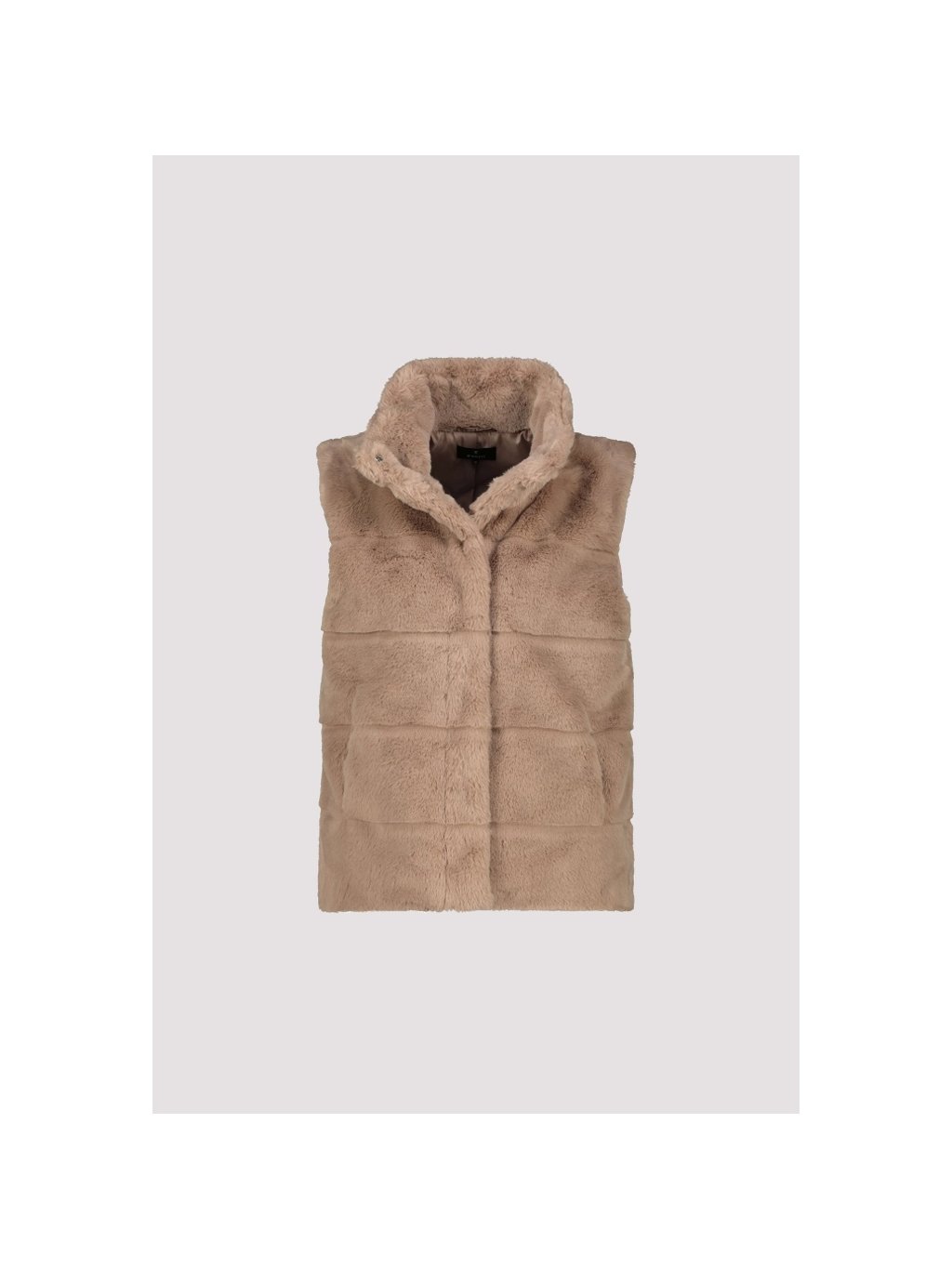 Elegantní kožešinová vesta se stojáčkem a měkkým povrchem, v klasickém střihu. Zapínání na knoflíky a boční kapsy zajišťují stylovou funkčnost