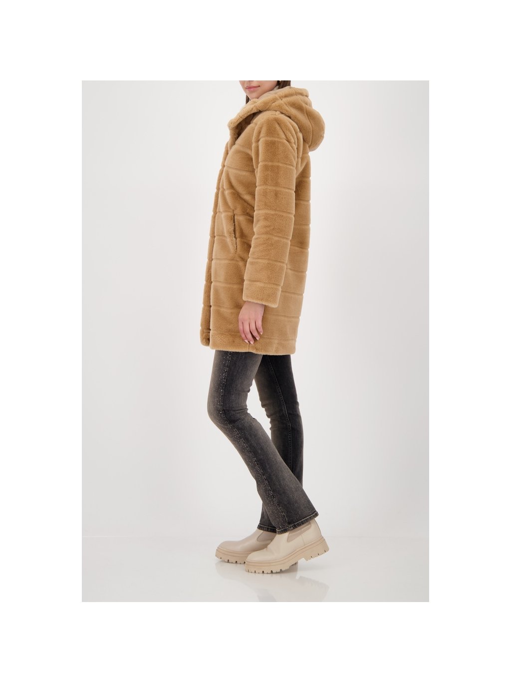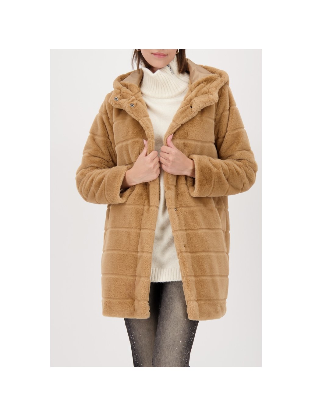 Stylový kabát z umělé kožešiny s nadýchaným pocitem a praktickými kapsami. Módní prohlášení pro každou příležitost.