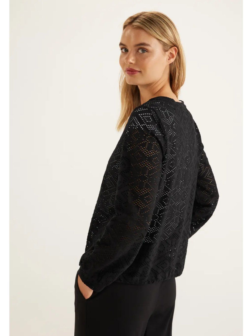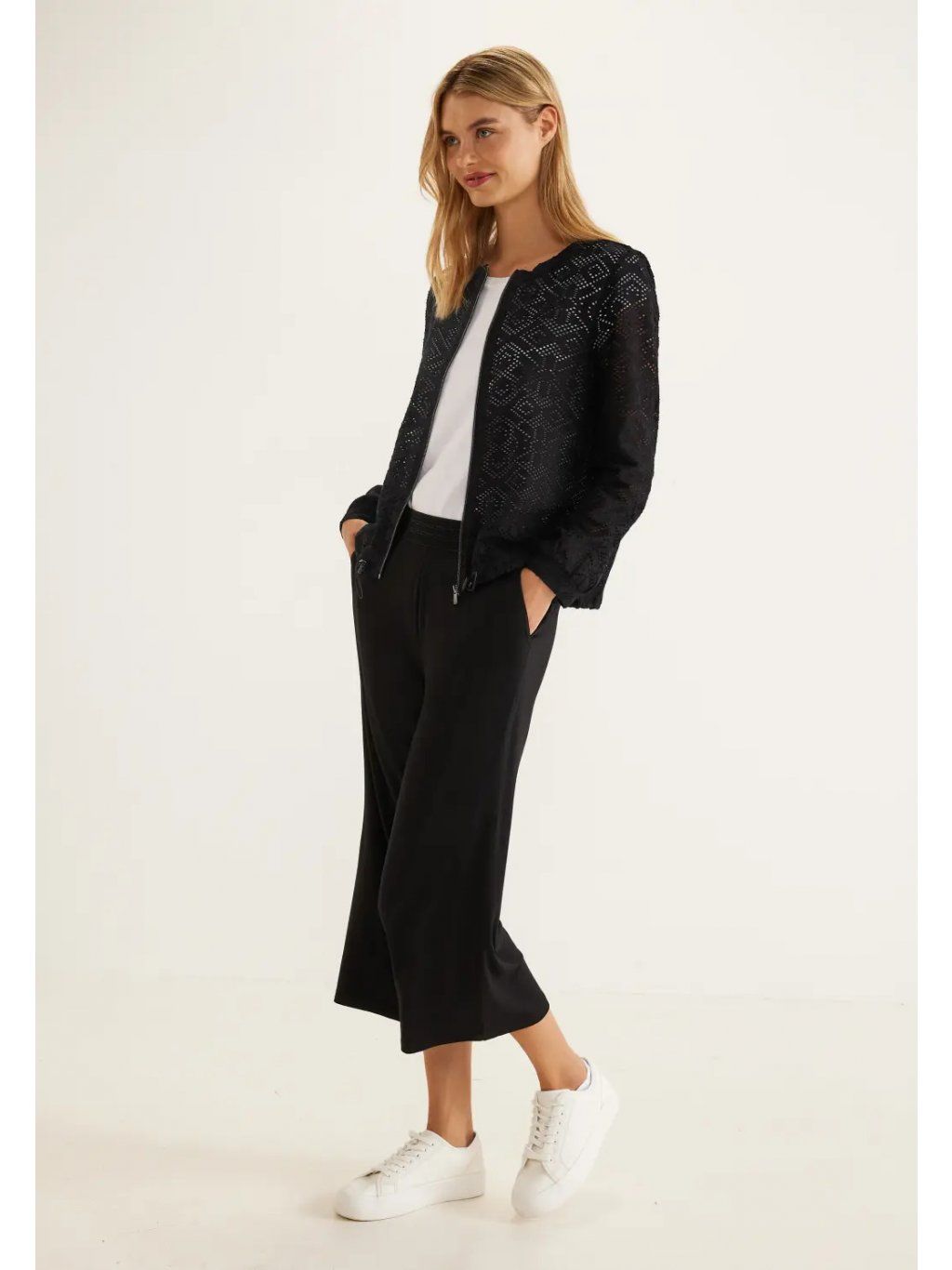 Tato dámská košilová bunda od Street One je naprosto úžasná. Je vyrobena z tmavé žakárové krajky a je poutavou a kombinační hvězdou. Sportovní vzhled završují zipy, stahovací šňůrky a kulatý výstřih.