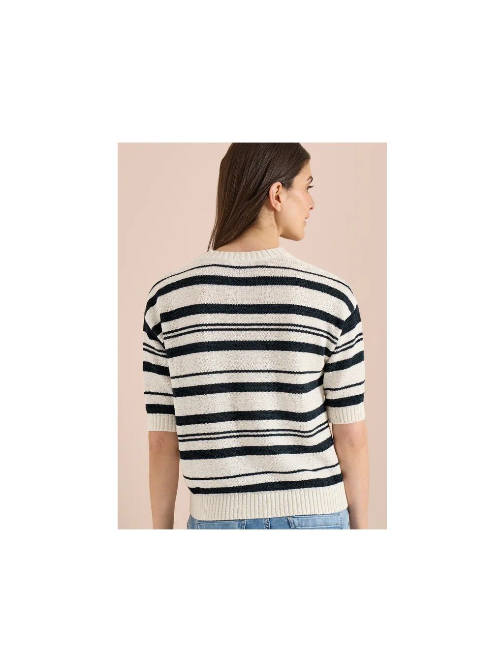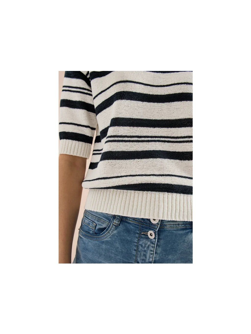 Lehký pruhovaný svetřík s krátkým rukávem.