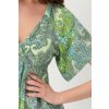 Maxi šaty ze 100% viskózy s paisley potiskem, výstřihem do V a krátkými rukávy. Sklady vpředu vytvářejí splývavou siluetu.