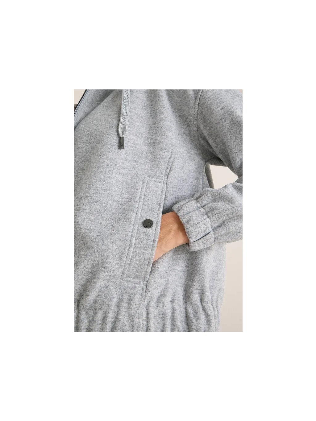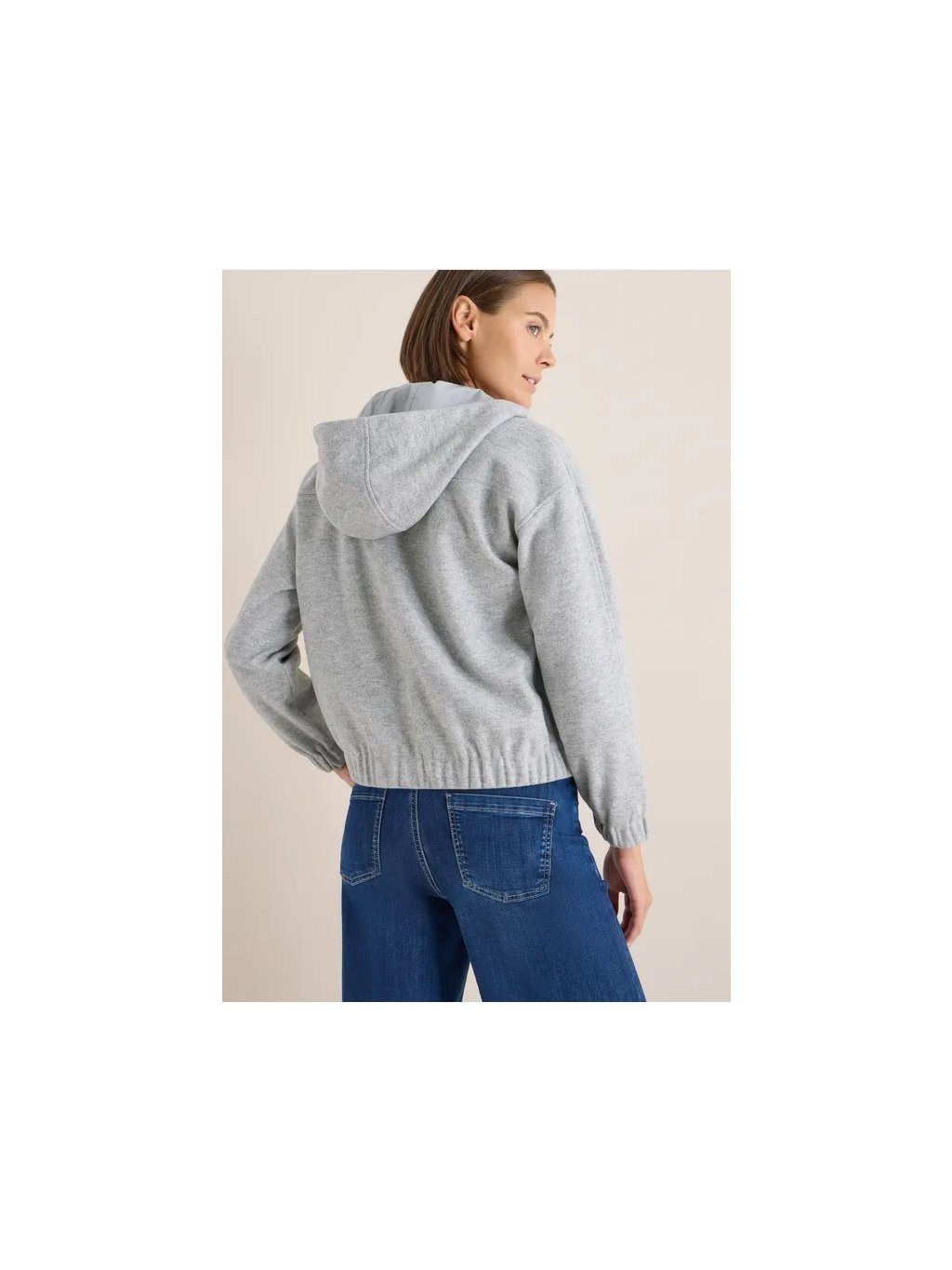 Dámská mikina s kapucí CECIL s vlněným vzhledem dodá vašemu outfitu ležérní a útulný nádech. Kapuce se stahovací šňůrkou a elastický lem zajišťují pohodlné nošení, zatímco boční kapsy s knoflíky nabízejí praktické uložení věcí. Lehká bunda, ideální pro přechodné počasí a uvolněný ležérní vzhled.