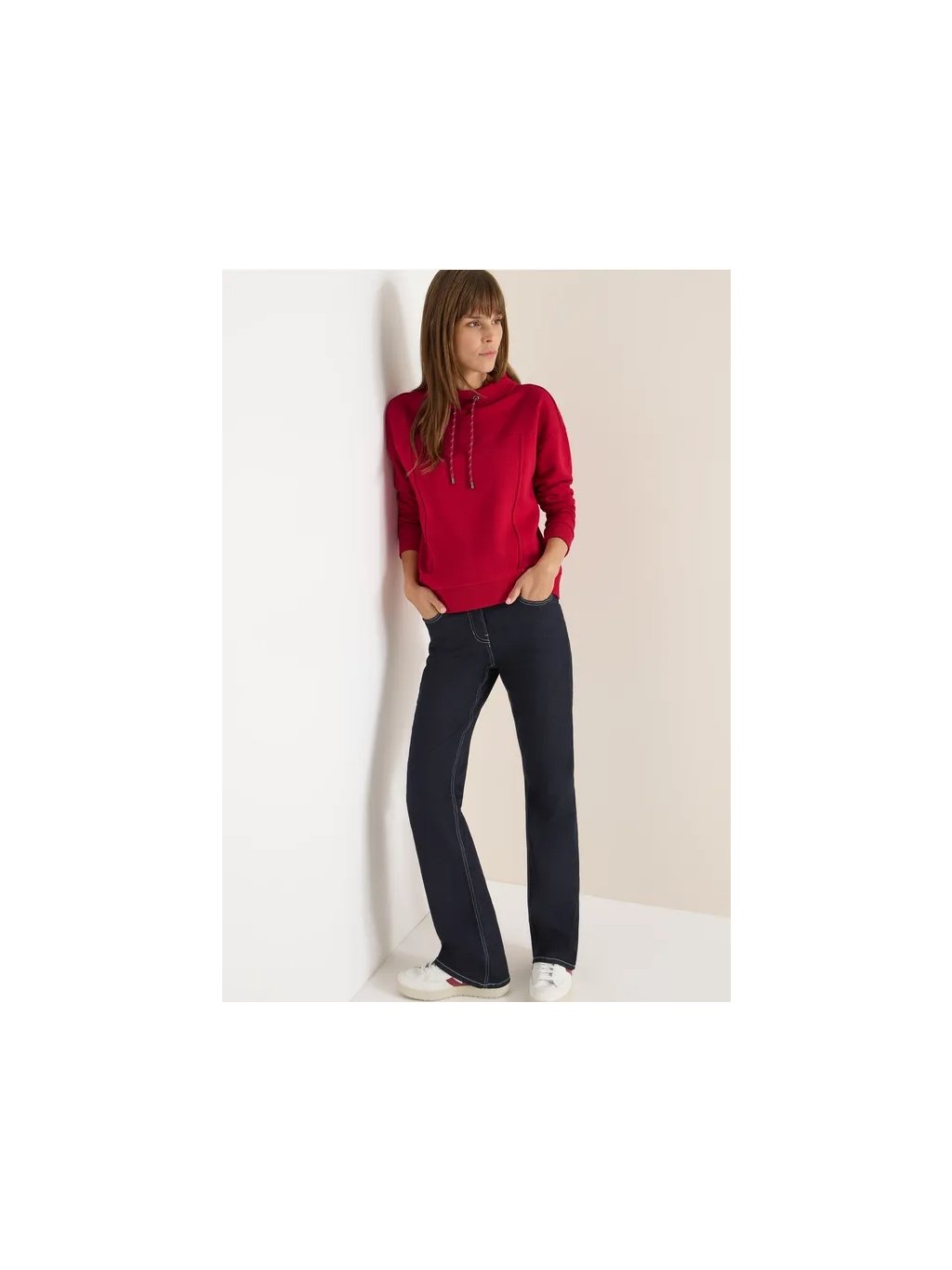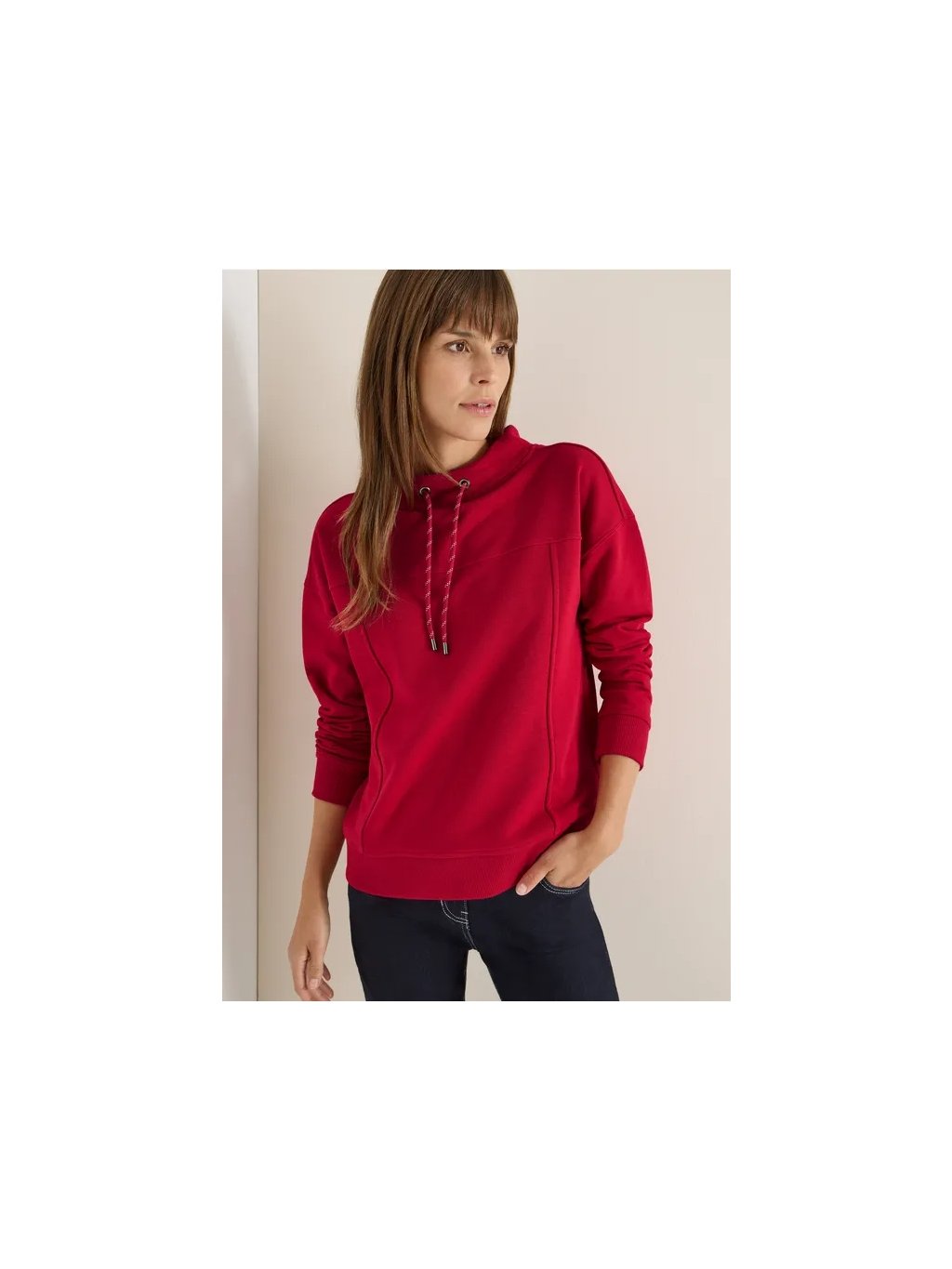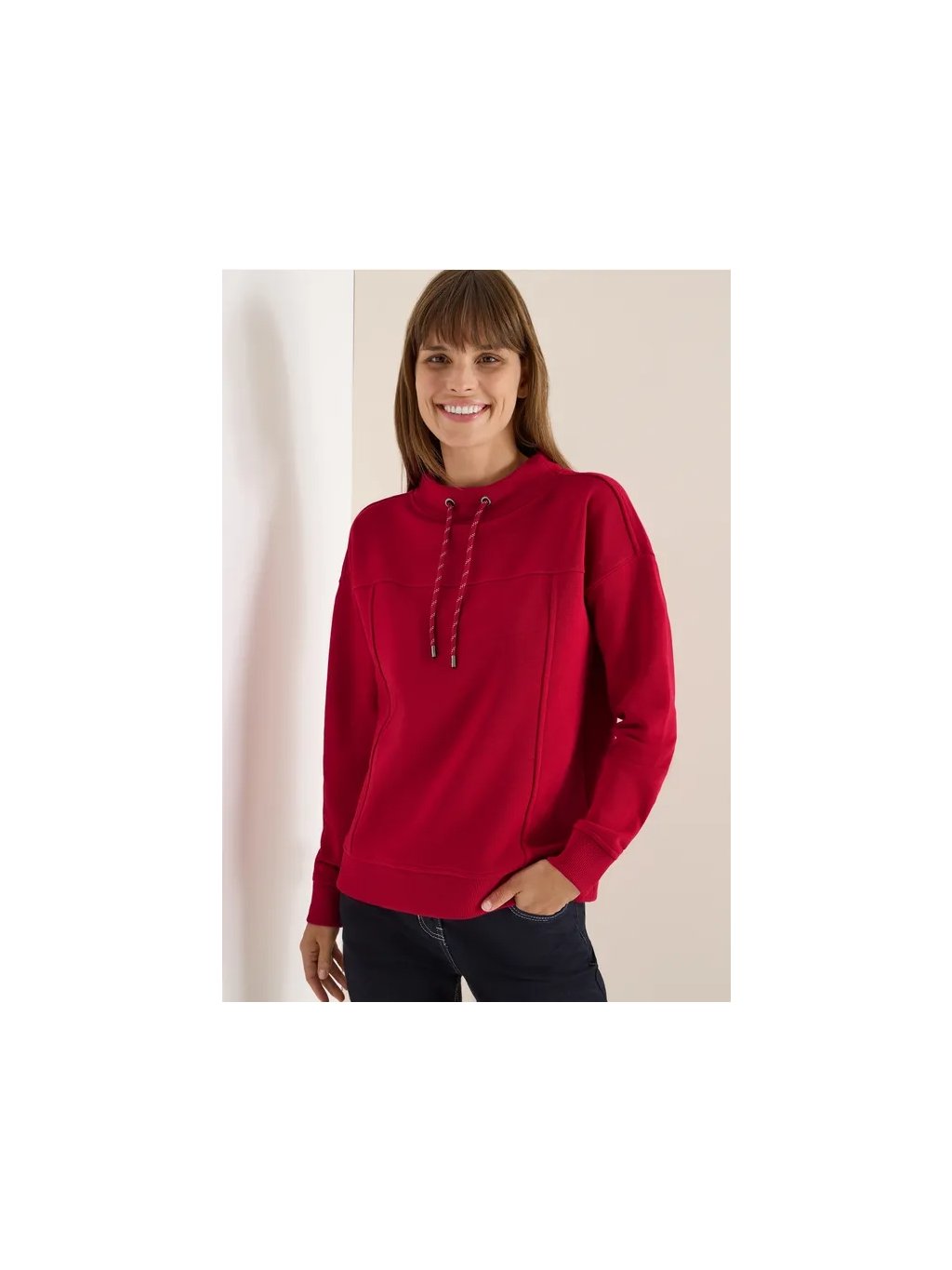 Díky pohodlnému střihu a ozdobnému prošívání nabízí tato dámská mikina CECIL sportovní a ženský vzhled. Trychtýřovitý výstřih se stahovací šňůrkou a měkká tepláková tkanina z ní činí ideálního společníka pro volné dny. Dokonalá pro váš stylový a zároveň příjemný vzhled.