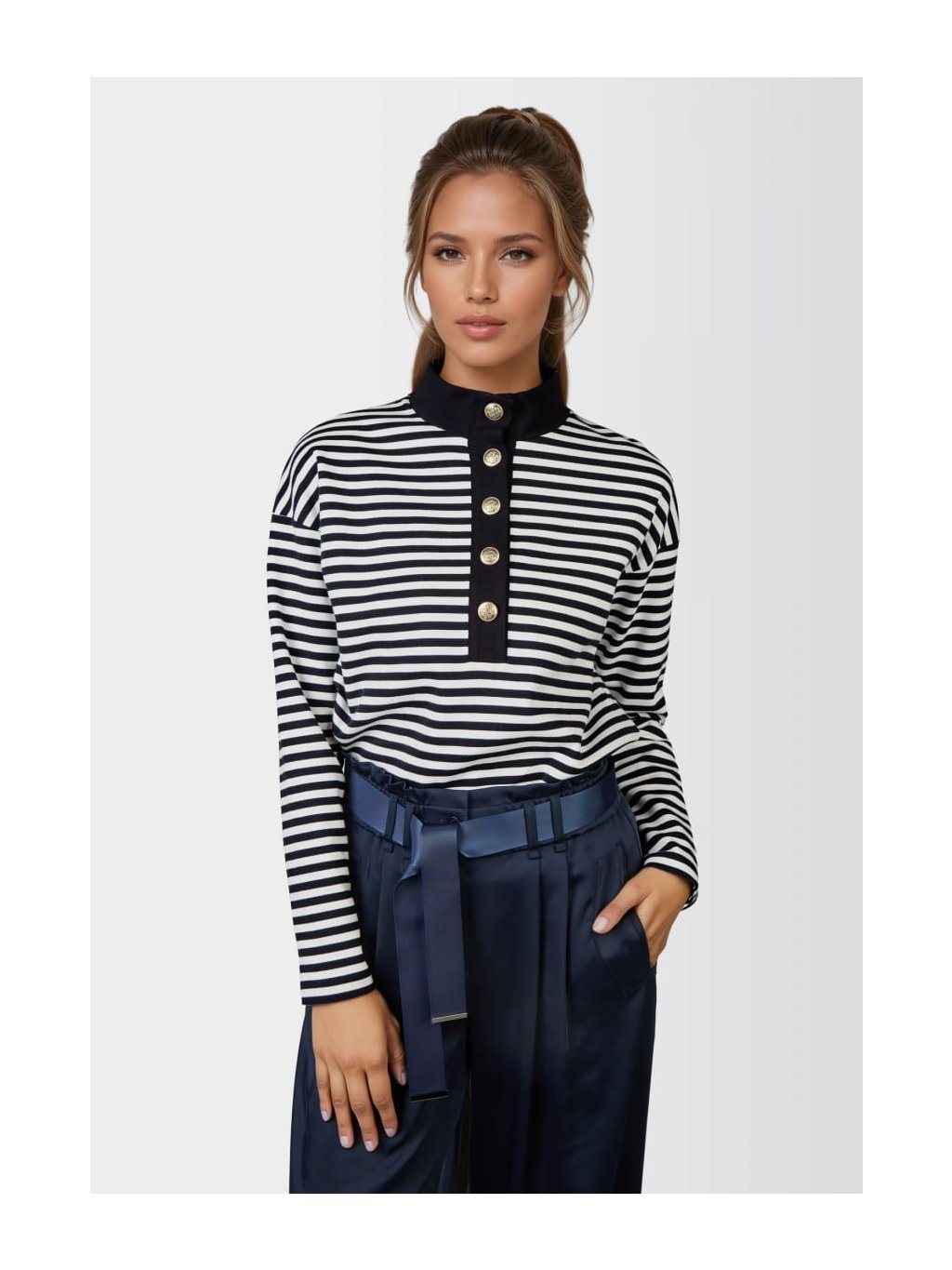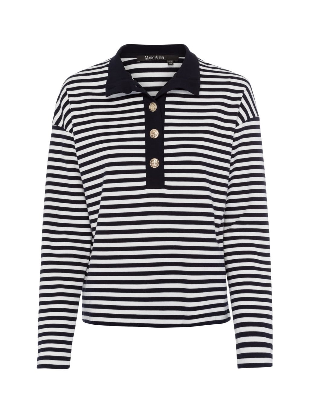 Stylová klasika: Tato košile z pevného úpletového žerzeje zaujme širokou knoflíkovou légou a elegantním stojáčkem. Zlaté ozdobné knoflíky dotvářejí design. Ideální pro stylový a moderní vzhled.