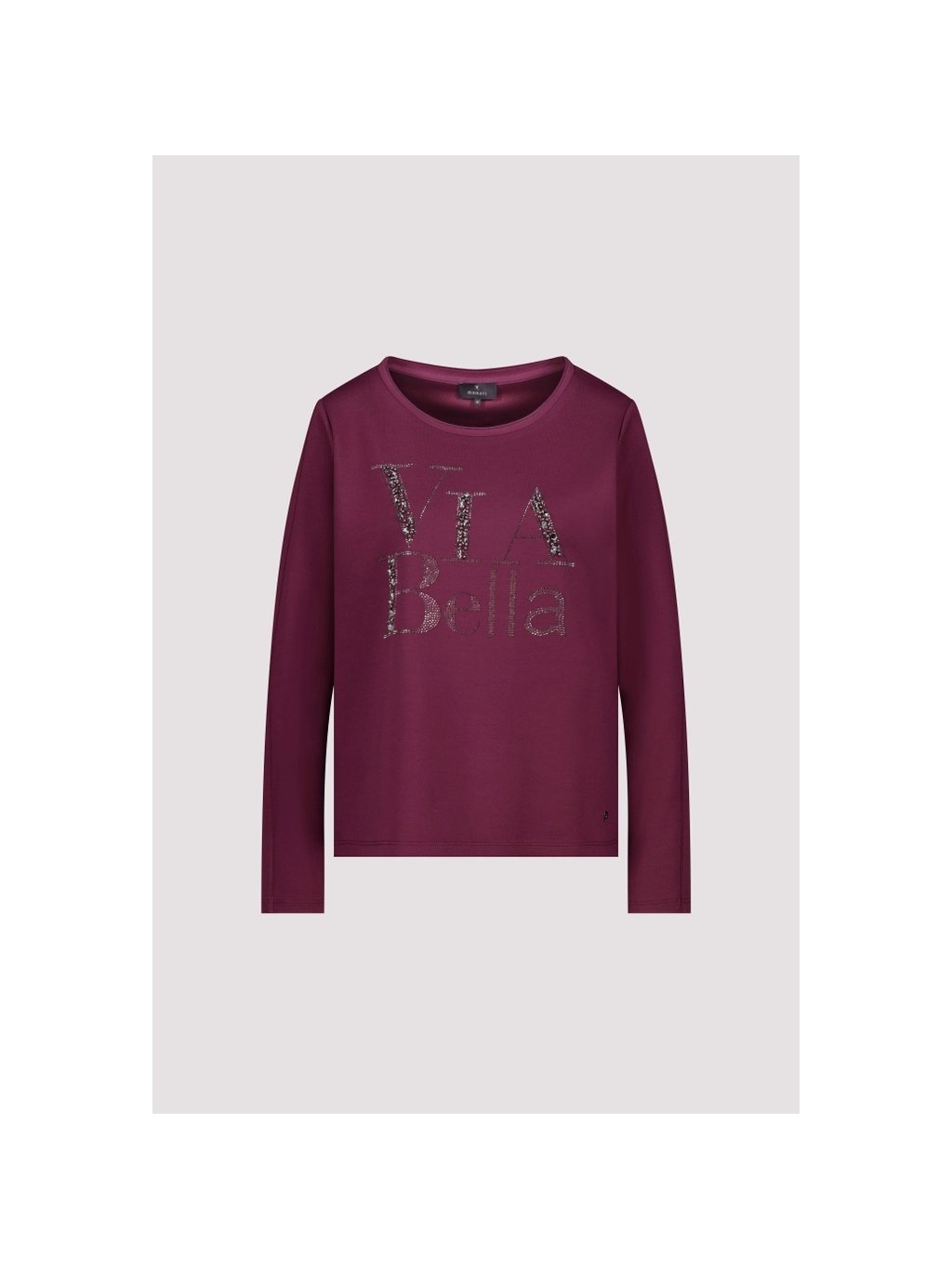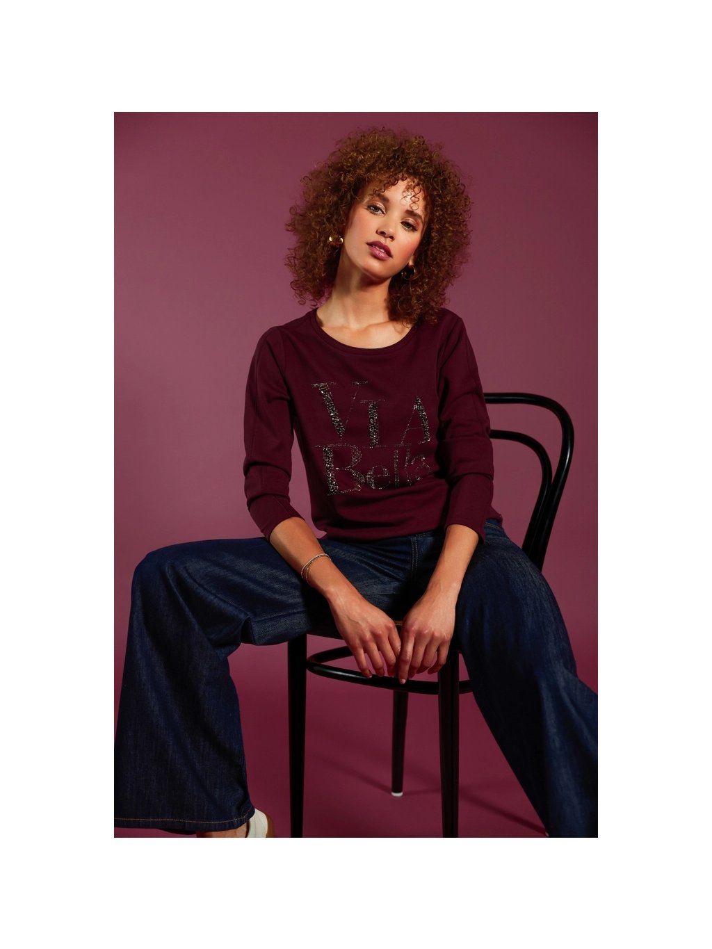 Elegantní mikina z pružné splývavé viskózy je měkká na dotek a má okouzlující nápis „Via Bella“.