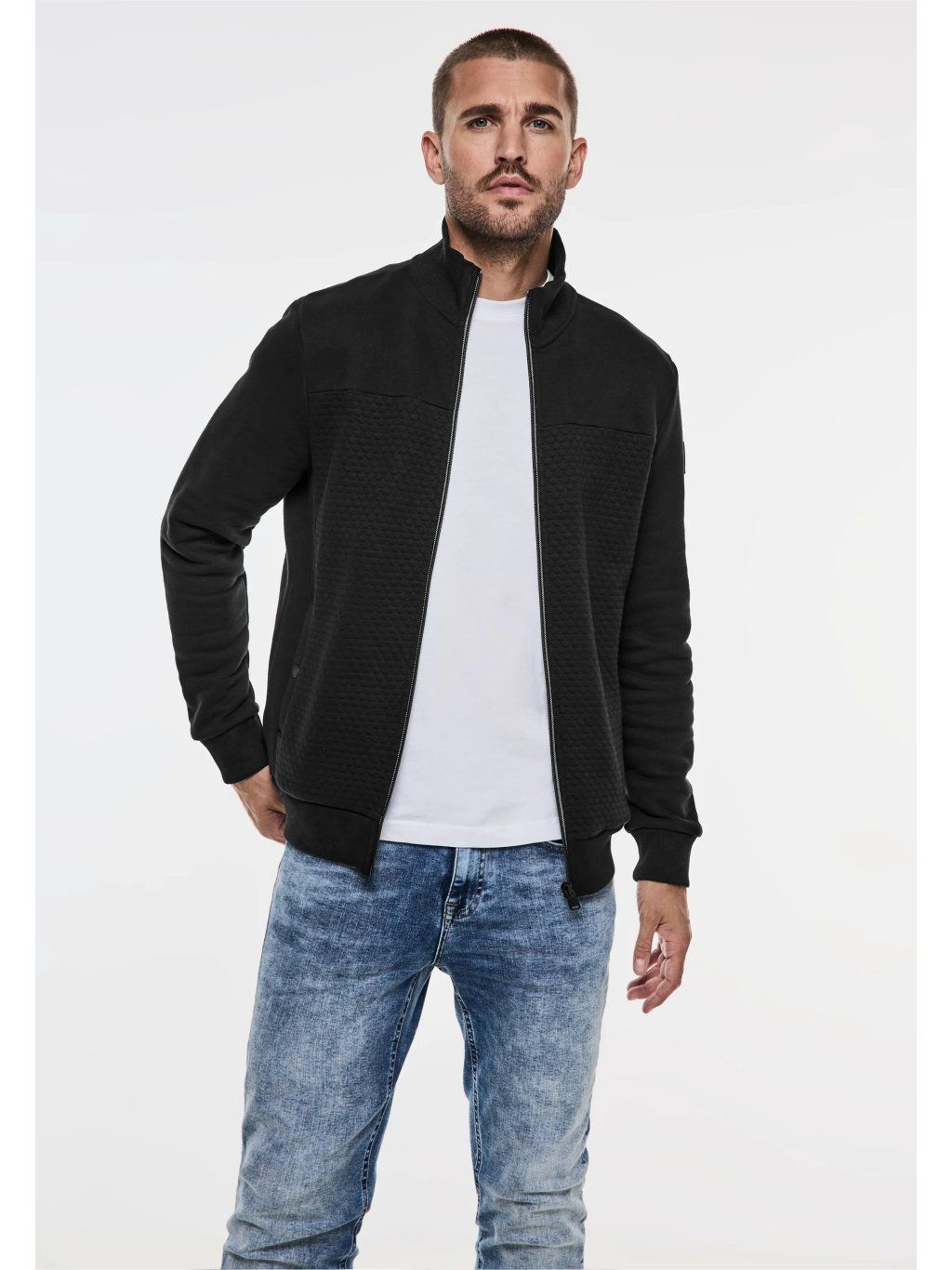 Tato pánská mikina Street One z kombinace materiálů nabízí pohodlí a styl v jednom. Stojáček a boční kapsy ji činí funkční, zatímco pohodlná směs bavlny zajišťuje pohodlné nošení. Celopropínací zip dotváří design.