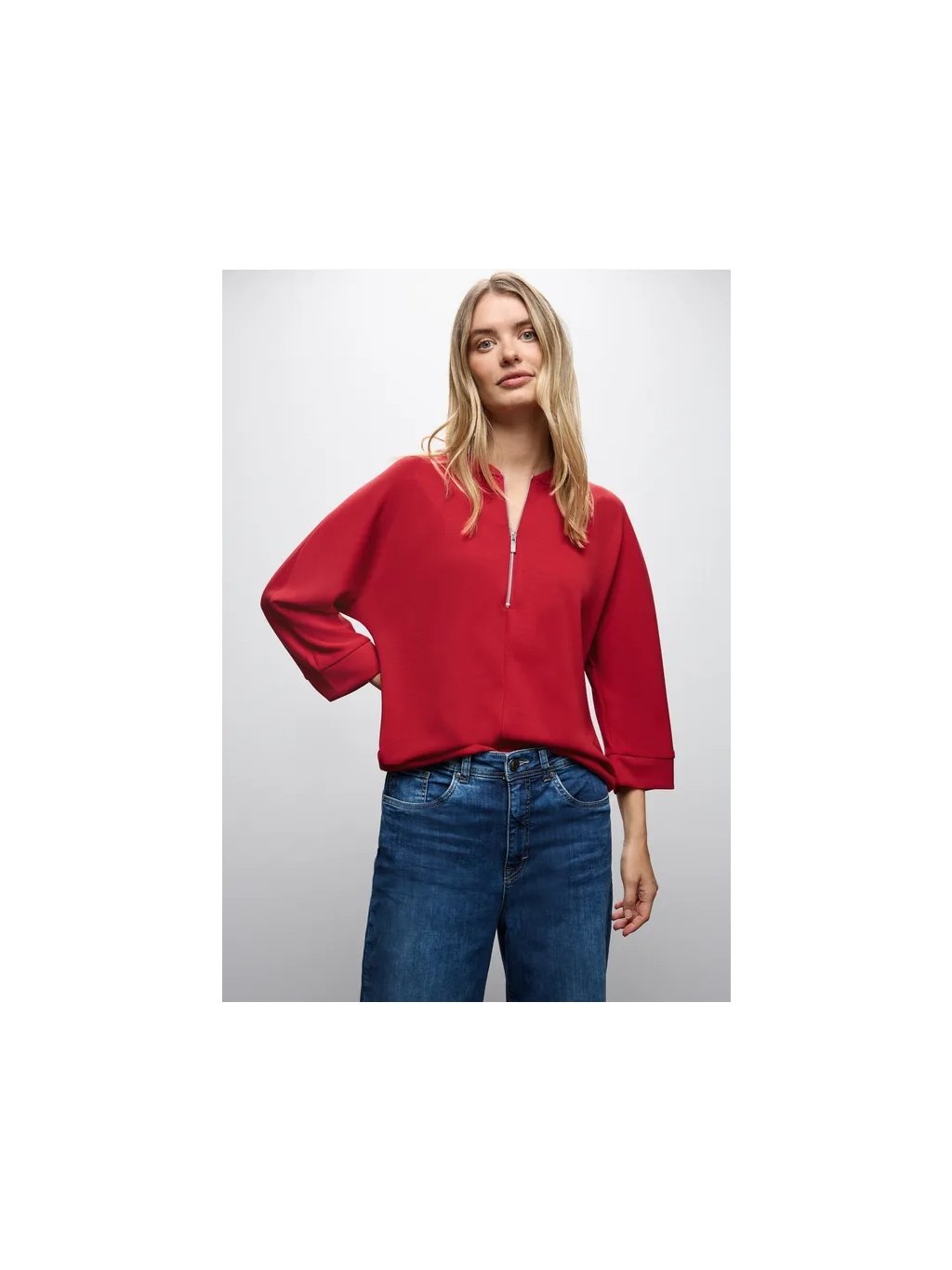 Tato mikina od Street One zaujme svým elegantním hedvábným vzhledem a ozdobným zipem na kulatém výstřihu. 3/4 rukávy a splývavá látka s hedvábným leskem dodávají vzhledu ženskou eleganci. Měkká kvalita zajišťuje pohodlné nošení – ideální pro stylové každodenní outfity.