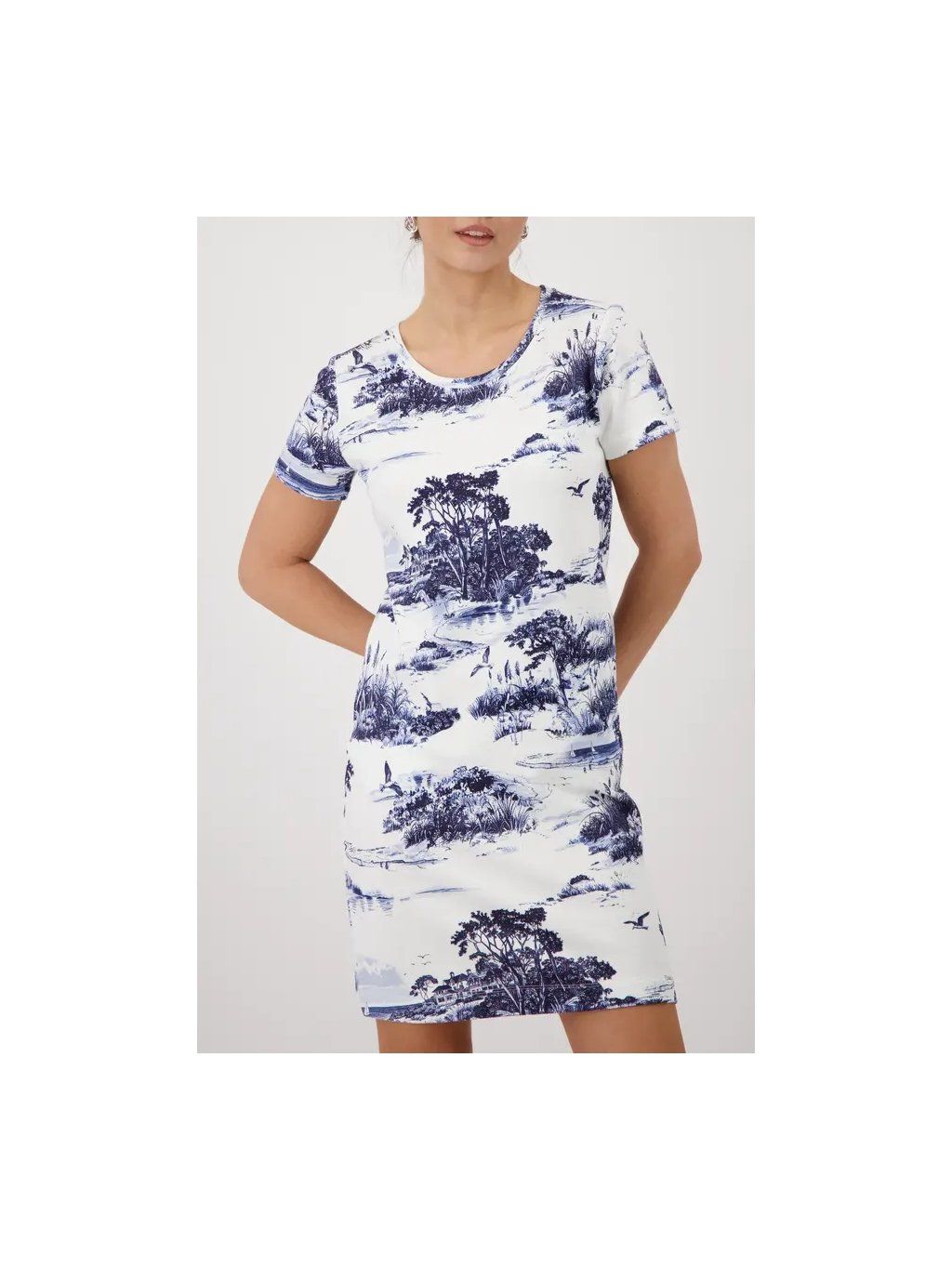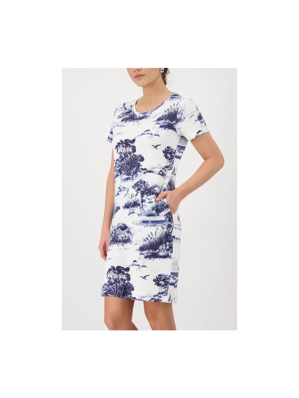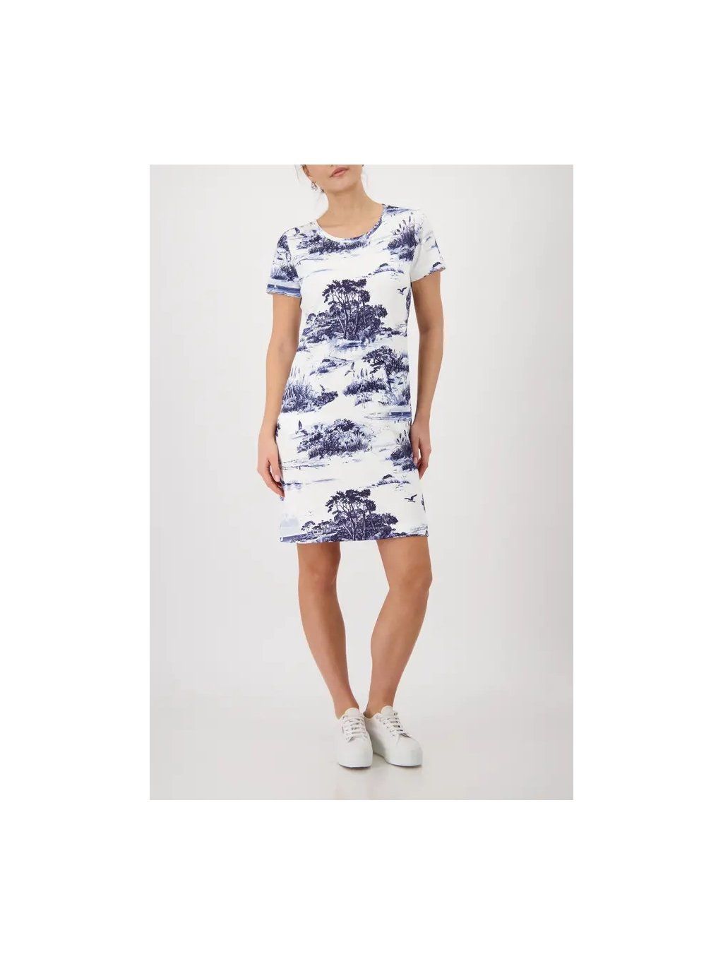 Tyto elegantní mikinové šaty ze 100% bavlny jsou krásně hebké na dotek, mají froté uvnitř a ležérní kulatý výstřih. Krajinkový potisk jim dodává osobitost a styl.