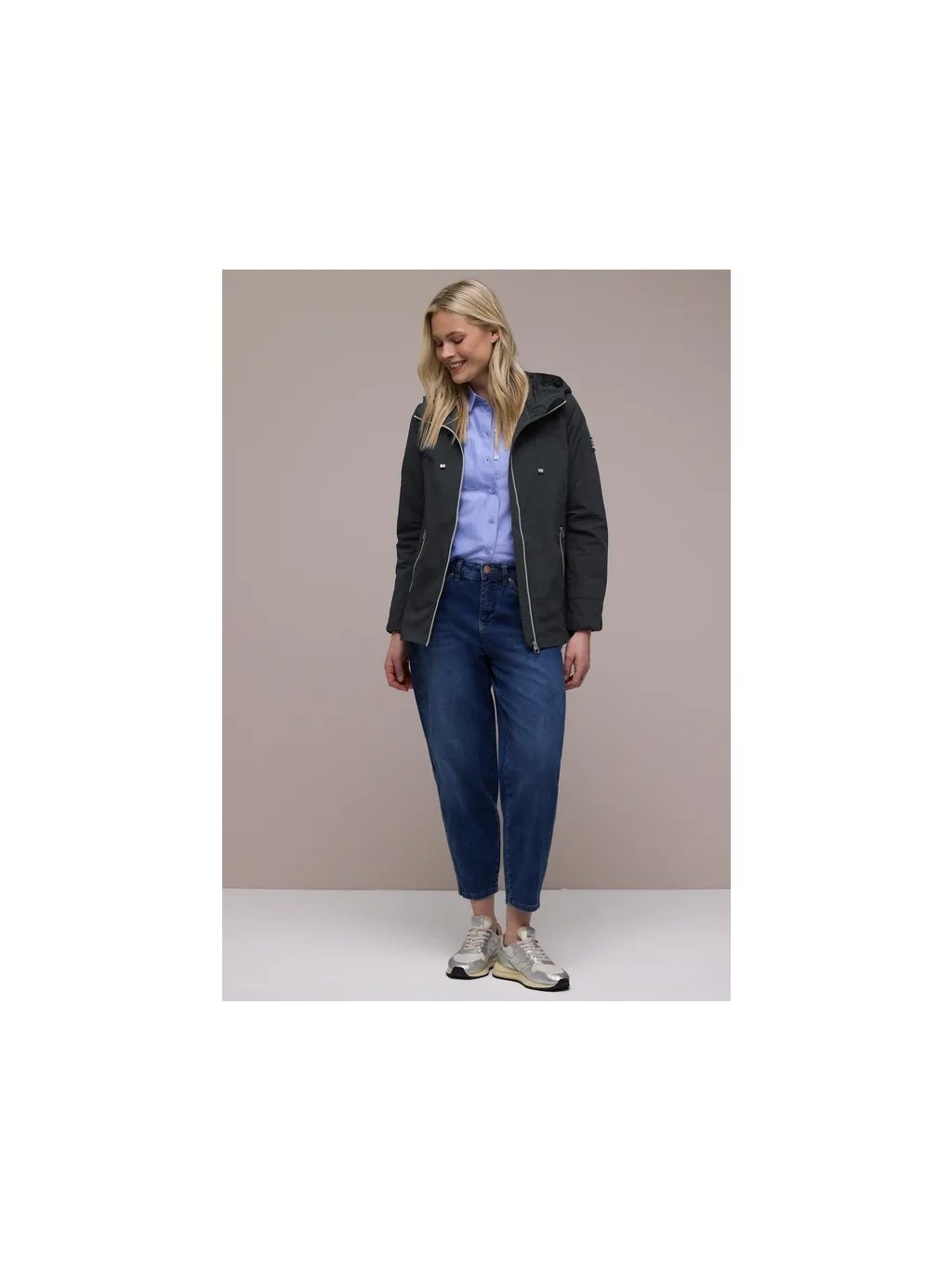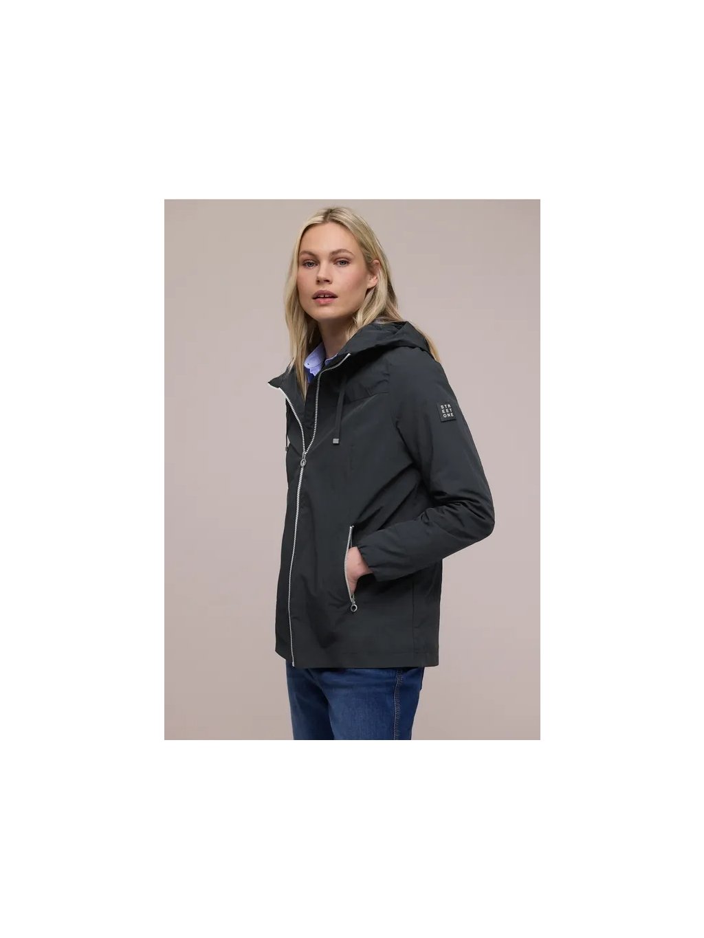 Tato moderní dámská větrovka od Street One je vaším lehkým společníkem na outdoorové aktivity se sportovním nádechem. Zip po celé délce dodává bundě čistý vzhled, zatímco kapuce se stahovací šňůrkou umožňuje praktické nastavení. Boční kapsy nabízejí prostor pro drobnosti a doplňují funkční design. Ideální volba pro větrné dny a ležérní volnočasové styly.