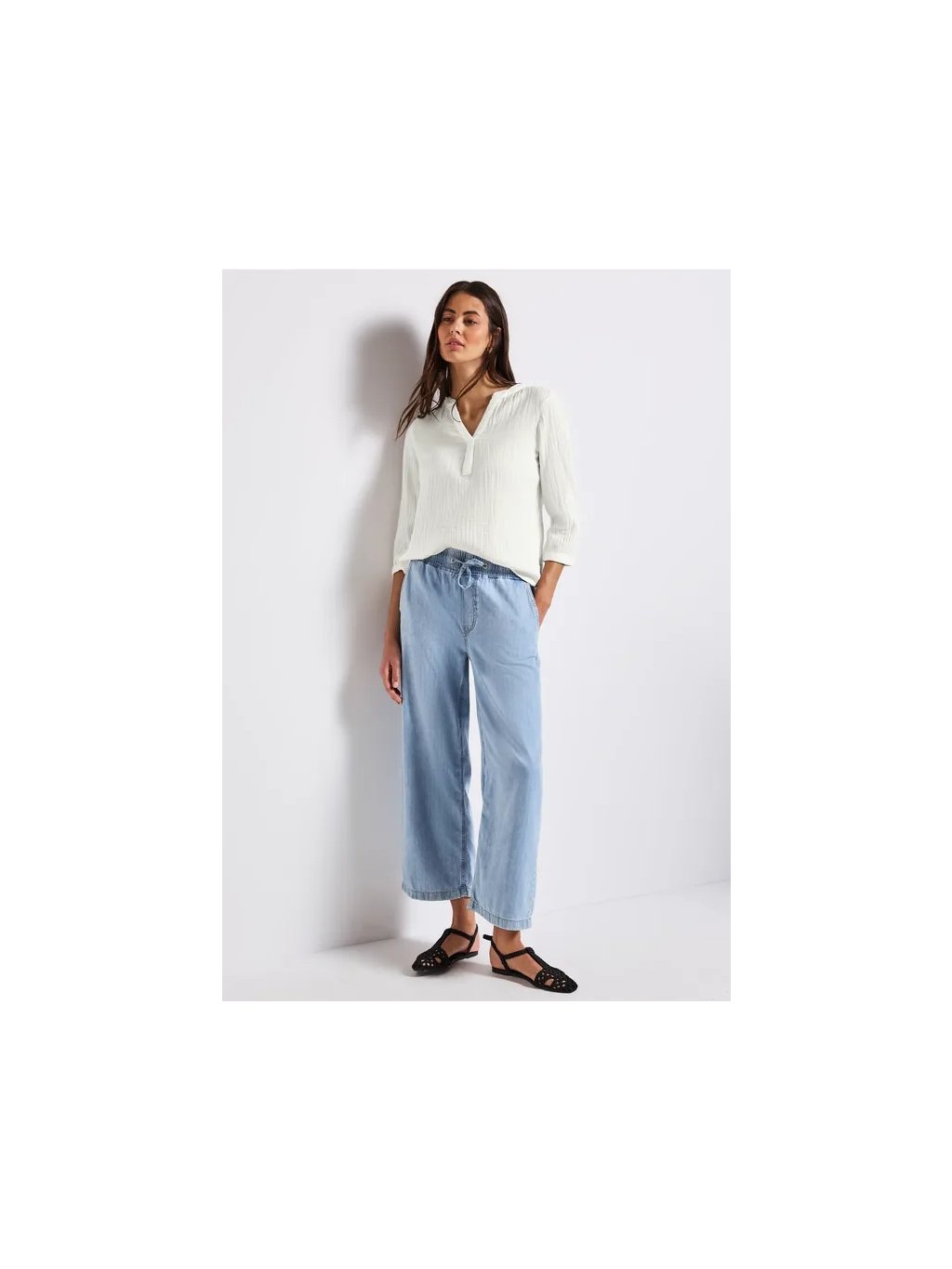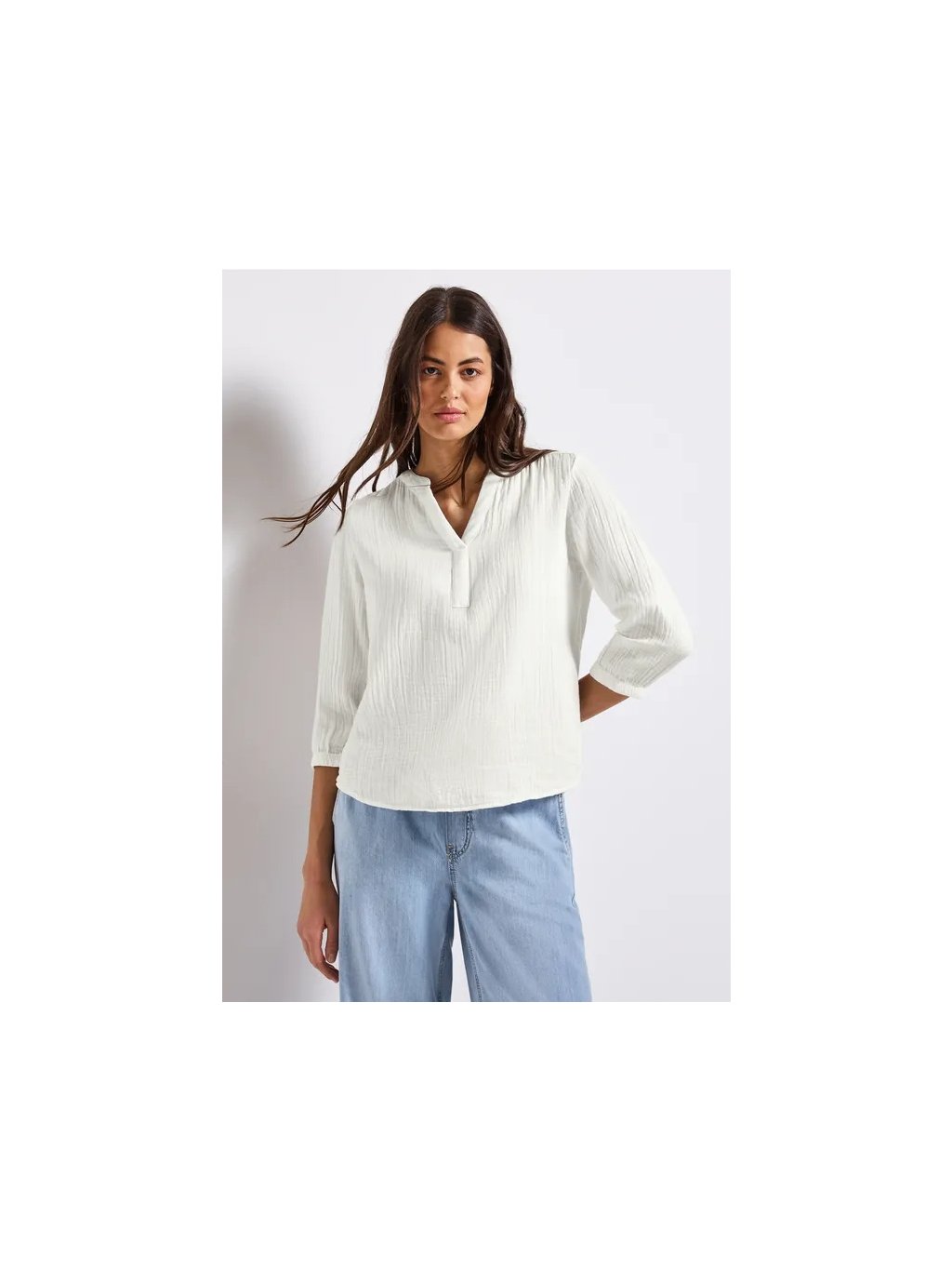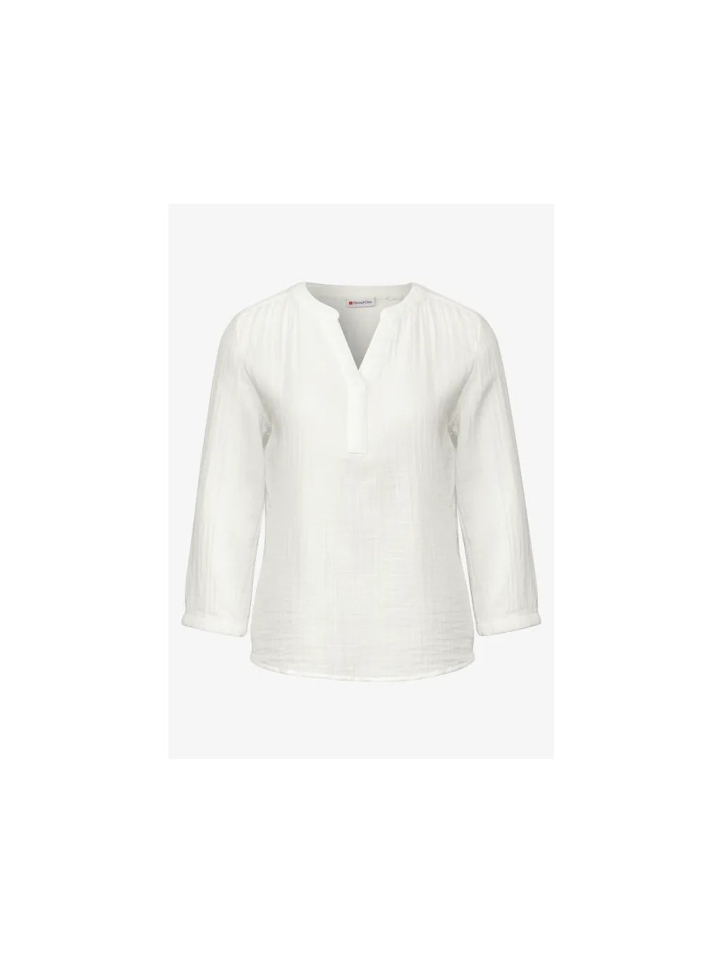 Dámská mušelínová tunika od Street One zaujme rozparkovým výstřihem a tříčtvrtečními rukávy s elastickými manžetami – ideální pro vzdušný vzhled. Čistá bavlna zajišťuje přirozený a pohodlný pocit. Zaoblený lem dodává letní halence ženský nádech.
