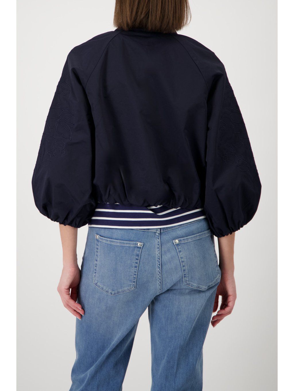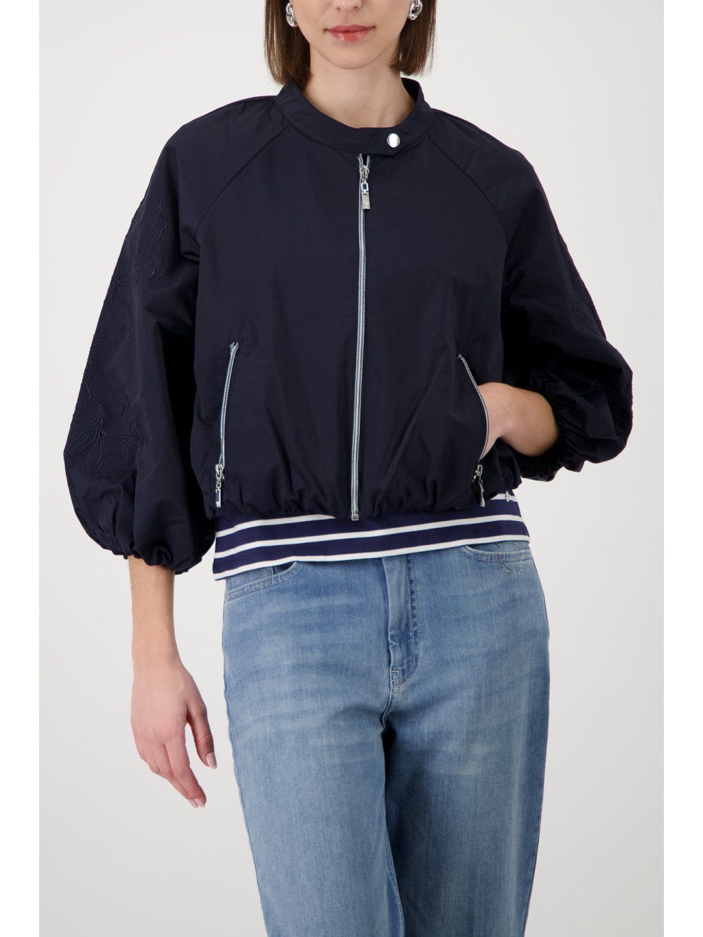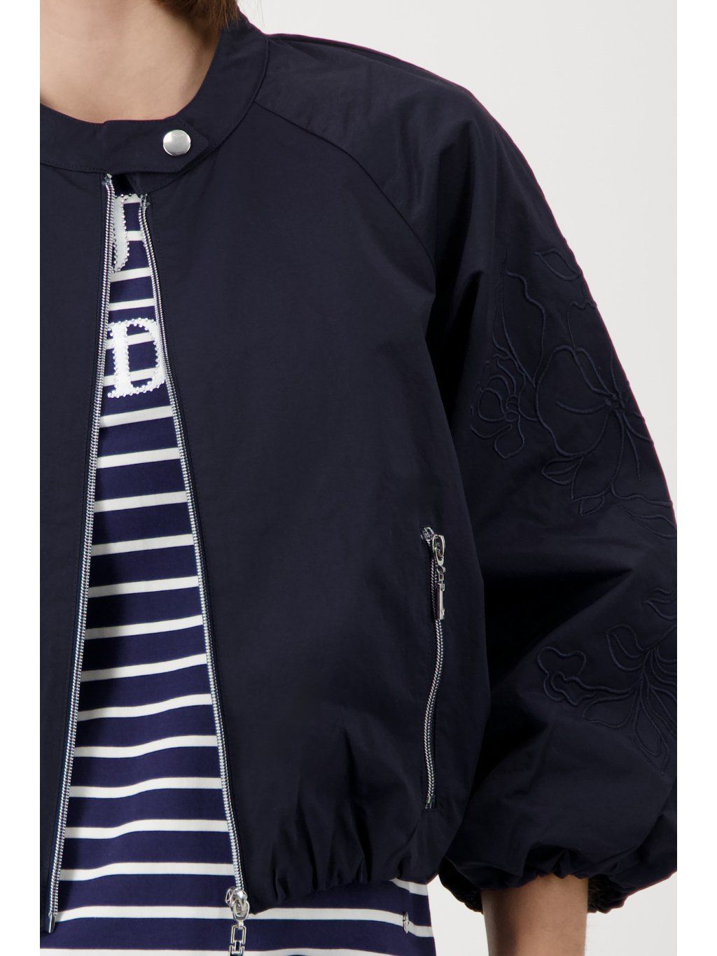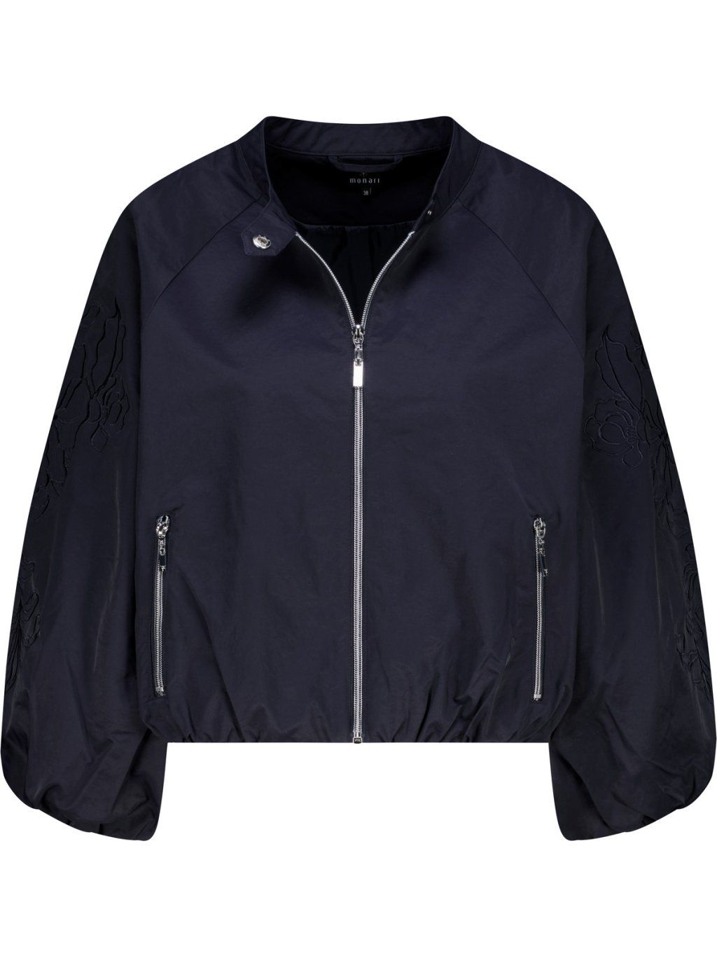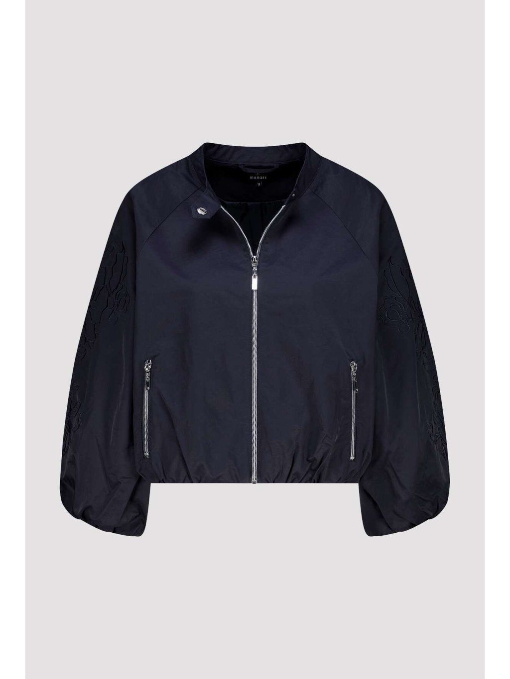 Módní nylonová bunda s elegantní výšivkou, ¾ rukávy a kapsami na zip. Elegantní kulatý výstřih s praktickým zapínáním na patentku.