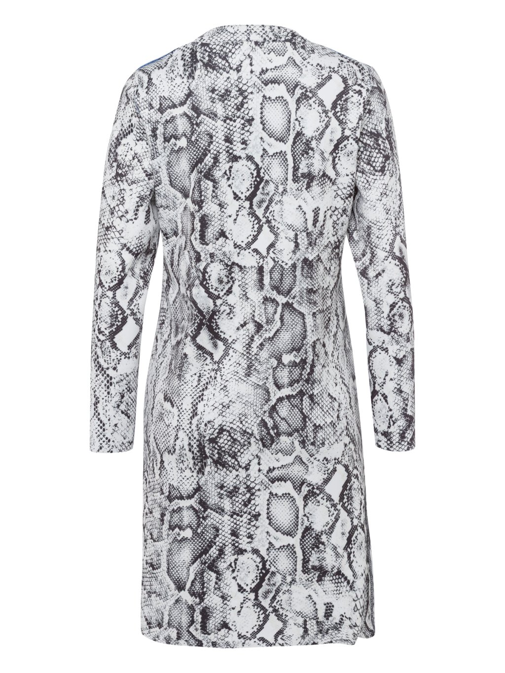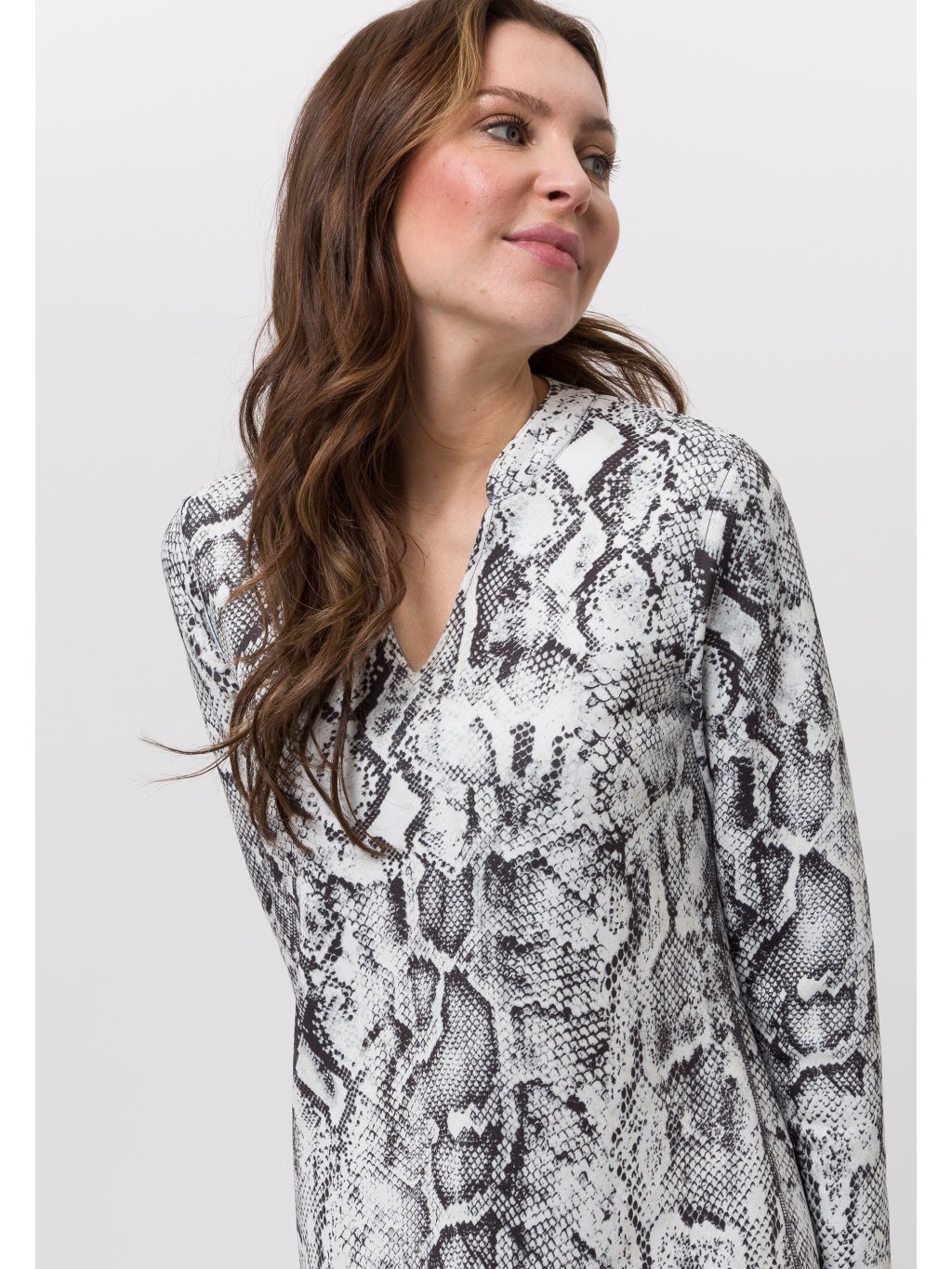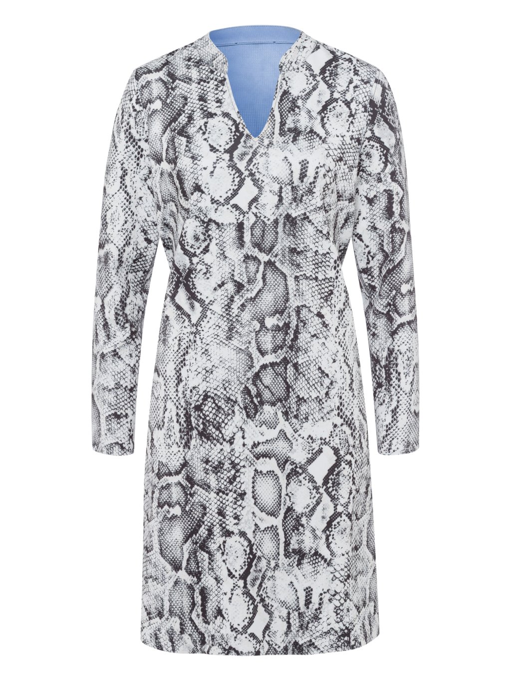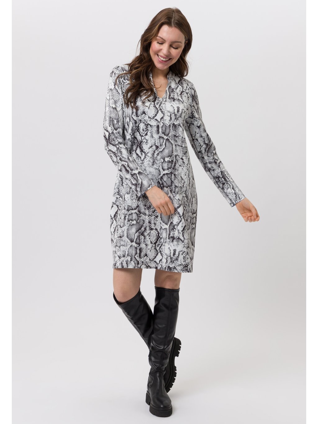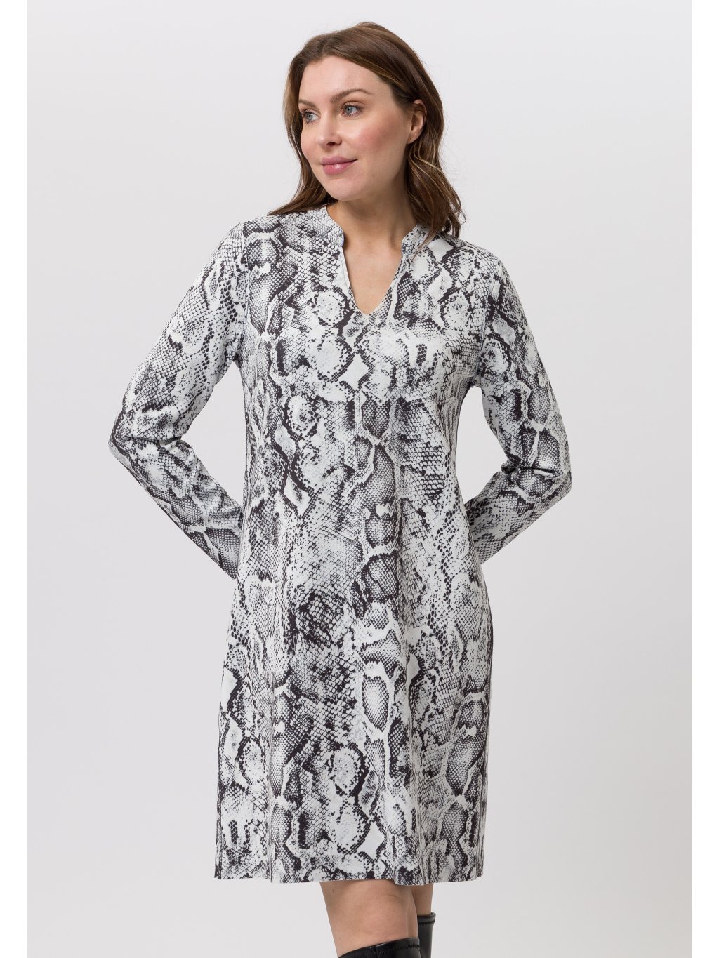 Tyto šaty mají vše, co potřebujete k tomu, abyste udělali dojem! Vzrušující celoplošný vzor s horským motivem doplněný pohodlnou strečovou tkaninou zajišťuje spolehlivě přiléhavý a nemačkavý střih. Výstřih do V je doplněn úzkým stojáčkem. Všestranně povedené šaty pro denní i večerní outfity