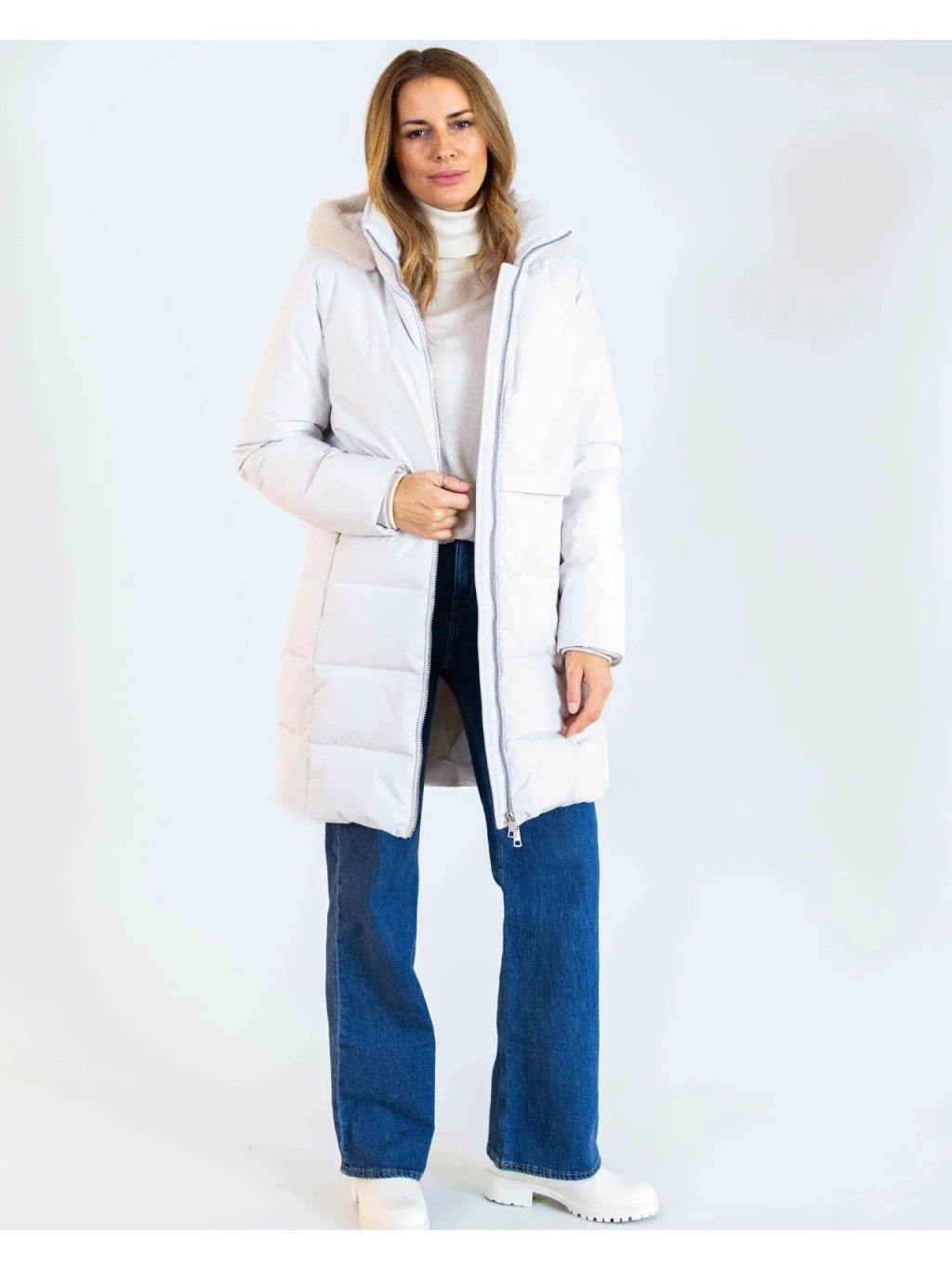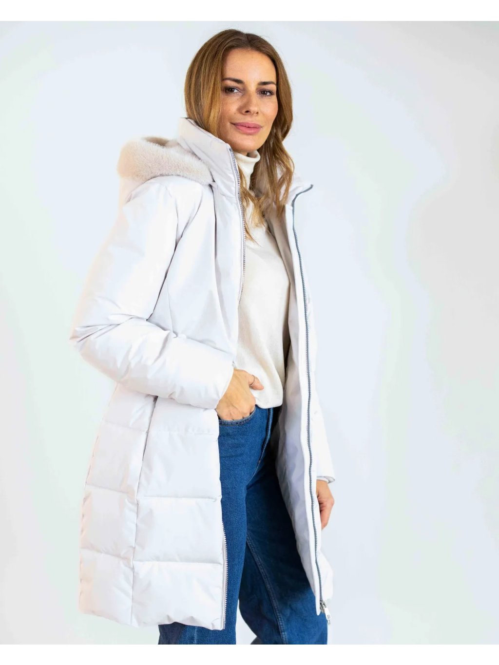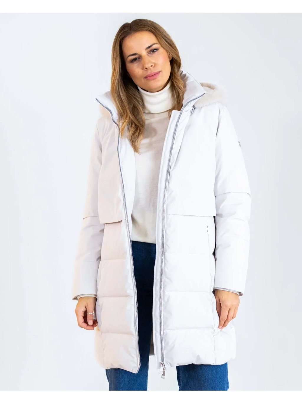 Párka Green Goose má dvojcestný zip, odnímatelnou kapuci s kožíškem, vnitřní kapsu a manžetu v rukávu. Párka kombinuje hladké a prošívané části a vytváří moderní texturovaný mix.