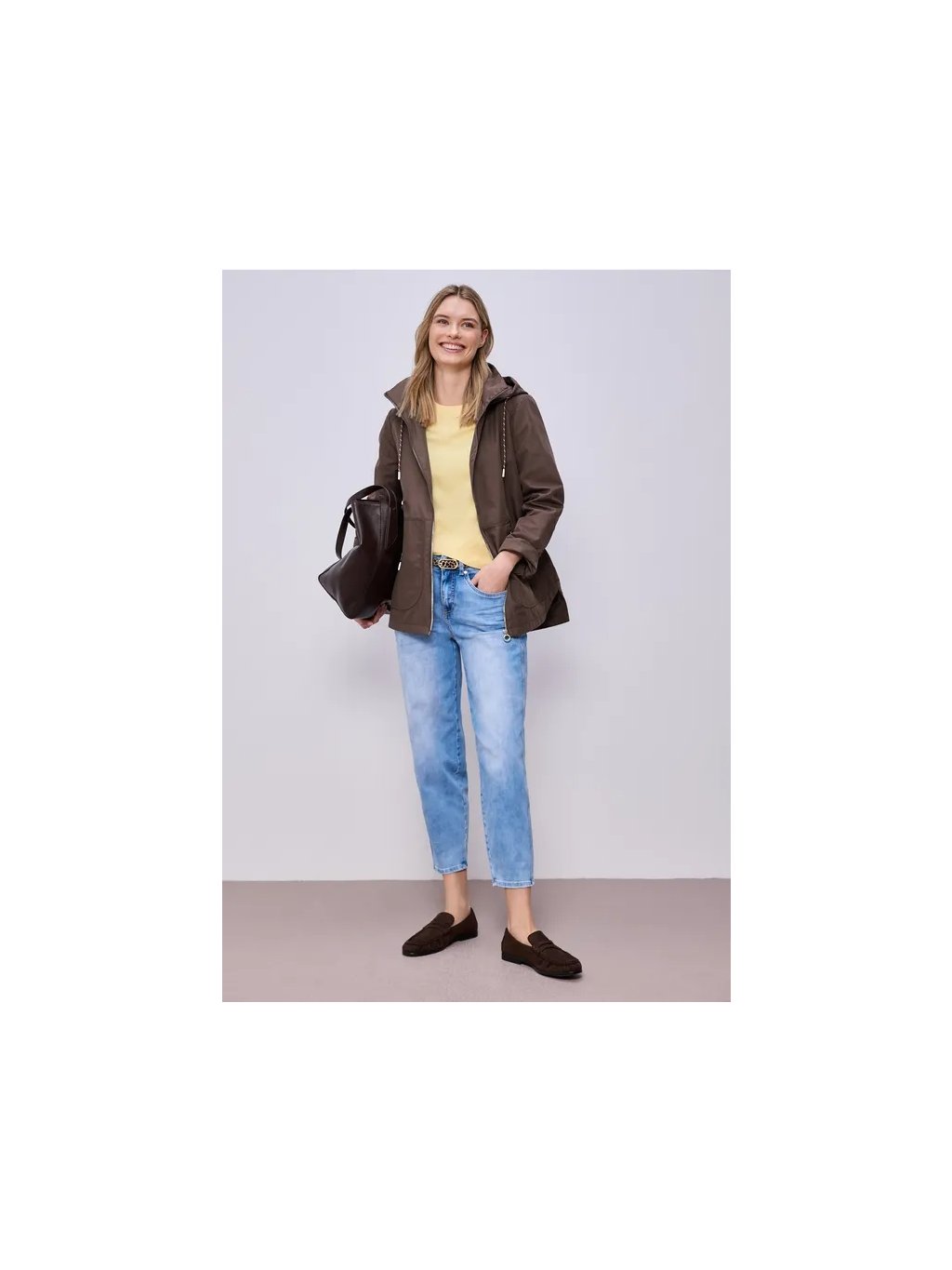 Tato parka od Street One, vyrobená z keprové tkaniny, nabízí moderní, ležérní styl s kapucí, zapínáním na zip, bočními kapsami na zip a nýtovými detaily na rukávech – zároveň je výrazná a ženská. Hranatý lem s bočními rozparky, kapuce se stahovací šňůrkou a pohodlná bavlněná směs doplňují vzhled s praktickou všestranností. Tato parka s dlouhým rukávem a čistým designem vás stylově provede po celou sezónu.