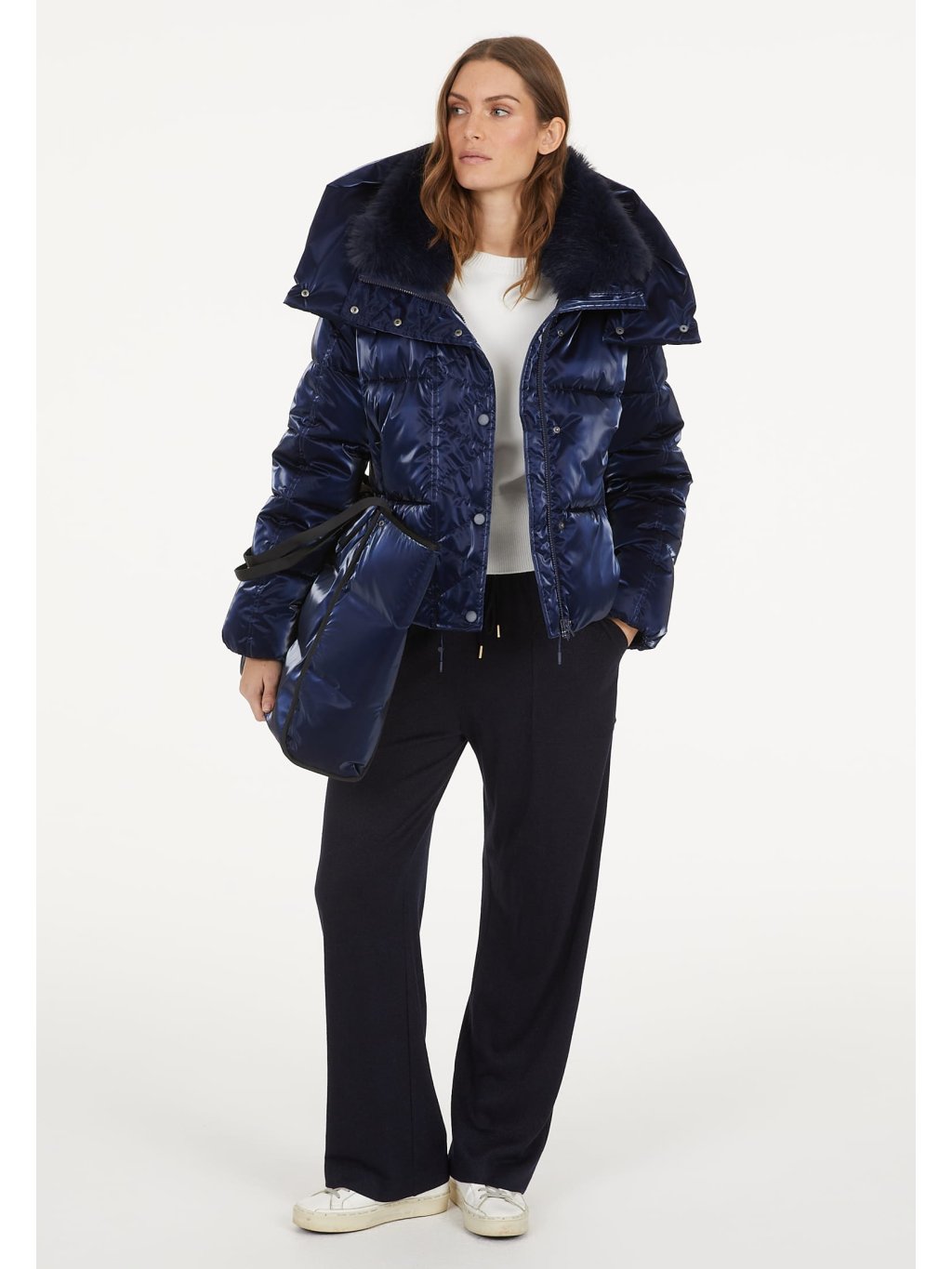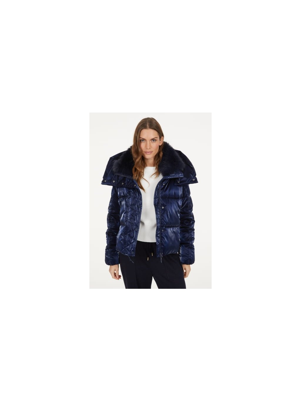 Tato prošívaná bunda kombinuje funkčnost s moderním designem. Třpytivý, vodoodpudivý outdoorový satén chrání před větrem a nepřízní počasí, zatímco odnímatelná kapuce z umělé kožešiny poskytuje větší pohodlí.