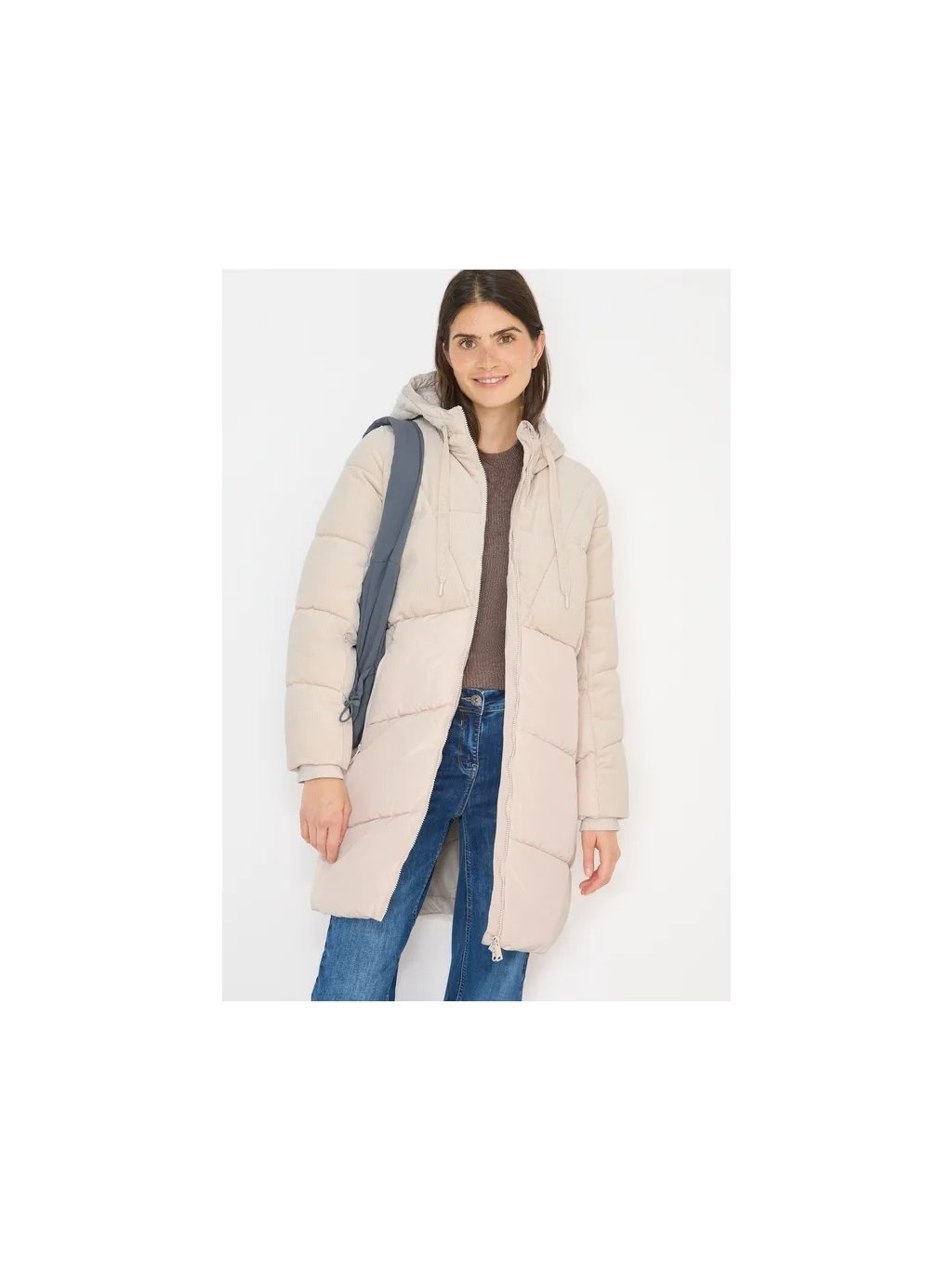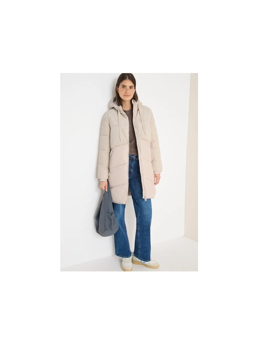 Dámský prošívaný kabát CECIL zaujme svou výraznou směsí manšestru a moderním prošívaným vzorem. Dvoucestný zip, kapuce se stahovací šňůrkou a kapsy na zip s fleecovou podšívkou nabízejí praktické doplňky do chladného počasí. Tónované detaily dotvářejí vzhled, díky čemuž je tento kabát pohodlným a stylovým oblíbeným kouskem na každý den.